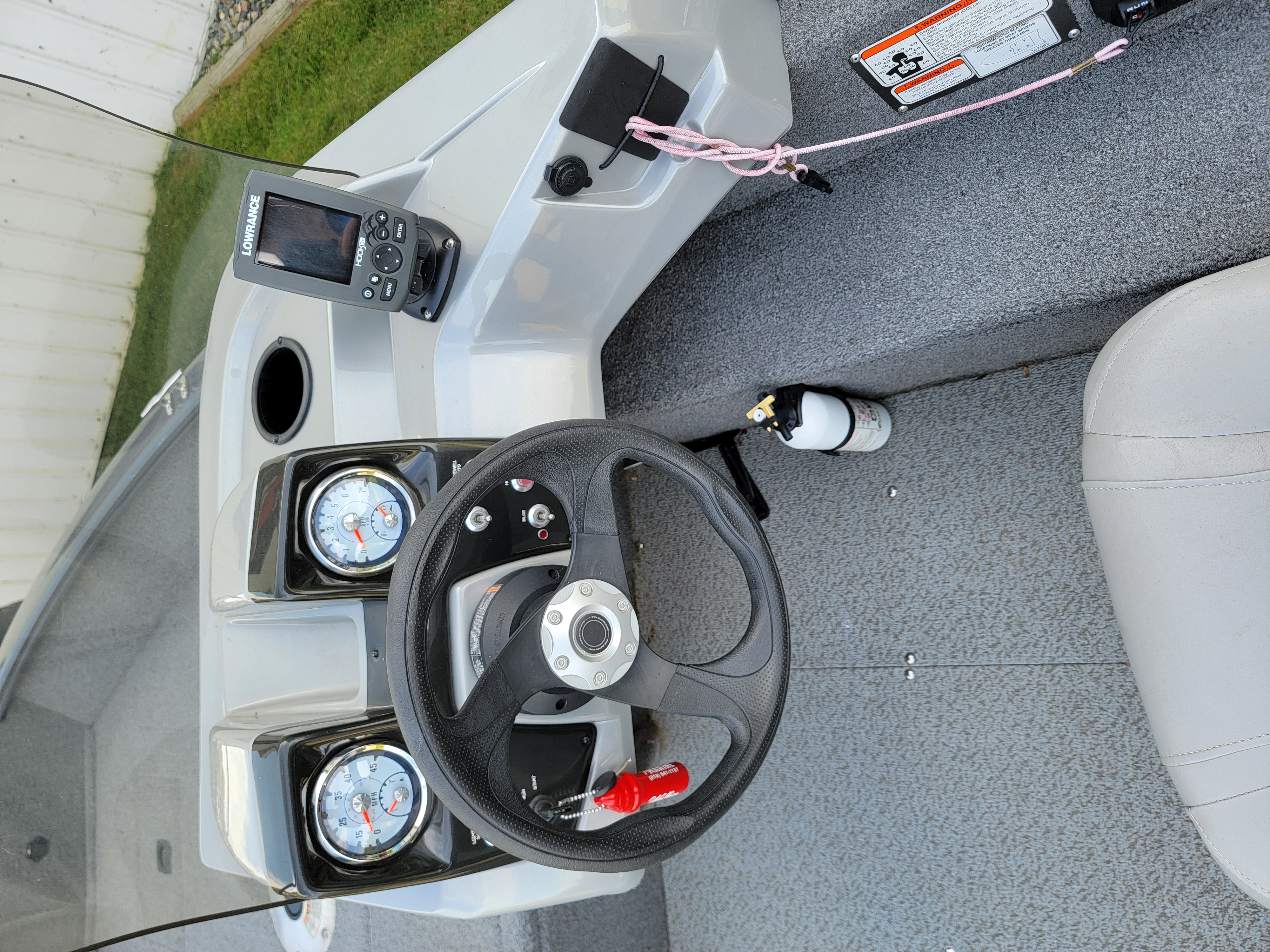 - Sleek fiberglass-reinforced console top w/tinted windscreen & built-in drink holder