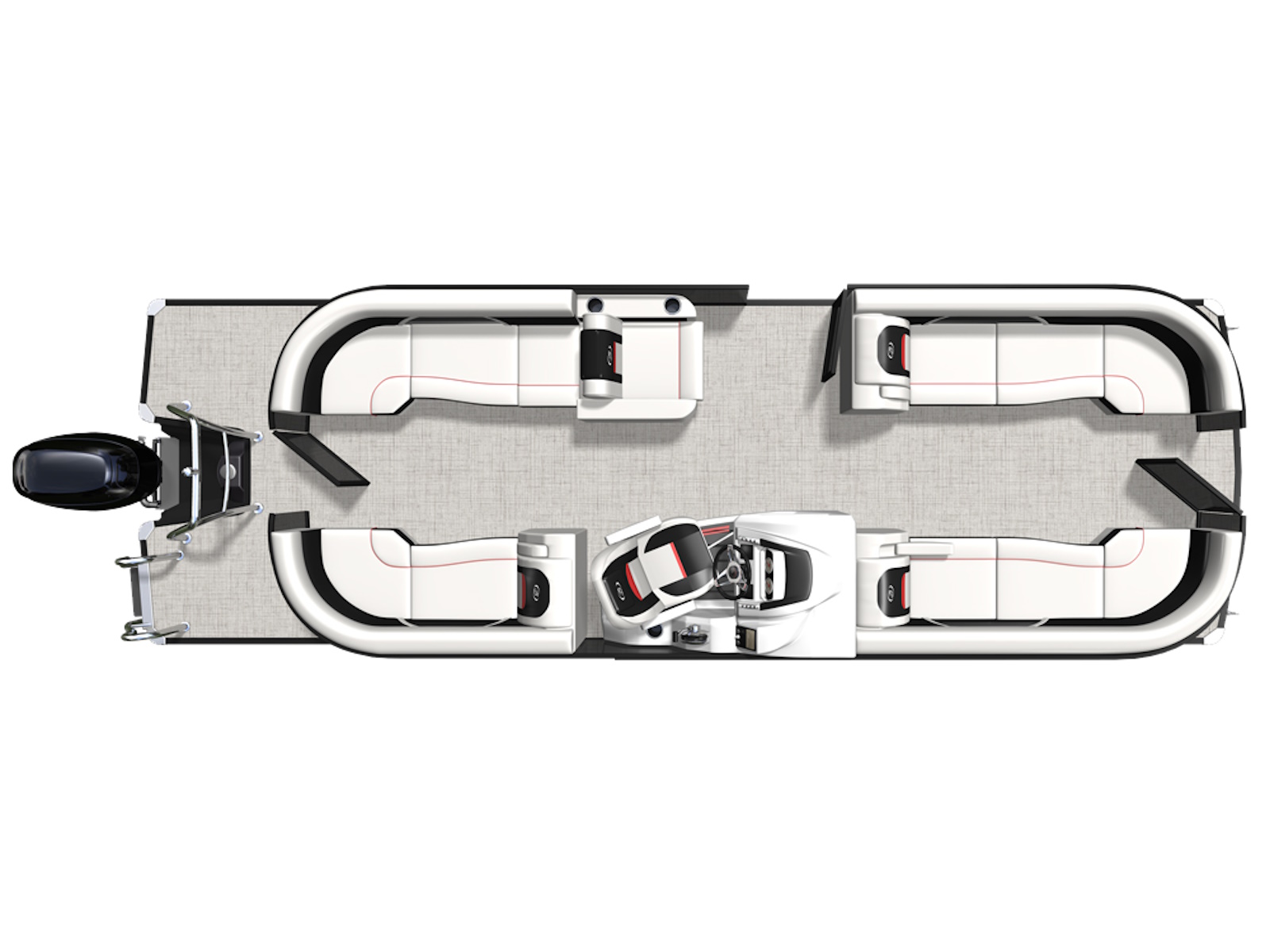 Do you have a large crew that demands lots of seating? The quad-lounge is the layout for those who want to spread out and relax on the ultra-comfy Barletta chaise lounges. The way the furniture wraps around the perimeter of the boat is also great for keeping curious kiddos and pets inside the boat while underway.
