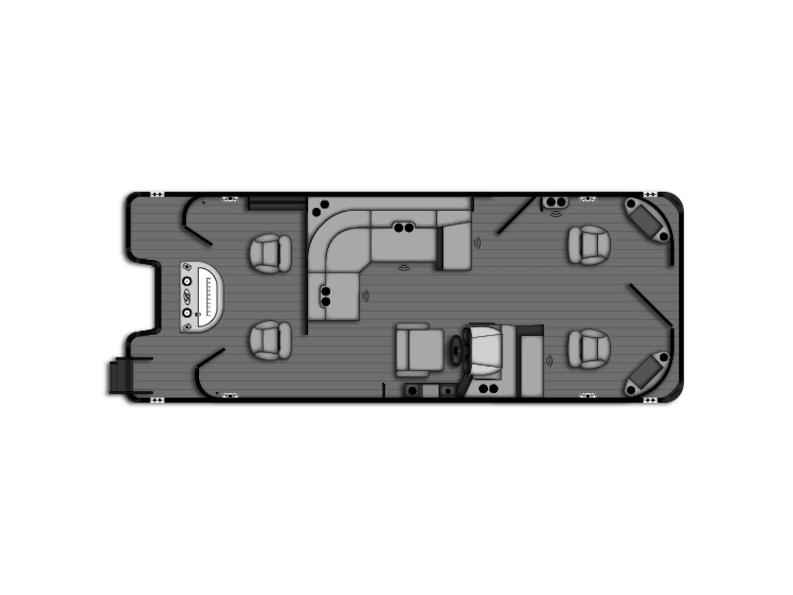 Designed for the dedicated angler, the 4-Point Fish delivers unmatched functionality and comfort. With a traditional rear "L" seating arrangement and fishing seats at all four corners, this model offers multiple prime spots to cast and reel in your catch. Its open floor plan and spacious layout make it easy to move freely around the boat, ensuring long, enjoyable days on the water. Available in 20', 22', and 24' models, the 4-Point Fish is your go-to choice for serious fishing with relaxed cruising comfort.