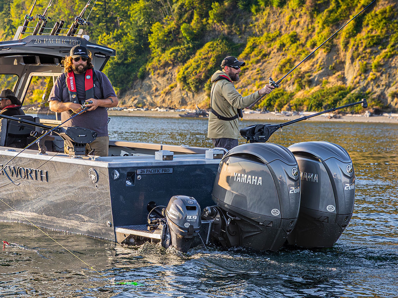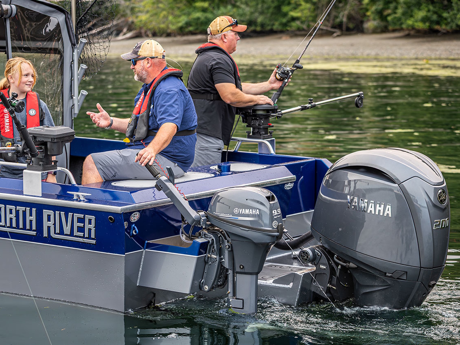 It’s a mild, early-summer night. The sun’s gone down and the nav lights are on as you quietly troll your home lake for walleye. There’s nothing like a Yamaha High Thrust kicker for keeping the hours off your main outboard. Available in 60, 50, 25 and 9.9 horsepower, they produce up to 60 percent more forward thrust and up to 70 percent more in reverse than standard outboards of the same horsepower. This means they’re also great for pushing sailboats and heavy pontoons. Add maneuverability and muscle to your day with a Yamaha High Thrust outboard.