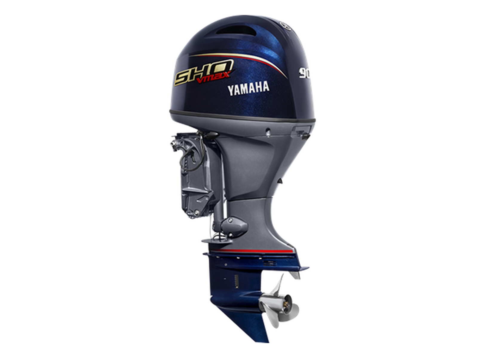 The All-New VF90 In-Line Four V MAX SHO. A single-overhead-camshaft design with four valves per cylinder and 1.8-liter displacement makes the In-Line Four V MAX SHO 90 a class leader in torque, top speed and efficiency. Still, it's one of the quietest 90-horsepower outboards on the water. That makes for some pretty stealthy fishing.