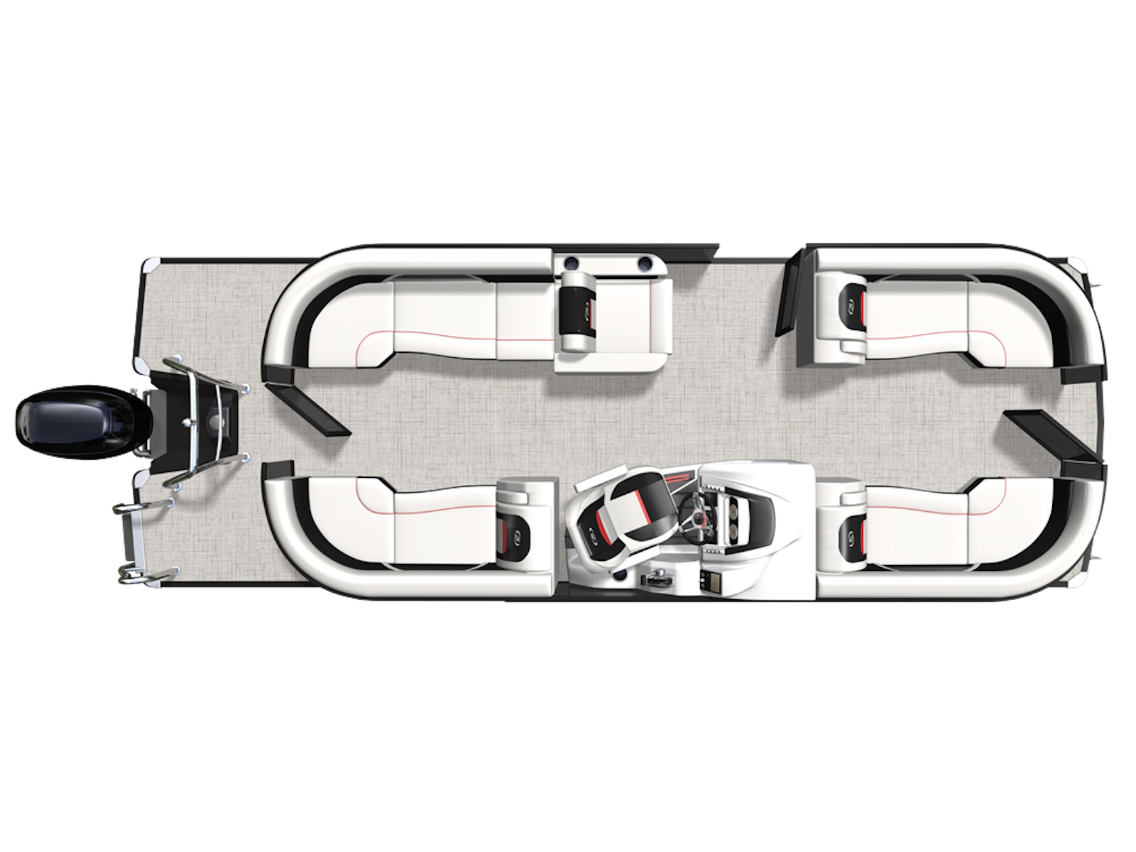 Do you have a large crew that demands lots of seating? The quad-lounge is the layout for those who want to spread out and relax on the ultra-comfy Barletta chaise lounges. The way the furniture wraps around the perimeter of the boat is also great for keeping curious kiddos and pets inside the boat while underway.