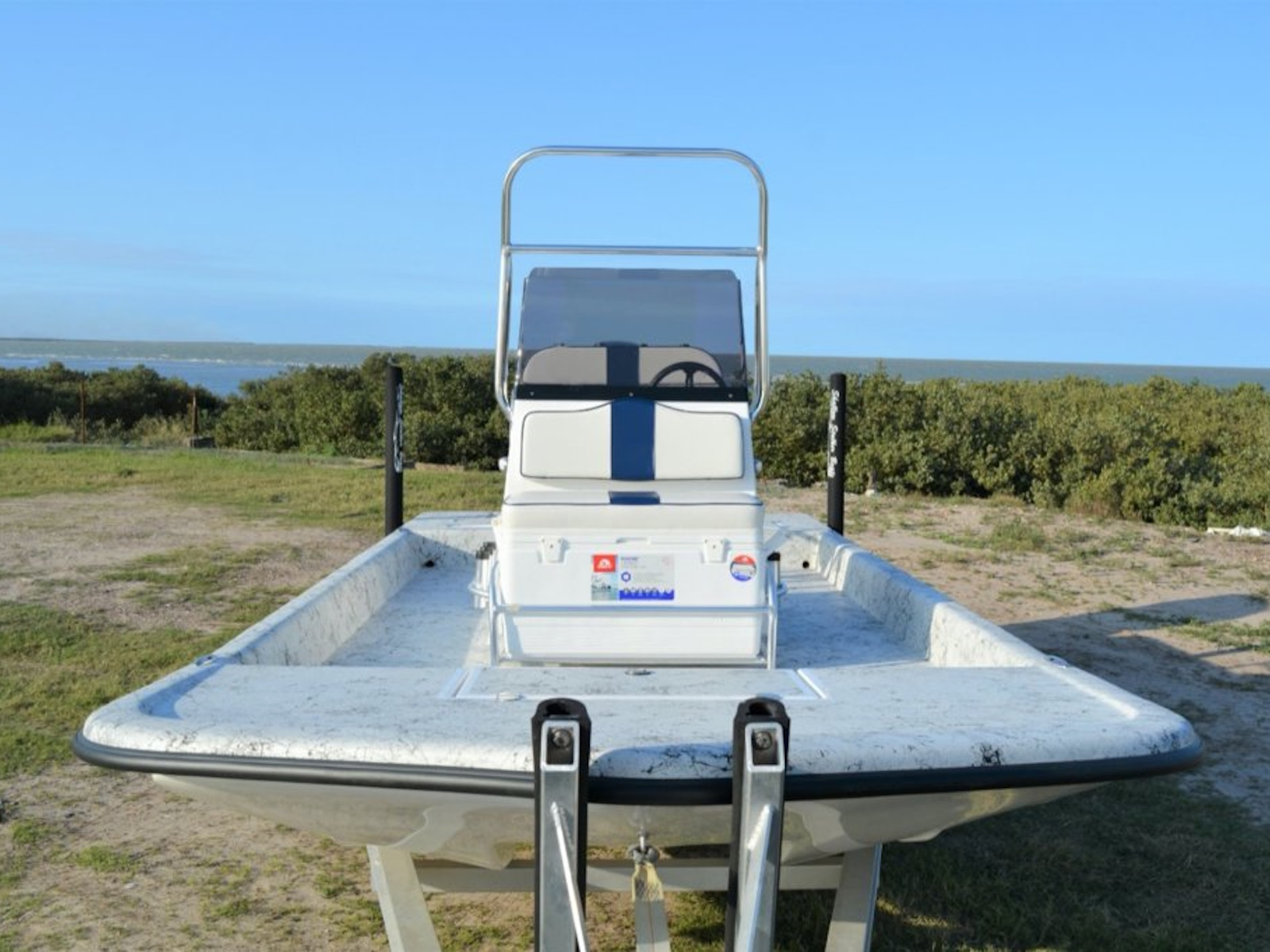 - Aluminum package - lean post or flip-flop, raised fwd cooler holder, burn bar, rod holders