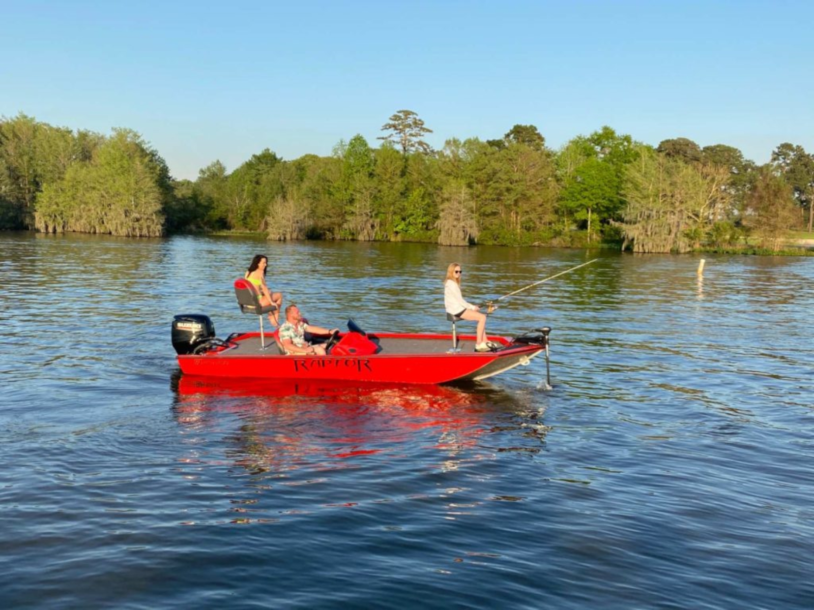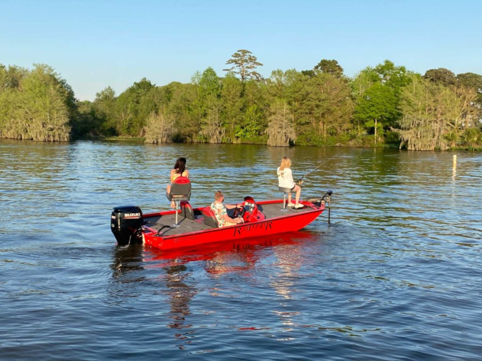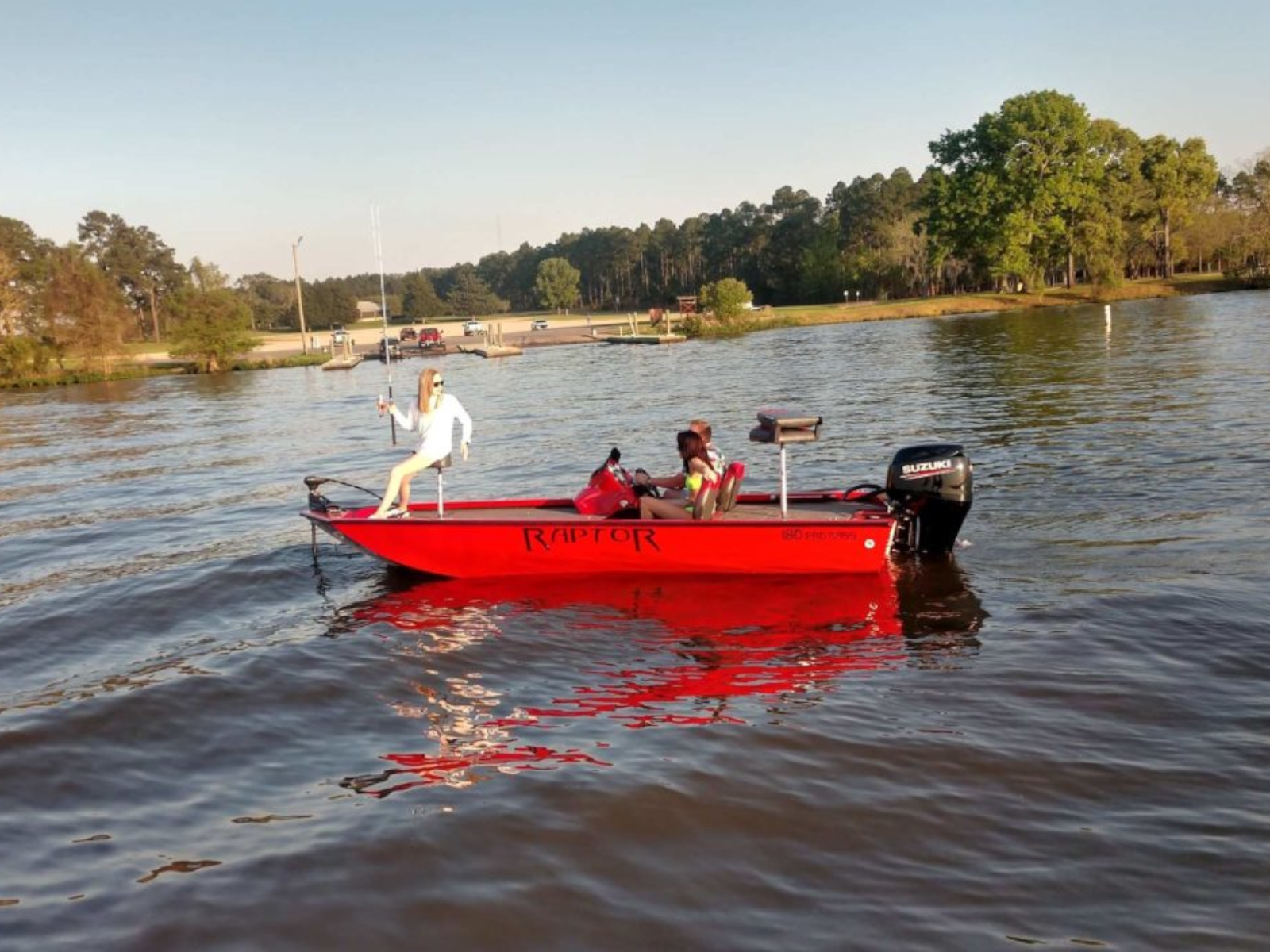 The whole family is going to love the Raptor 180 bass fishing boat. Suzuki outboard motor, your choice of sleek red, blue or black hull, and a contemporary charcoal flooring! So many options to choose from!