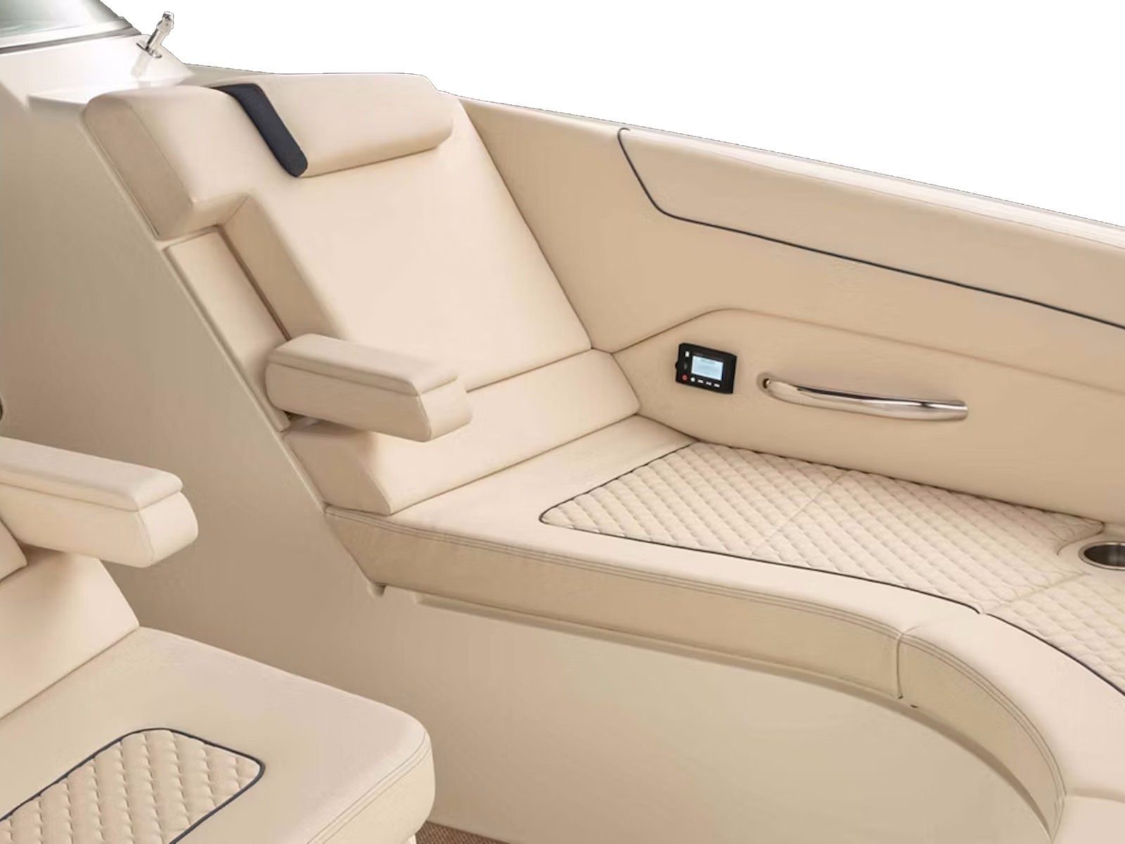 Bring a whole new dimension to your time on the water with the Lumishore LUX LED lighting system. Controls at the helm let you select any color and set them to respond to your music. Multiple zones can illuminate the interior of the boat. To create a similar glow under the water, select the optional multi-color underwater lights.Standard on the Launch 35 GT sterndrive and outboard propulsion models.