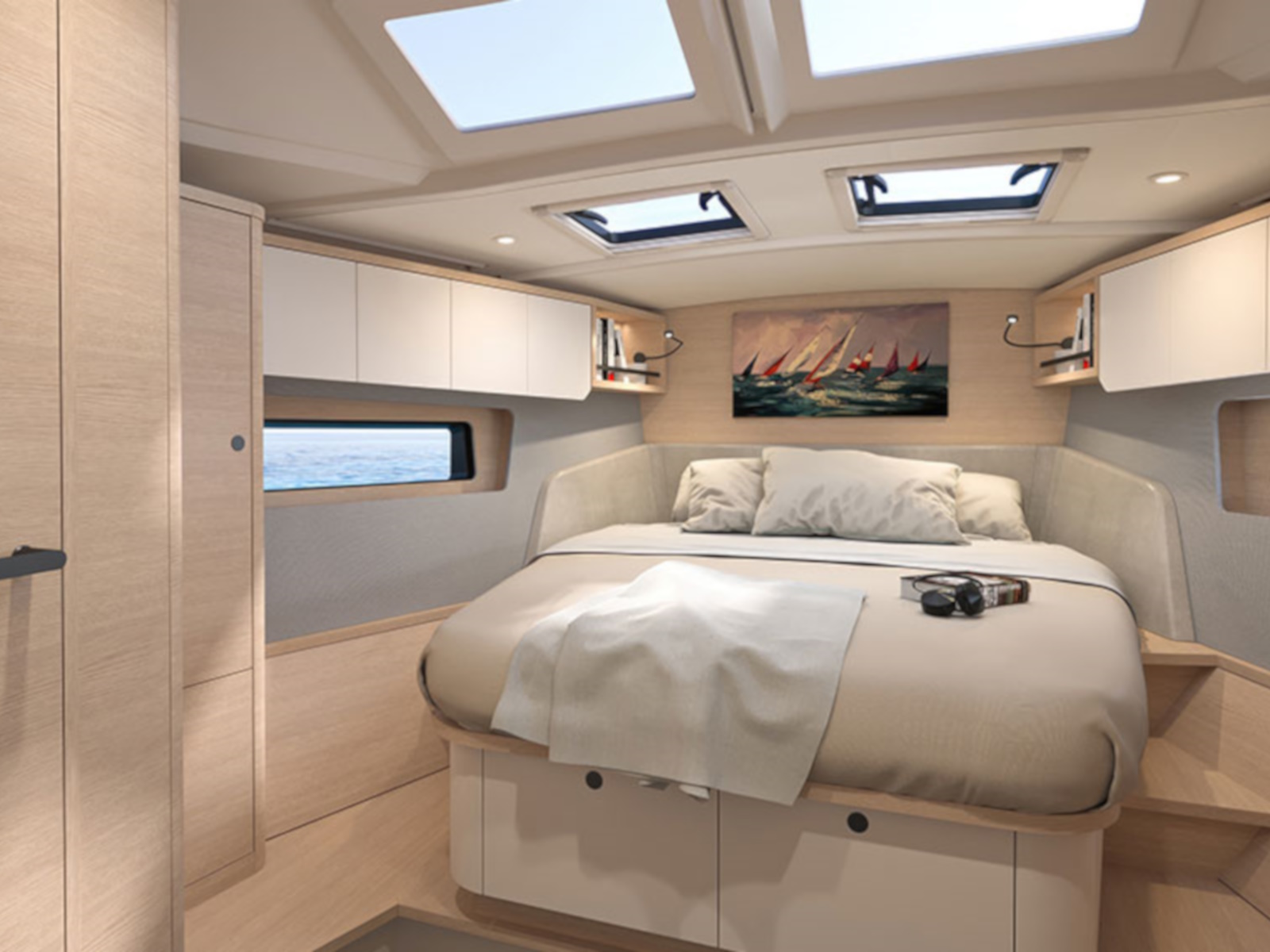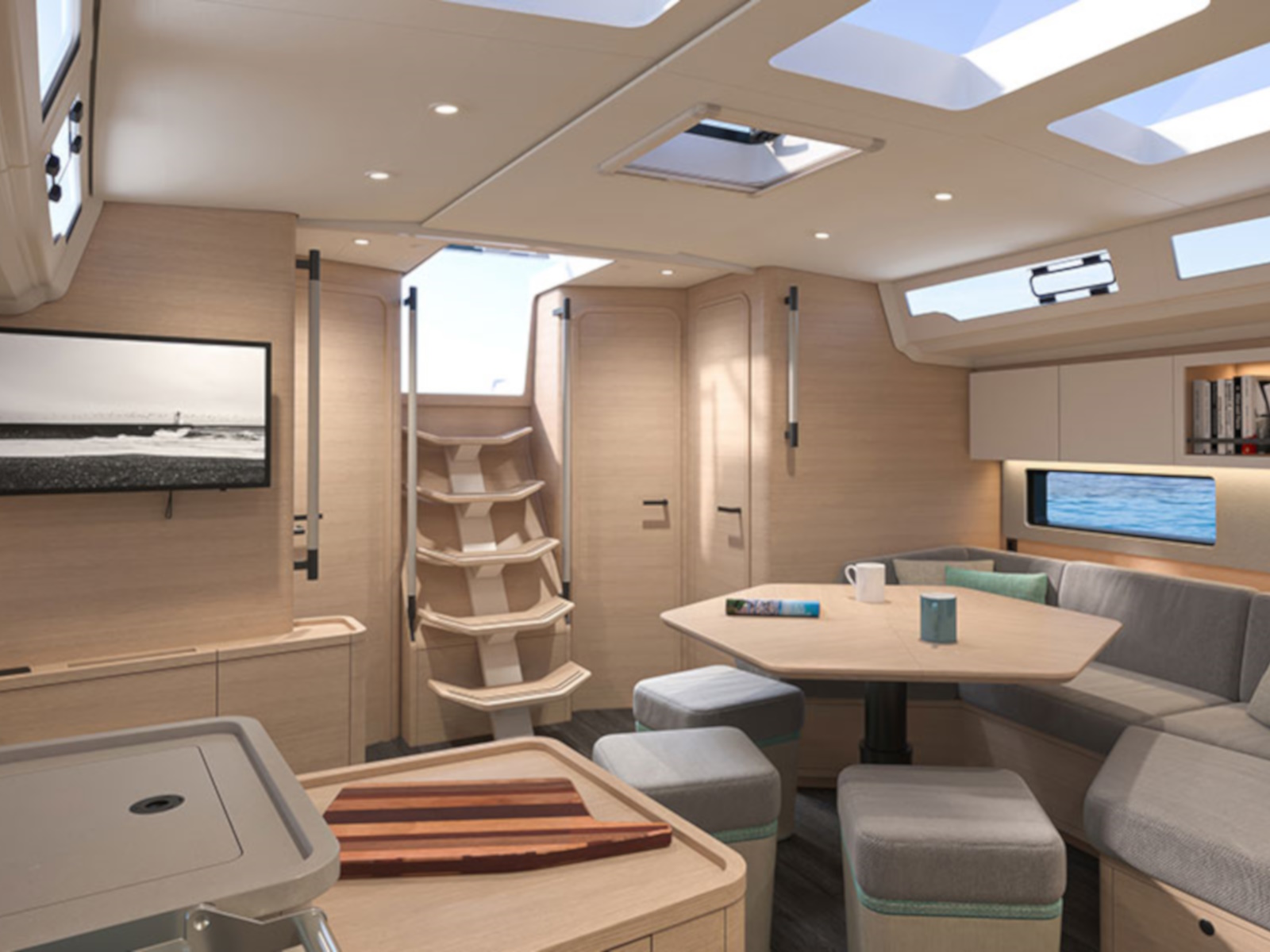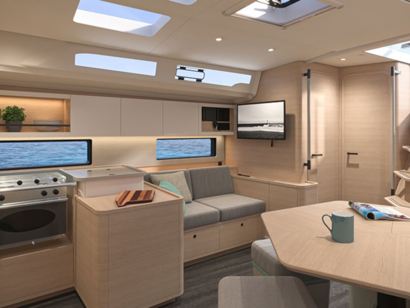 The agility of the new Dufour 44 sailboat in no way leads to a sacrifice in comfort. Her spacious, luxuriously appointed interior, signed by Luca Ardizio, offers everything you need for enjoying some unforgettable relaxing times at sea. From the elegant cabins to the bright, open-plan living spaces, every detail has been designed to provide you with exceptional comfort.