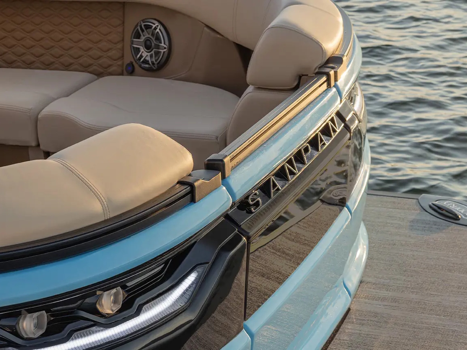 Sanpan’s new fiberglass exterior replaces traditional rail skins with a sleek, sculpted surface that’s stronger and more refined. It delivers a bold, modern look while enhancing durability, so your time on the water looks as good as it feels.