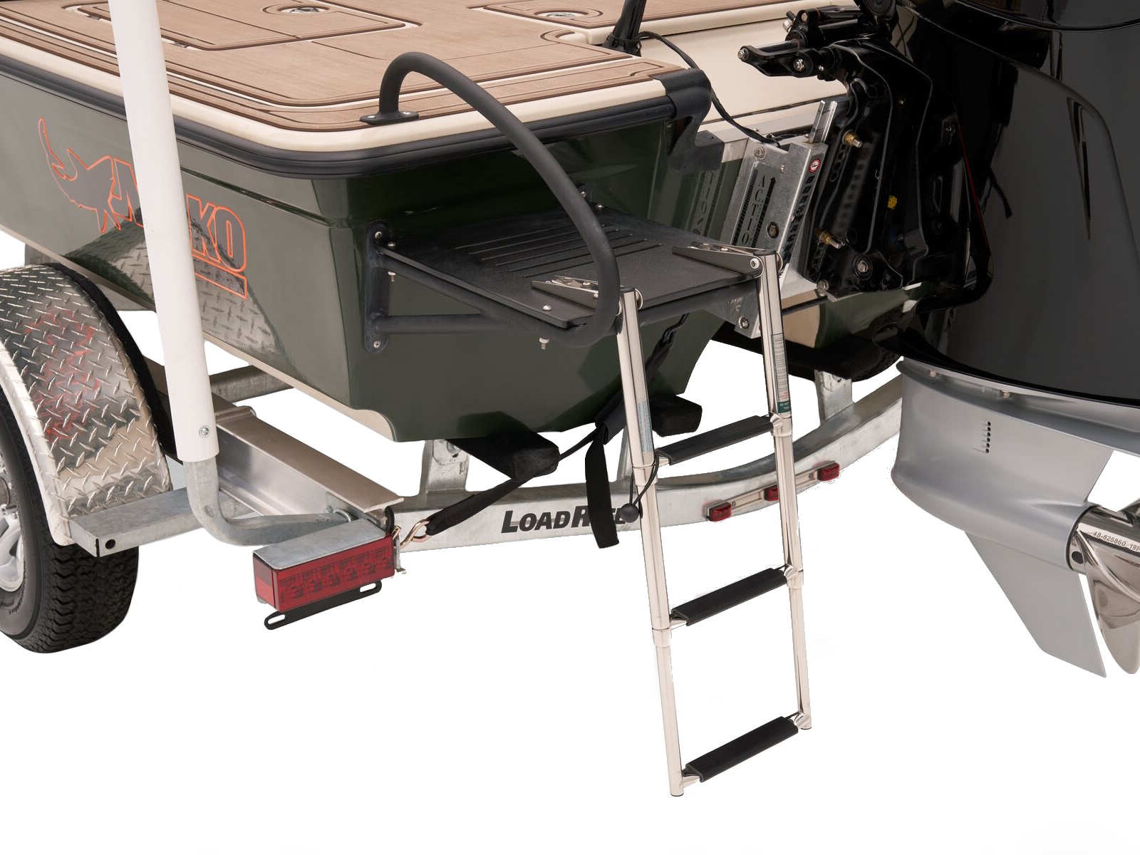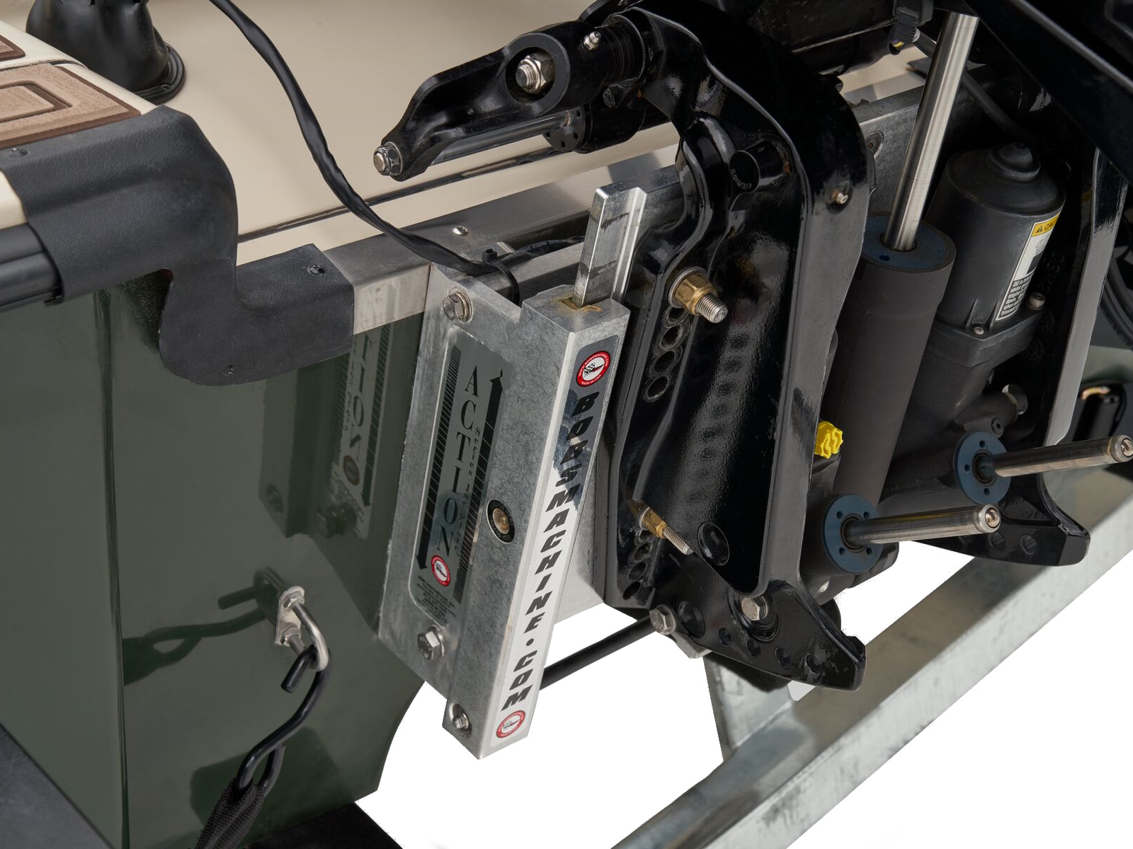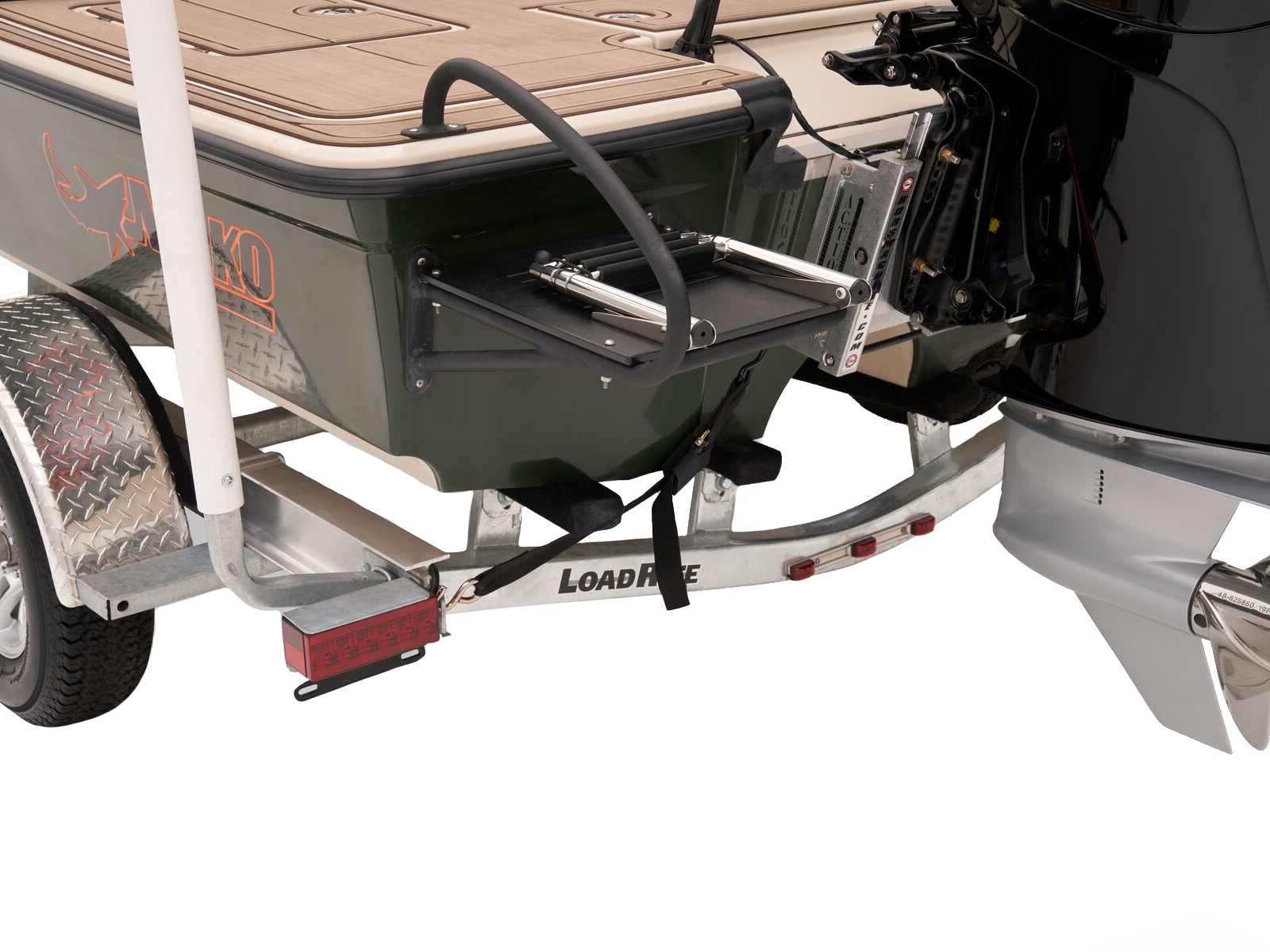 - Outboard motor support to reduce hull & transom stress while towing
