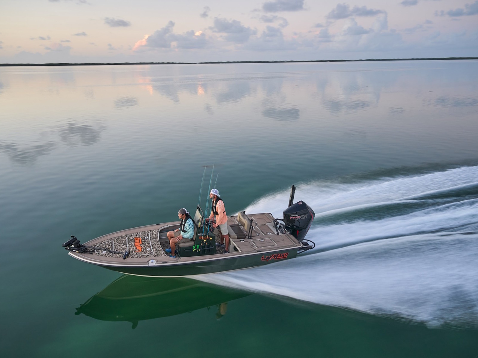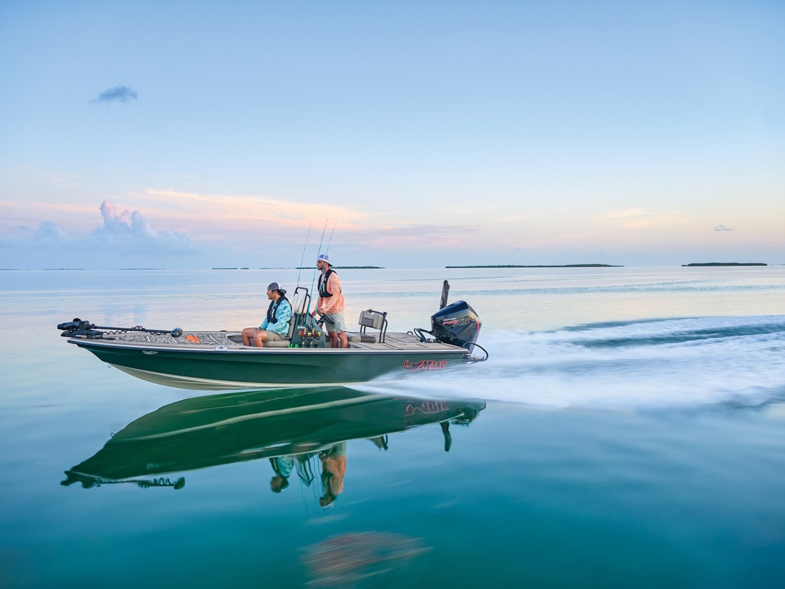 The all-new MAKO 18 Pro Skiff Backwater is a new breed of skinny-water predator that's loaded with unbeatable fishing features, quality, and value. With an emphasis on edge-to-edge stability and a feature set tailored for the flats, the 18 Pro Skiff Backwater is at home in inches of water and inshore and nearshore fisheries. The second generation Rapid Planing System® hull design pops onto plane instantly, even in shallow water with a load. Each 18 Pro Skiff Backwater comes with a trailer that's custom-fitted to its hull that features disc brakes, LED lights, and our legendary aluminum I-beam construction for a lifetime of smooth, hassle-free trailering. With 360-degree fishing, an aerated livewell, and your choice of the latest fishing electronics, the MAKO 18 Pro Skiff Backwater is the perfect inshore package.