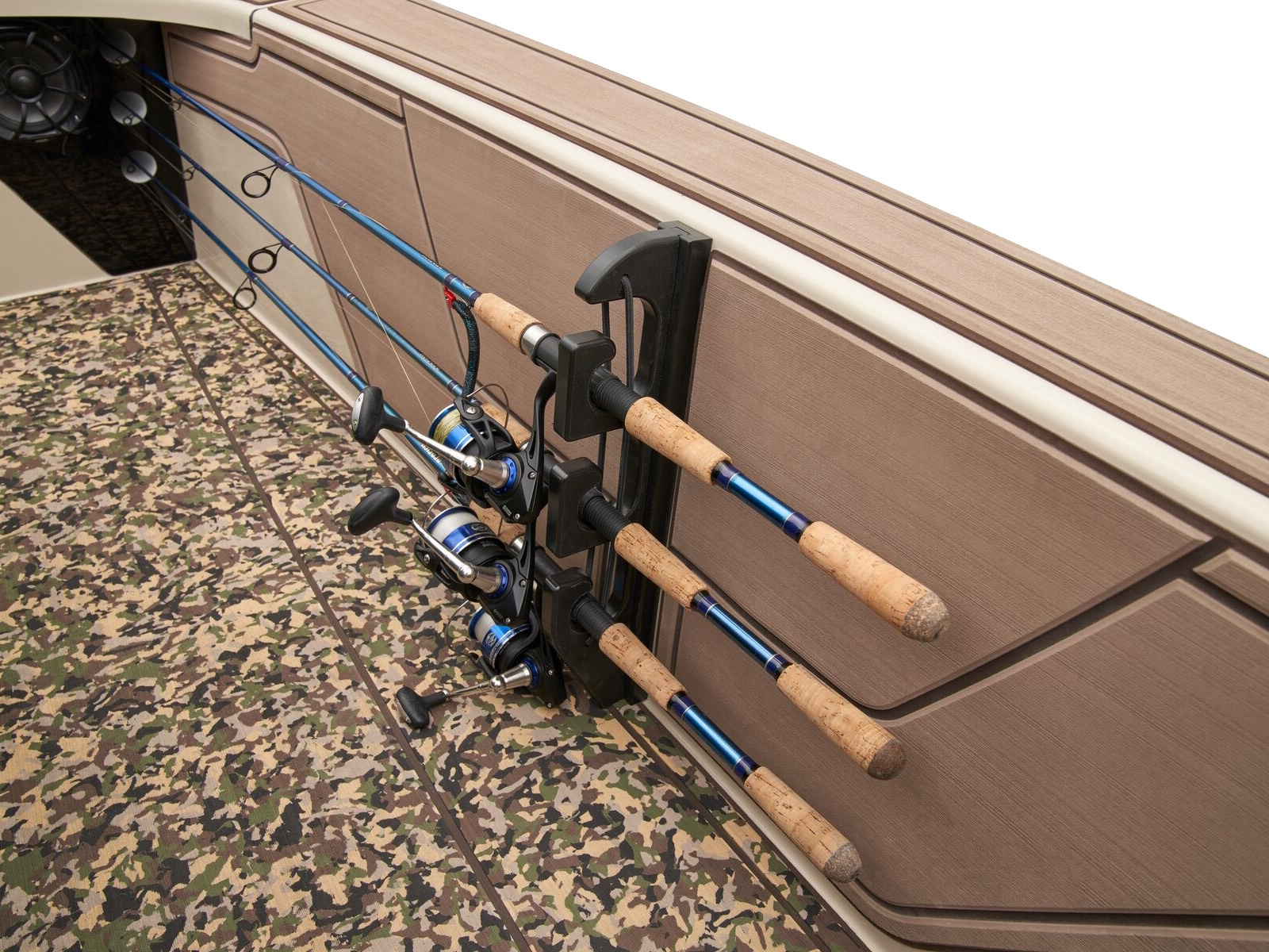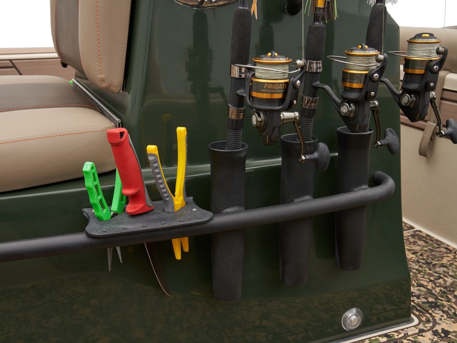 - Console side rails w/6 vertical rod holders & tool holder slots