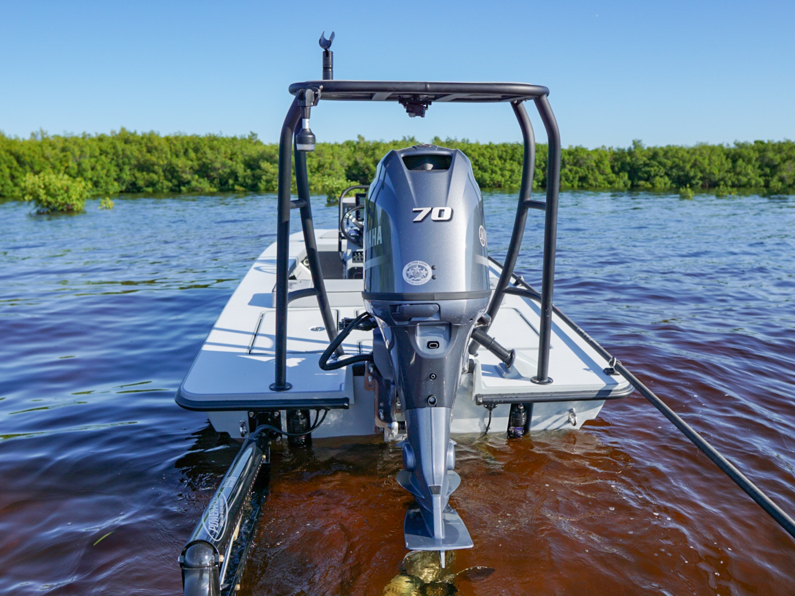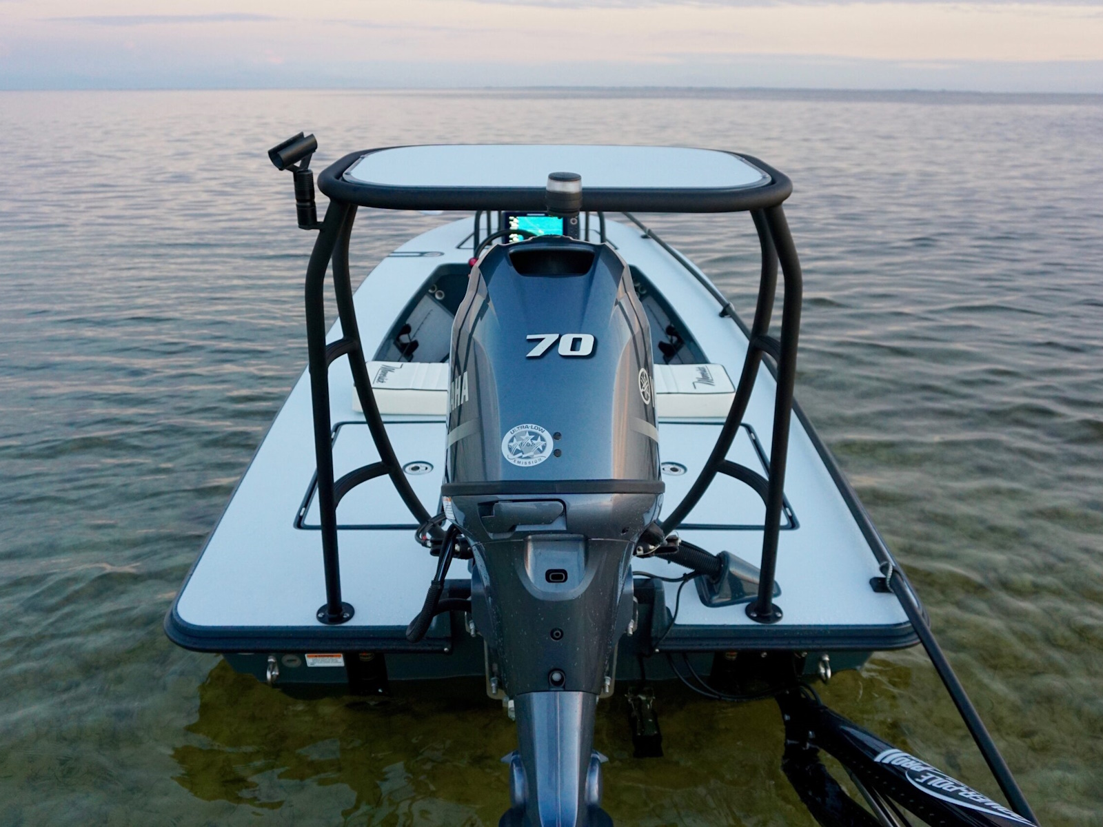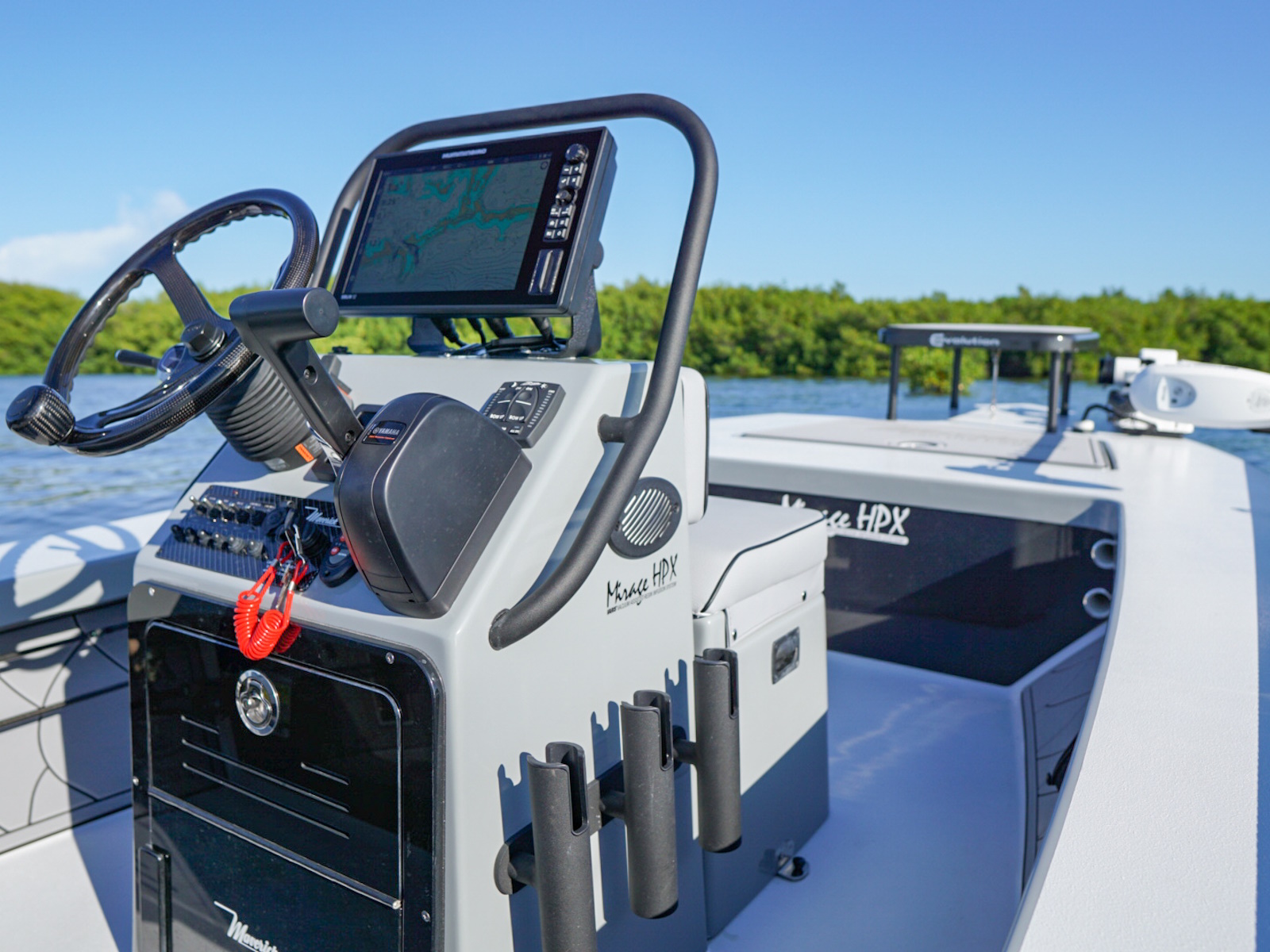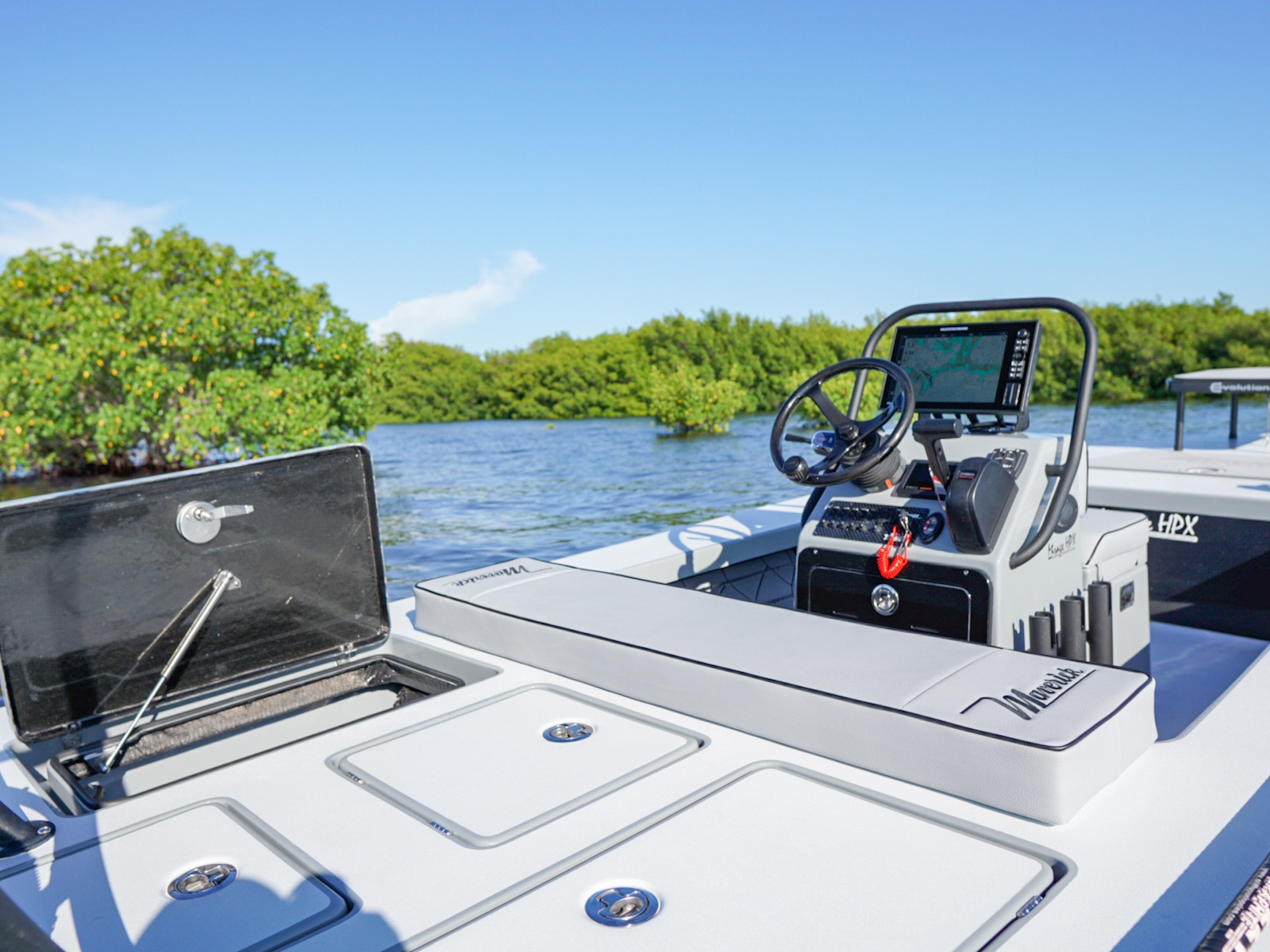 The revolutionary skiff that has cracked the code of sacrificing running comfort, range and poling performance for the sake of getting super shallow. The 17 HPX-S’s one of a kind hull combines the knowledge of the most experienced skiff designing team in the business, the latest in CAD designed naval architecture, and advanced aeronautic technologies. The result is a skiff that floats in less than 6″ inches of water, drives like a sports car while keeping its occupants exceptionally dry and comfortable, and poles with precision and complete stealth. Sounds too good to be true? It was until now.