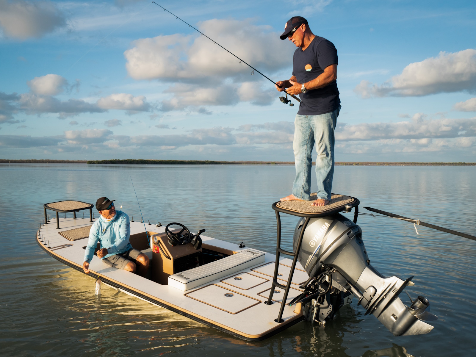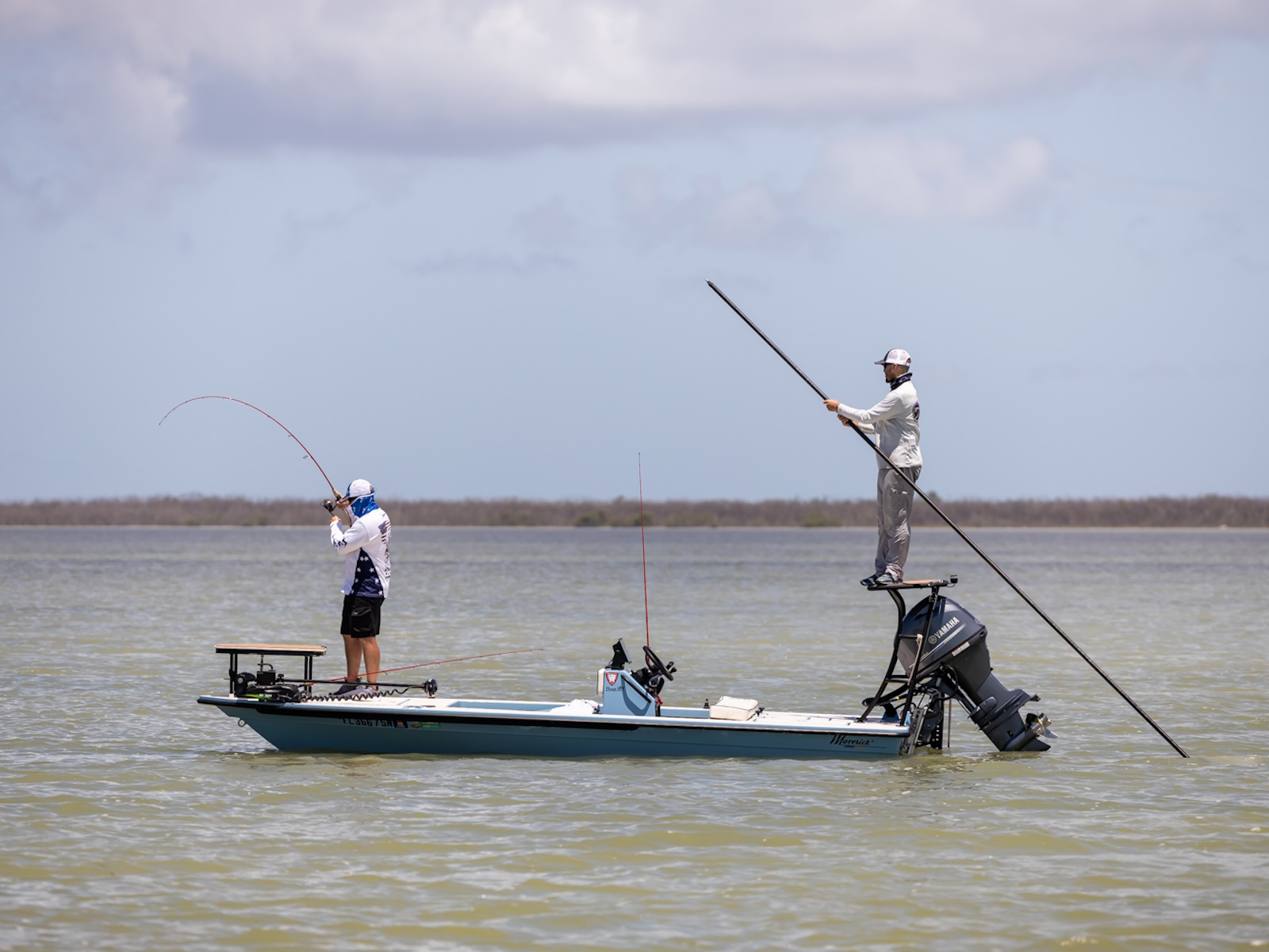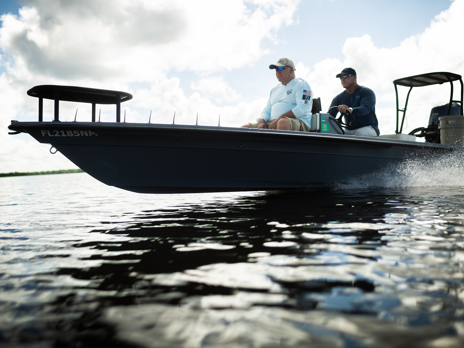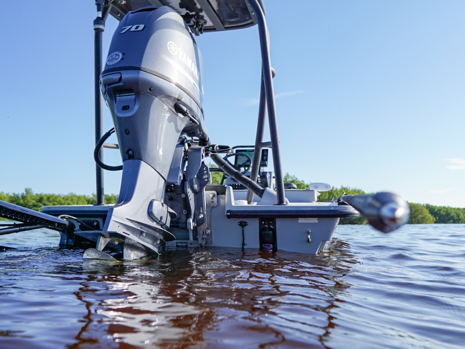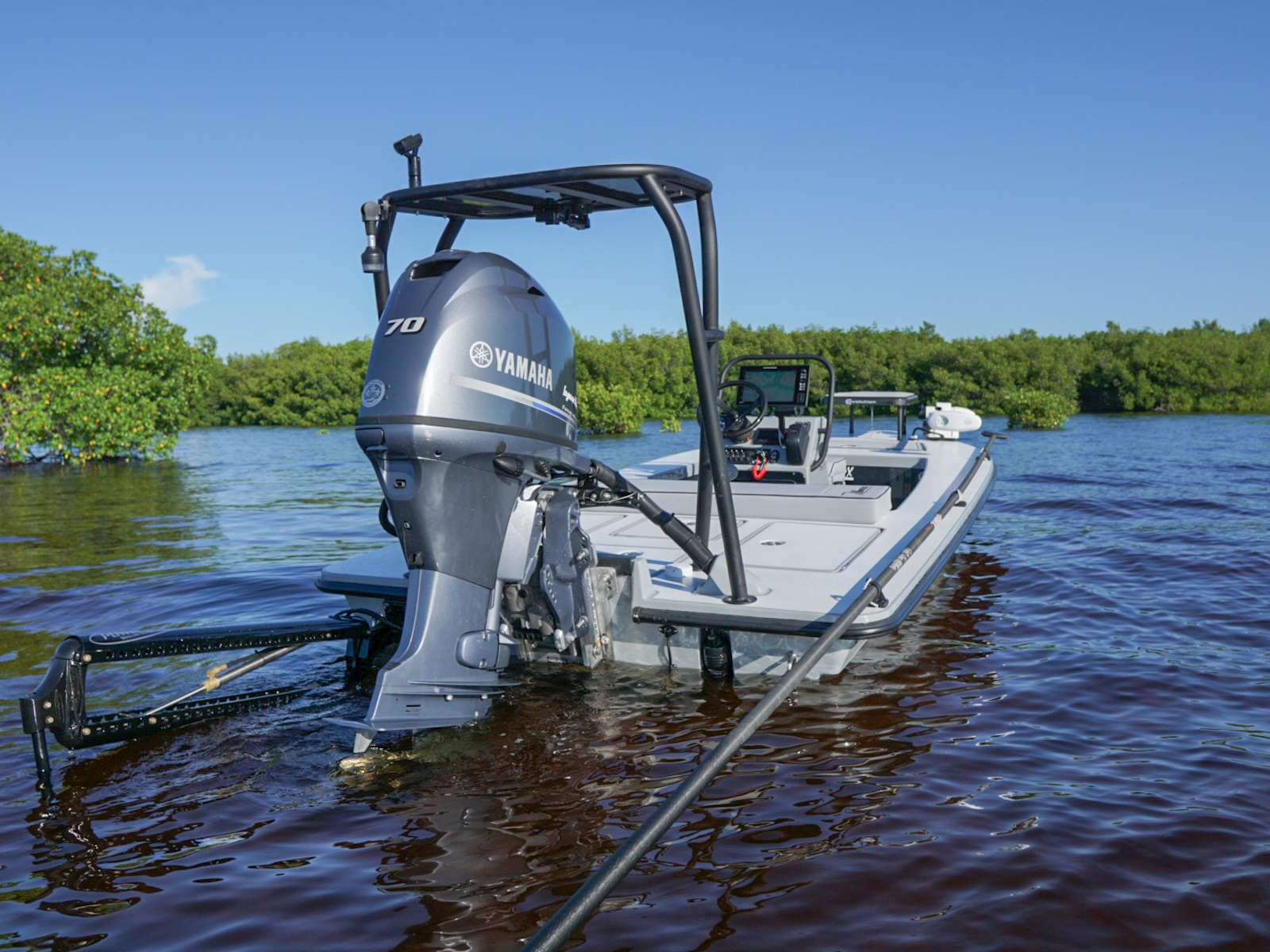 The revolutionary skiff that has cracked the code of sacrificing running comfort, range and poling performance for the sake of getting super shallow. The 17 HPX-S’s one of a kind hull combines the knowledge of the most experienced skiff designing team in the business, the latest in CAD designed naval architecture, and advanced aeronautic technologies. The result is a skiff that floats in less than 6″ inches of water, drives like a sports car while keeping its occupants exceptionally dry and comfortable, and poles with precision and complete stealth. Sounds too good to be true? It was until now.