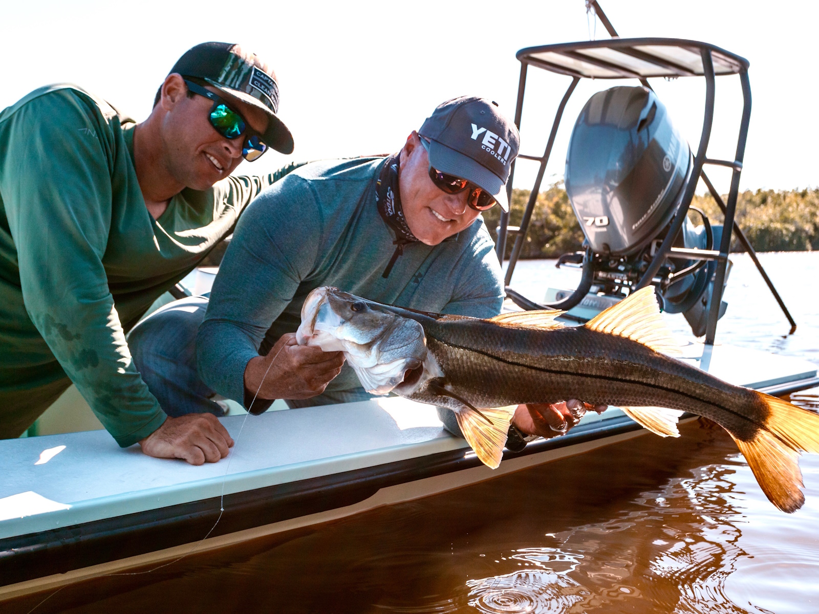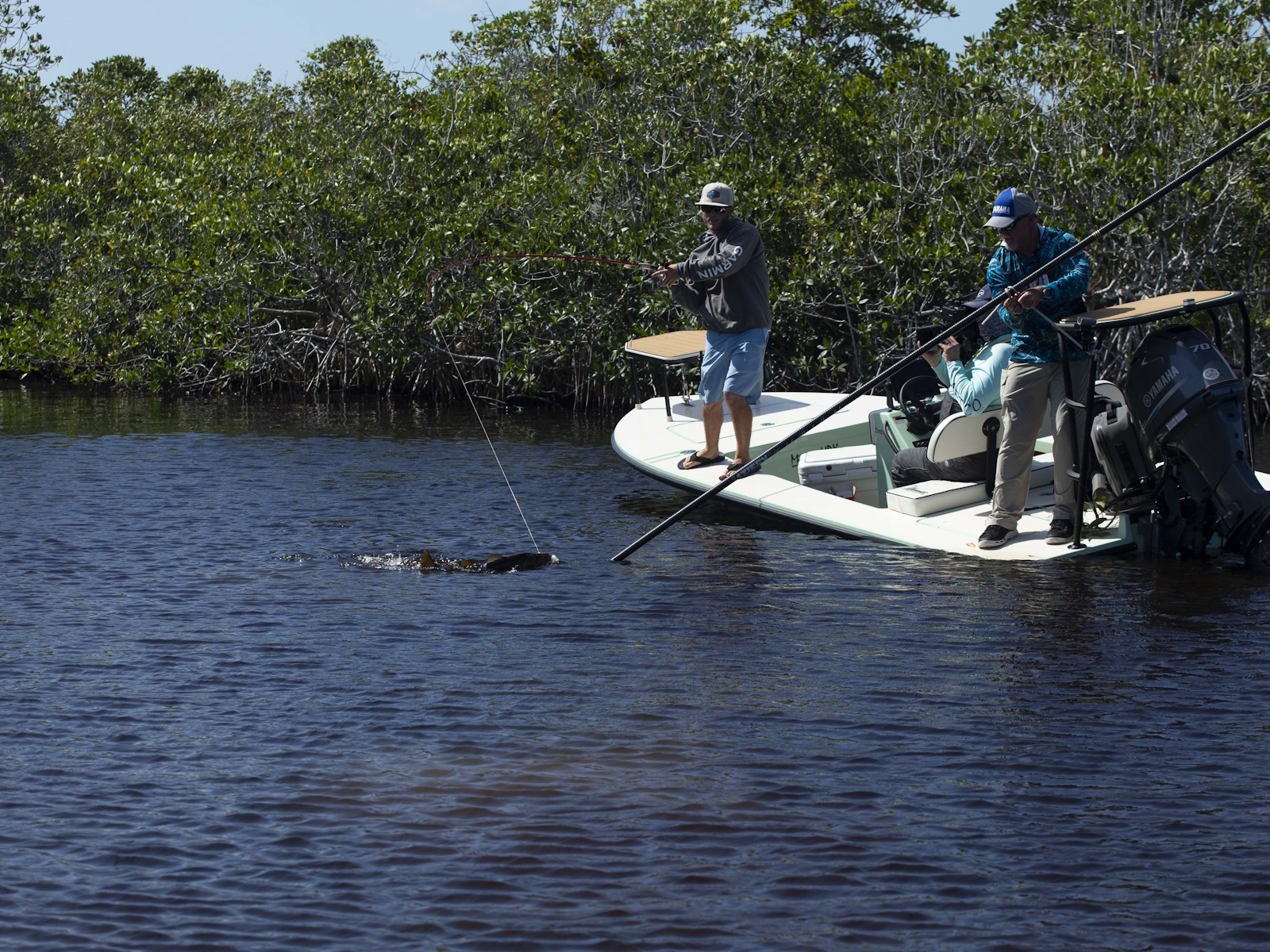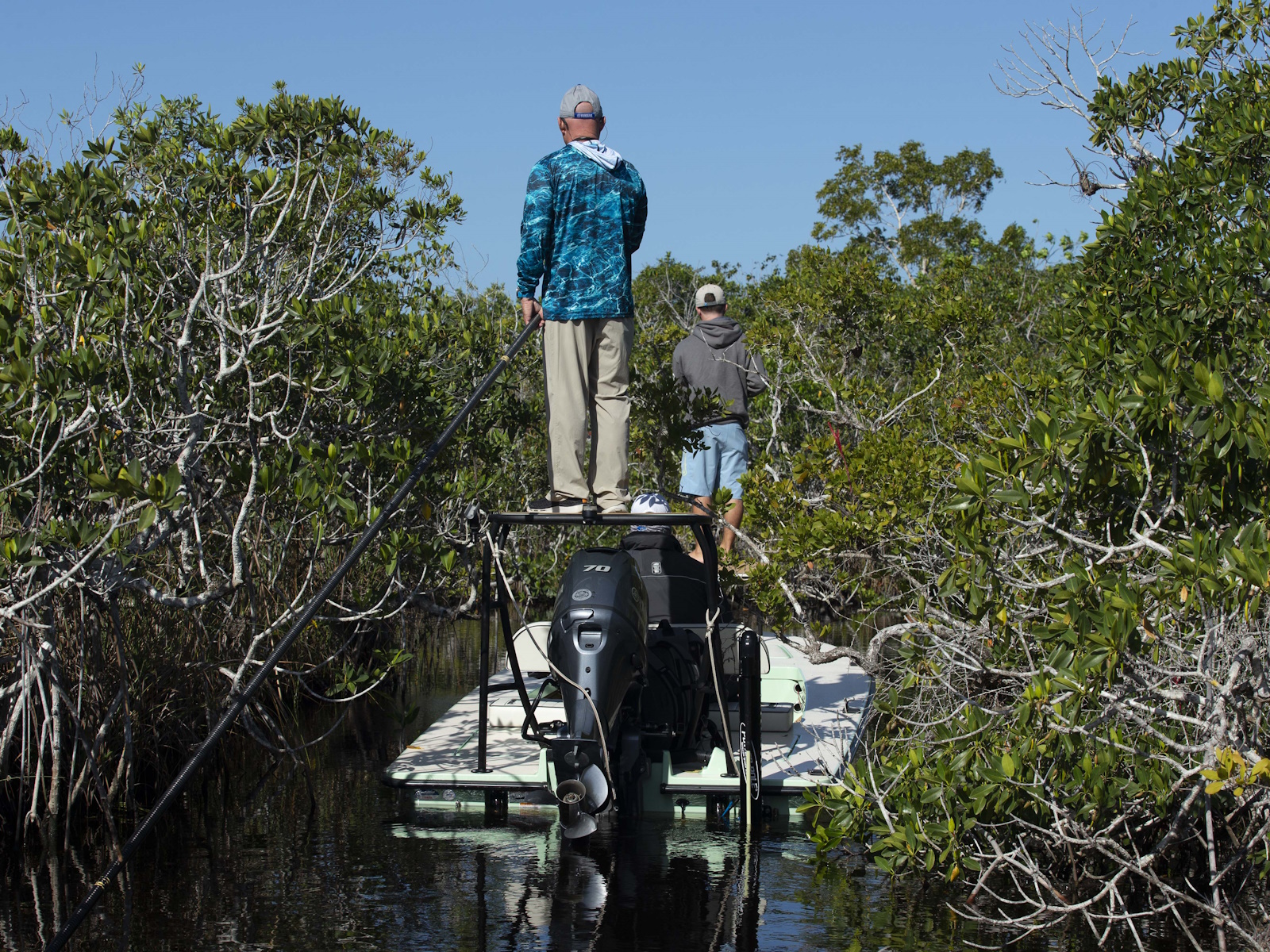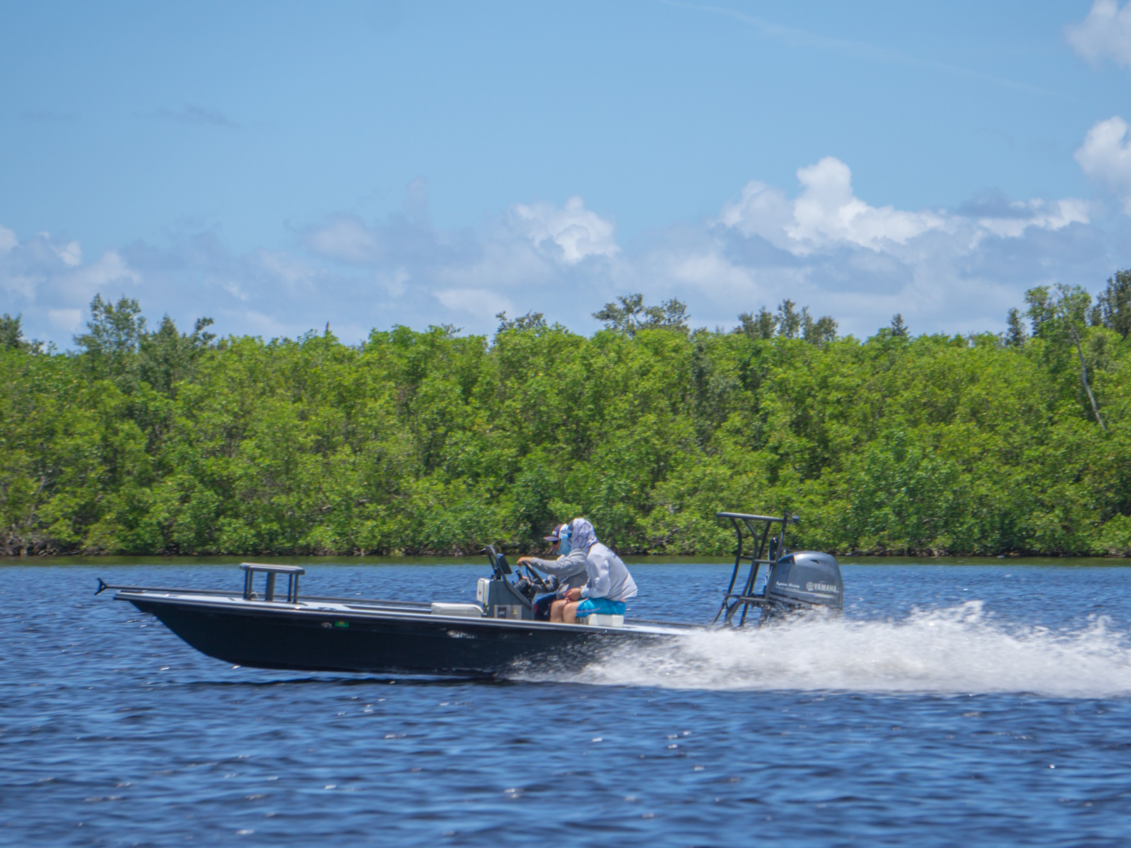 The revolutionary skiff that has cracked the code of sacrificing running comfort, range and poling performance for the sake of getting super shallow. The 17 HPX-S’s one of a kind hull combines the knowledge of the most experienced skiff designing team in the business, the latest in CAD designed naval architecture, and advanced aeronautic technologies. The result is a skiff that floats in less than 6″ inches of water, drives like a sports car while keeping its occupants exceptionally dry and comfortable, and poles with precision and complete stealth. Sounds too good to be true? It was until now.