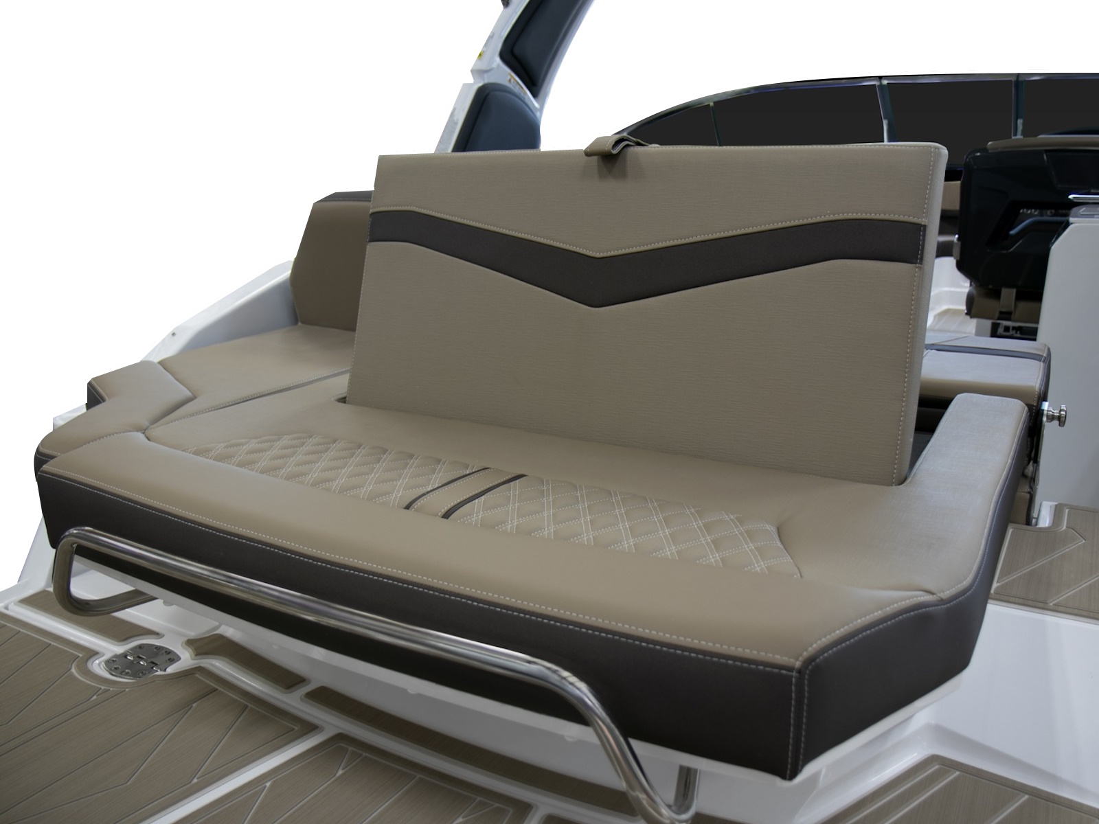- Aft L-Lounge w/Fiberglass Bases, Sun Island Feature, Stainless Steel Stern Rail