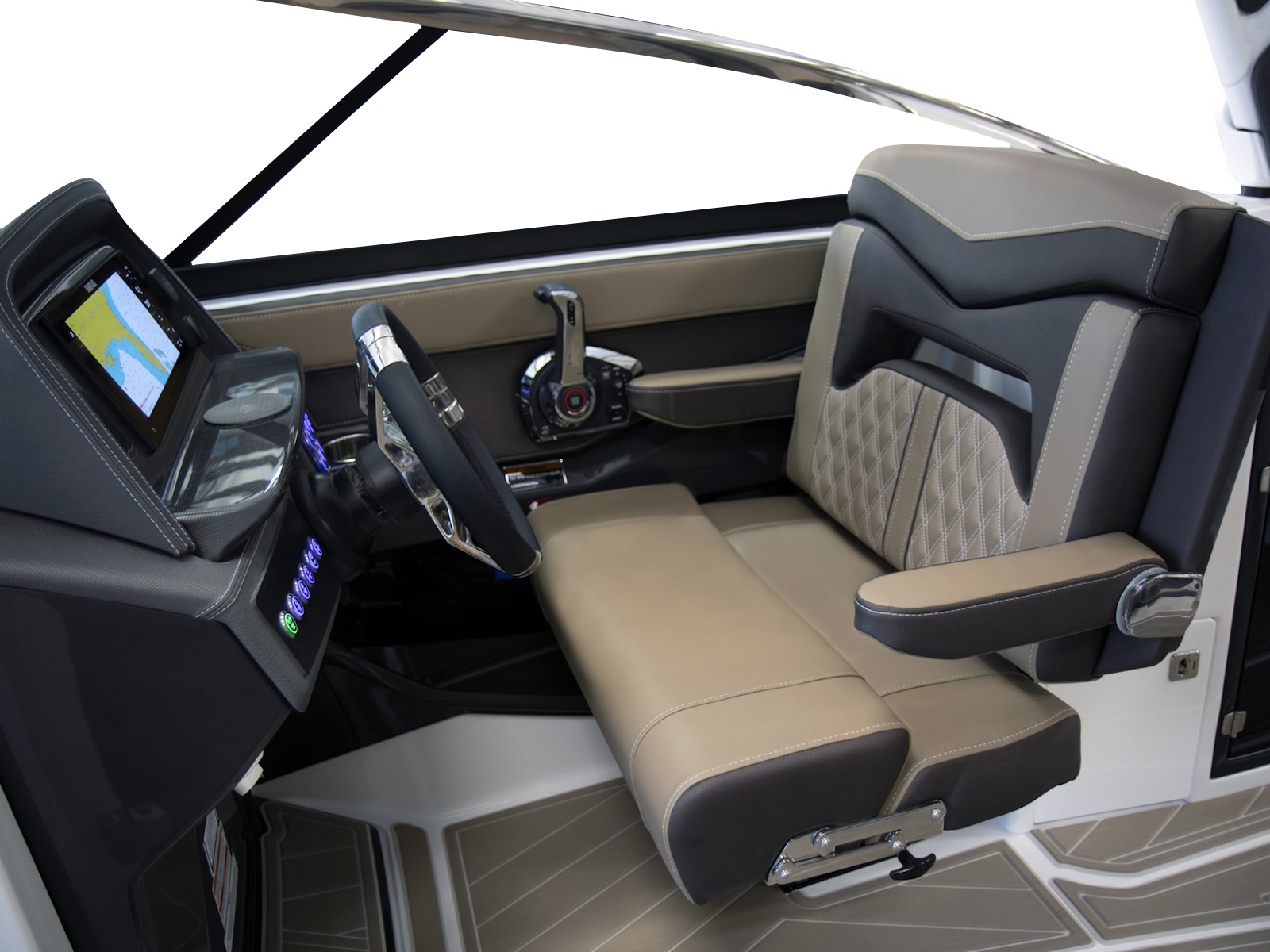 - Port Side Helm Seat, Bucket, Swivel w/Slider & Flip Up Bolster