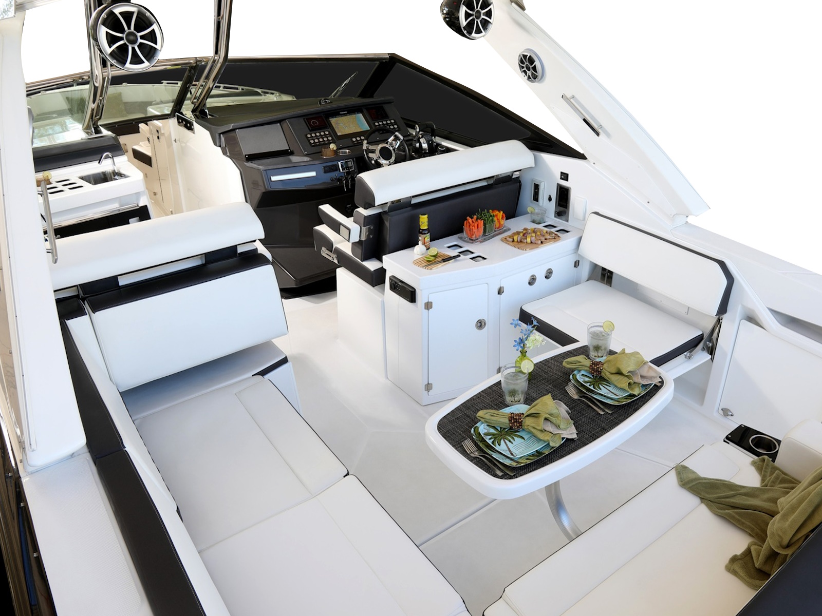 Unparalleled performance defines the 385SS but not at the expense of luxury and comfort. Above deck, you’ll find a vast, wide-open layout with a large cockpit and bow seating area as well as masterfully laid out helm station. Below deck, you’ll find a luxuriously appointed cabin awaits you making overnight entertaining and relaxation everything you could ever desire.
