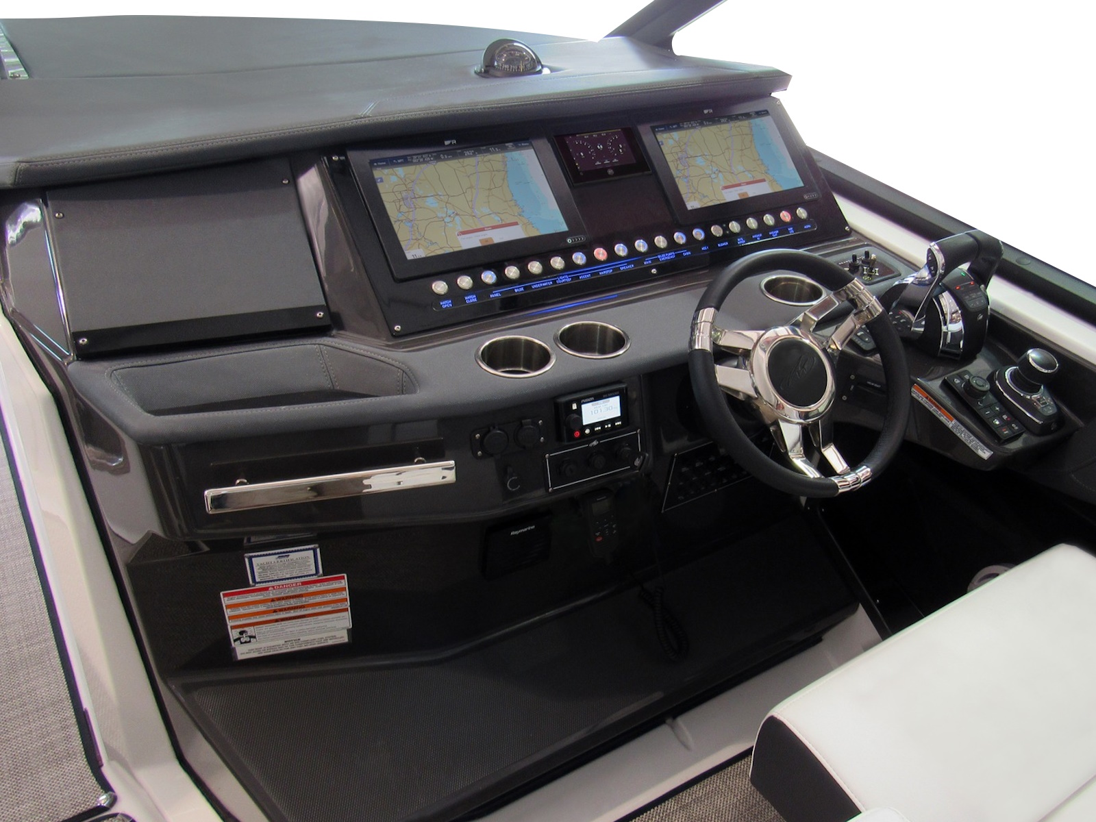 - Stereo, Fusion Apollo Series Satellite Ready AM/FM Bluetooth w/LED Lighted Speaker (4) Bow, (4) Cockpit & (2) Non-Lighted Interior, (1) 4 Channel Amplifier, & (1) 5 Channel Amplifier,10" JL Sub-woofer & Dash & Cockpit Remotes