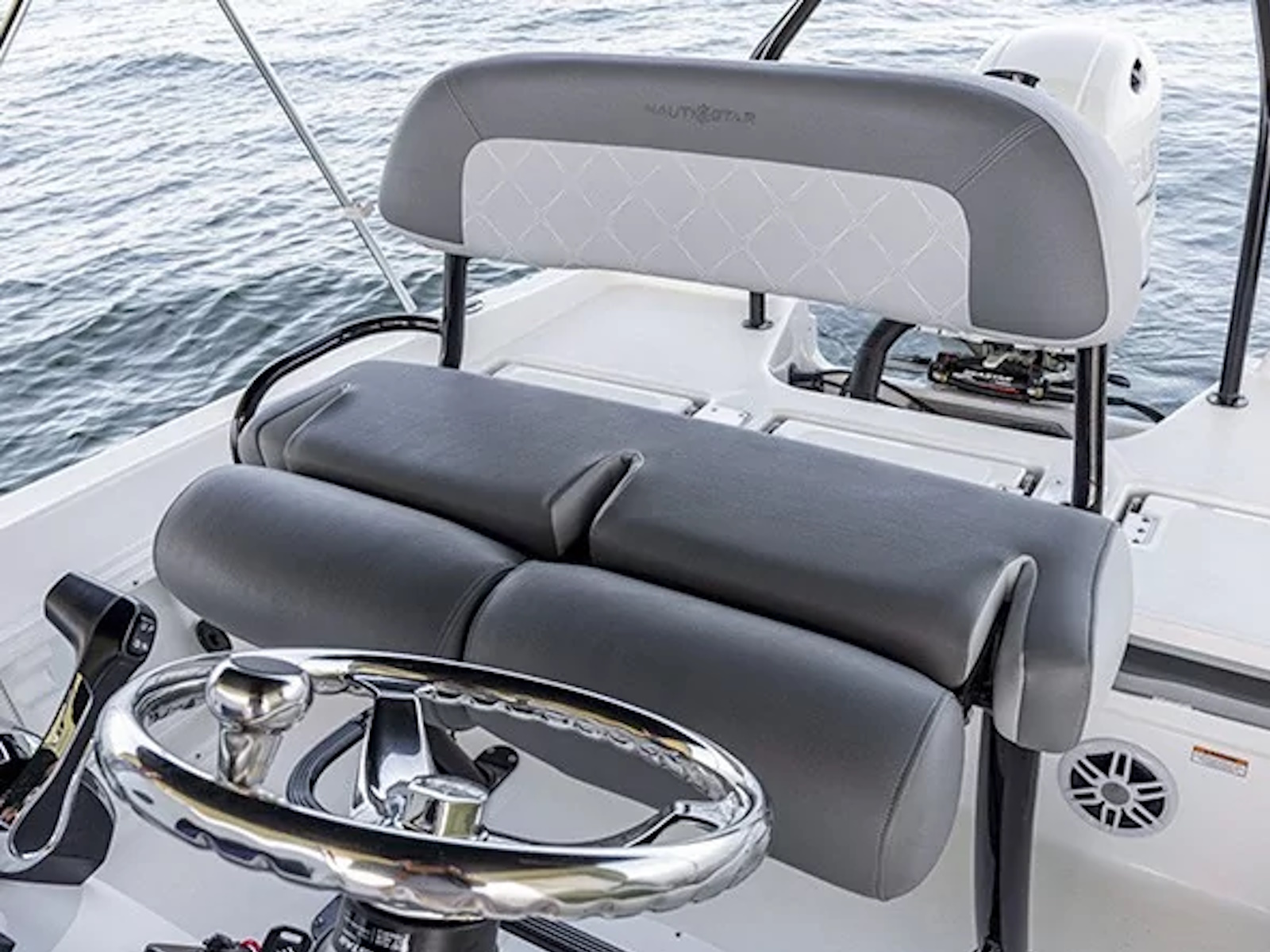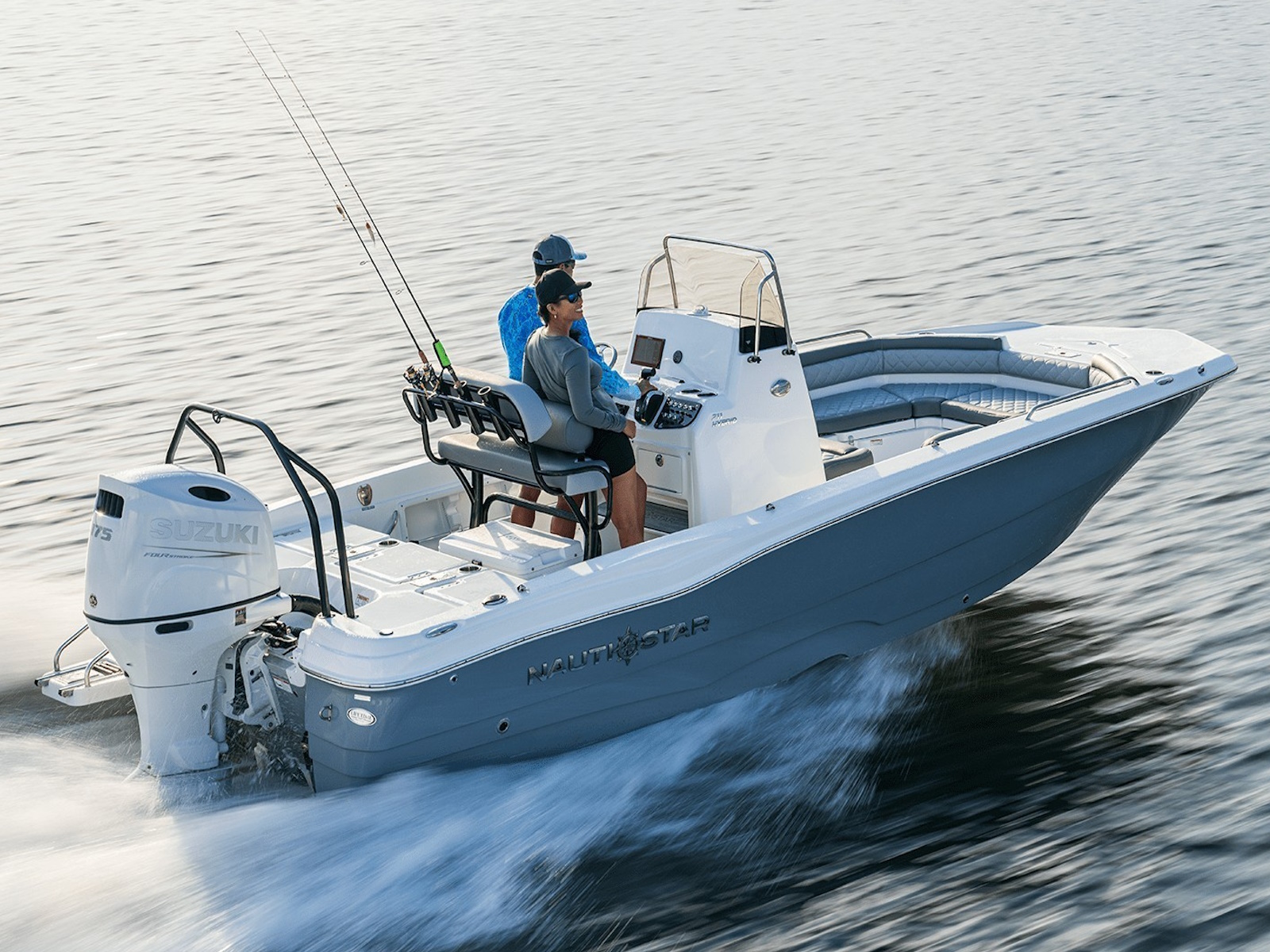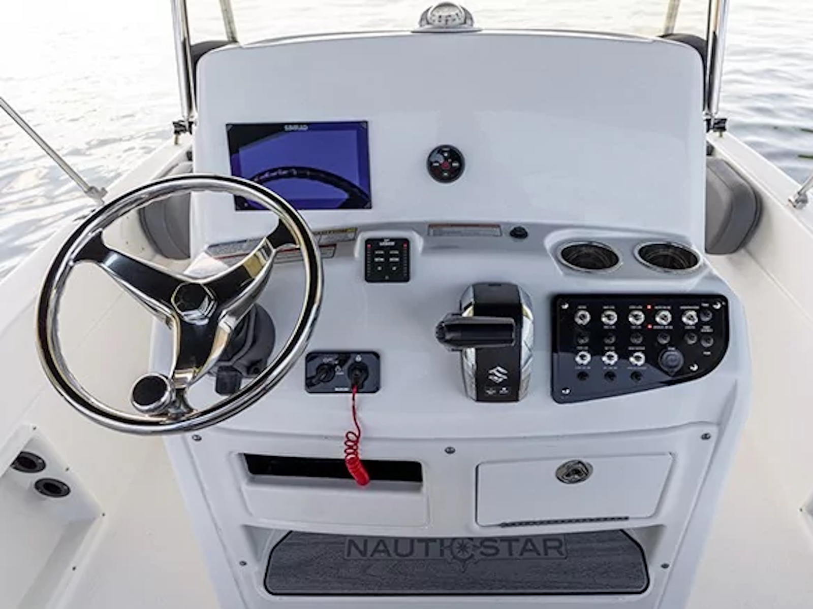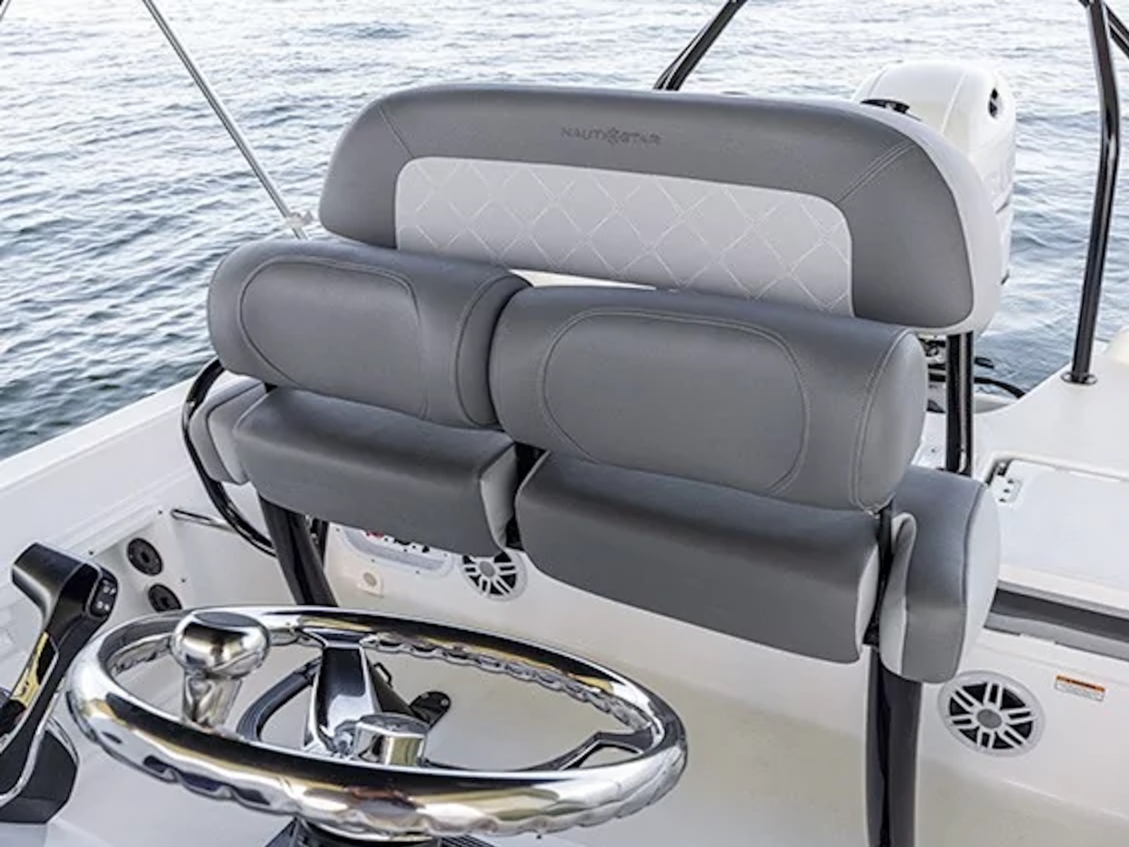 NauticStar’s 211 Hybrid is the perfect host for friends and family. Its ample seating – three-across at aft and five up at bow – make it easy to engage socially on the water. When it is time to get serious about fishing, however, the 211 Hybrid will up your game big time. Features like six in-console rod holders and 13-gallon livewell/baitwell, gunnel rod holders, and a non-skid self-bailing cockpit come standard. The aft and bow seats even convert into casting platforms and are utilized for cast net storage, battery, and livewell storage.