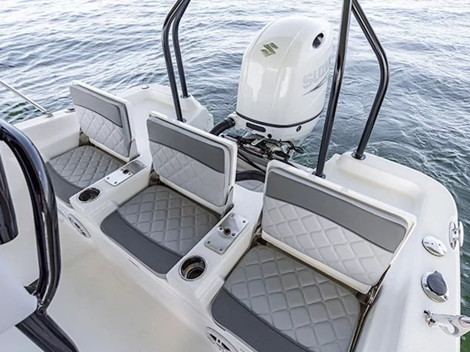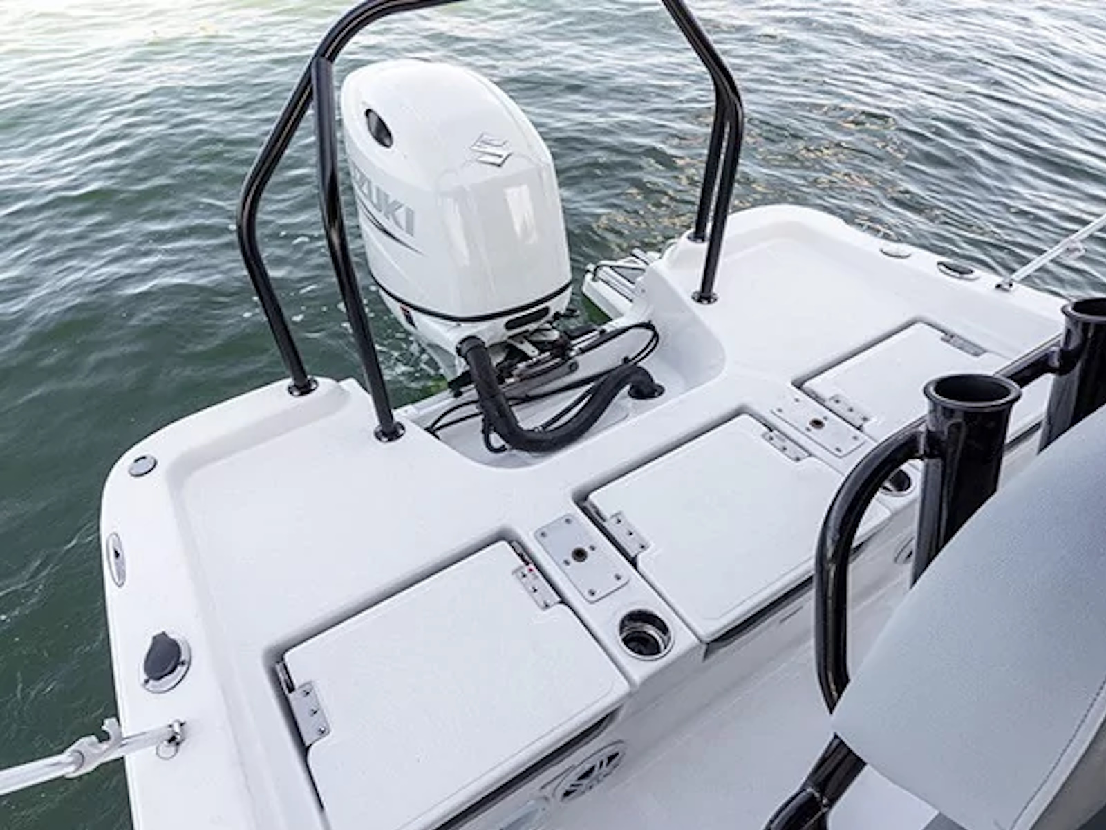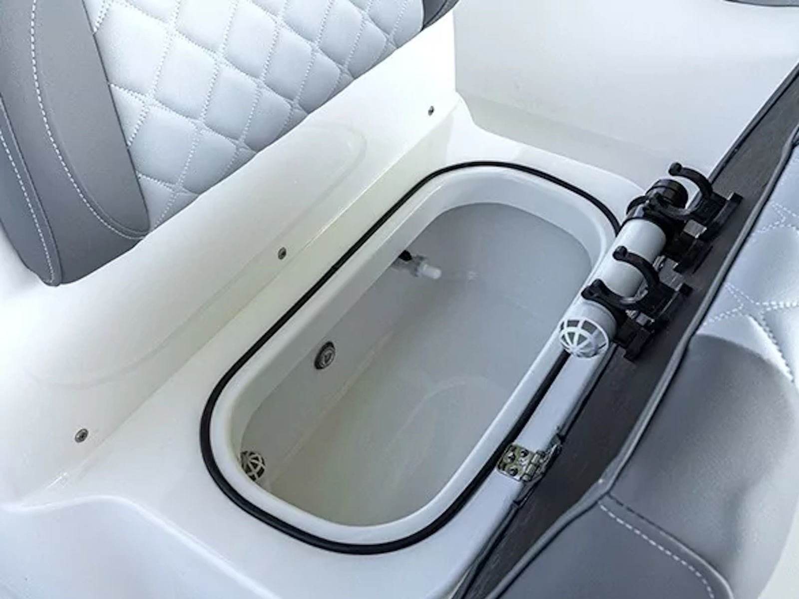 - 3-Across Floding Aft Jump Seats w/ Cast Net under Port Seat, Livewell Under Center Jump Seat, & Battery Storage under Starboard Seat