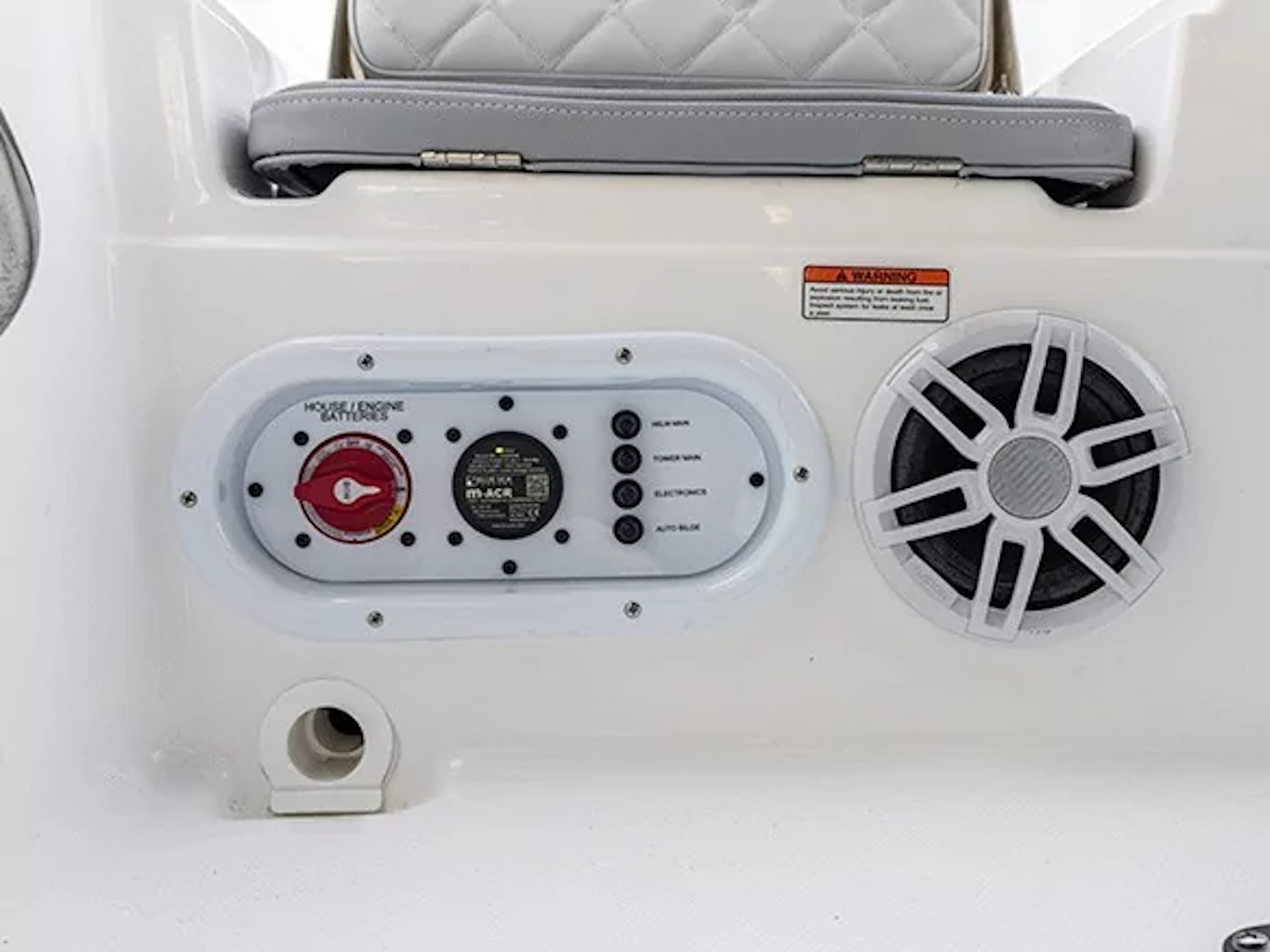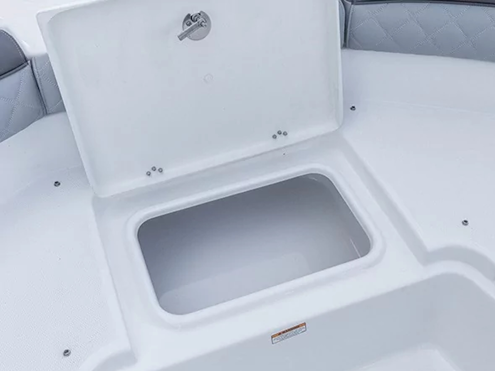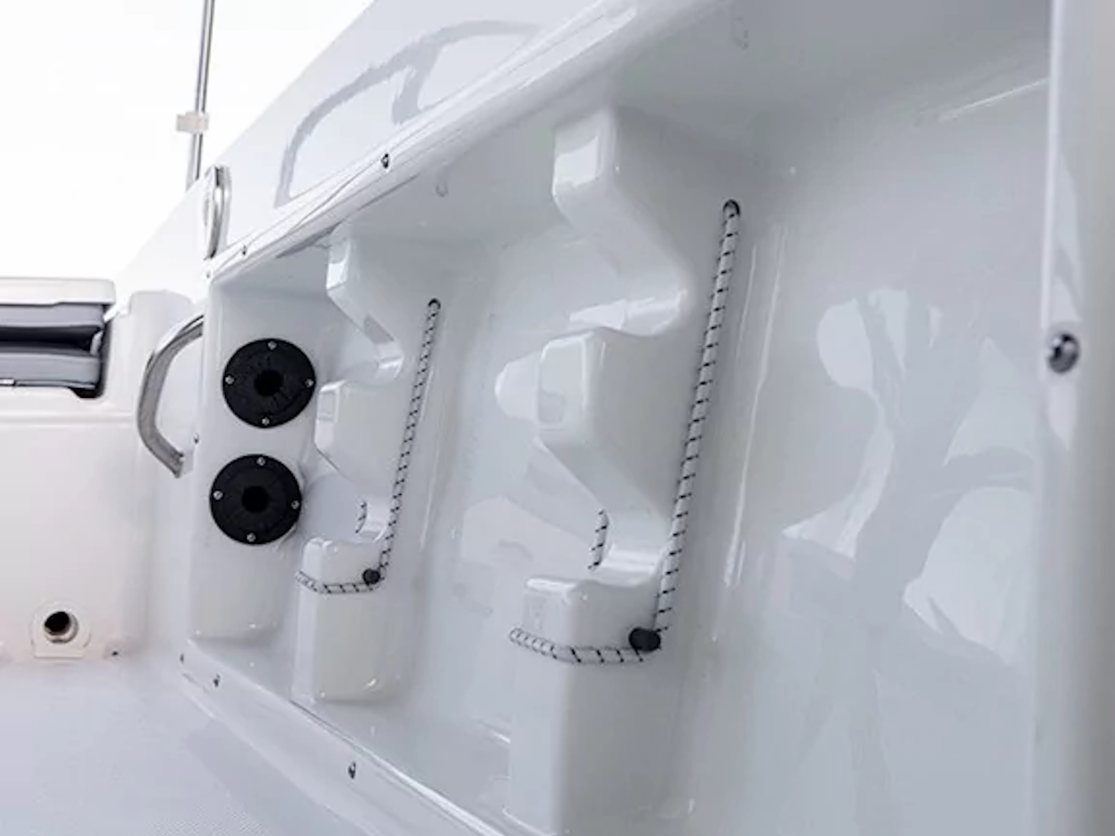 - 3-Across Floding Aft Jump Seats w/ Cast Net under Port Seat, Livewell Under Center Jump Seat, & Battery Storage under Starboard Seat