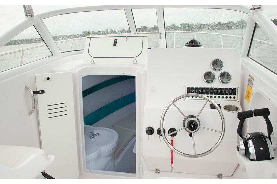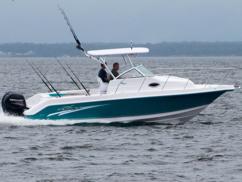 Below deck the 26 Express offers a large forward sleeping area, freshwater sink, porta potti, and all the amenities Pro-Line has become famous for.