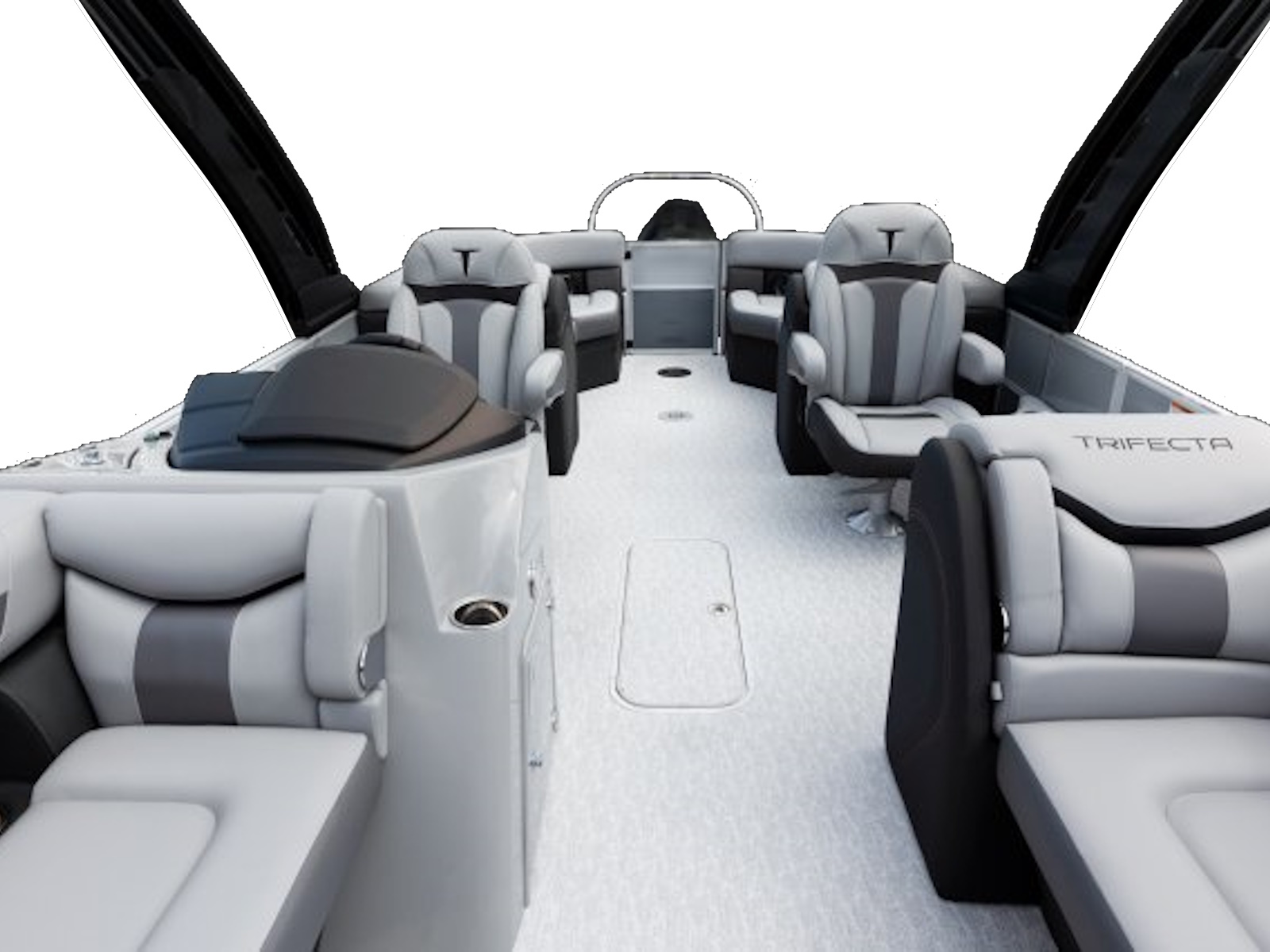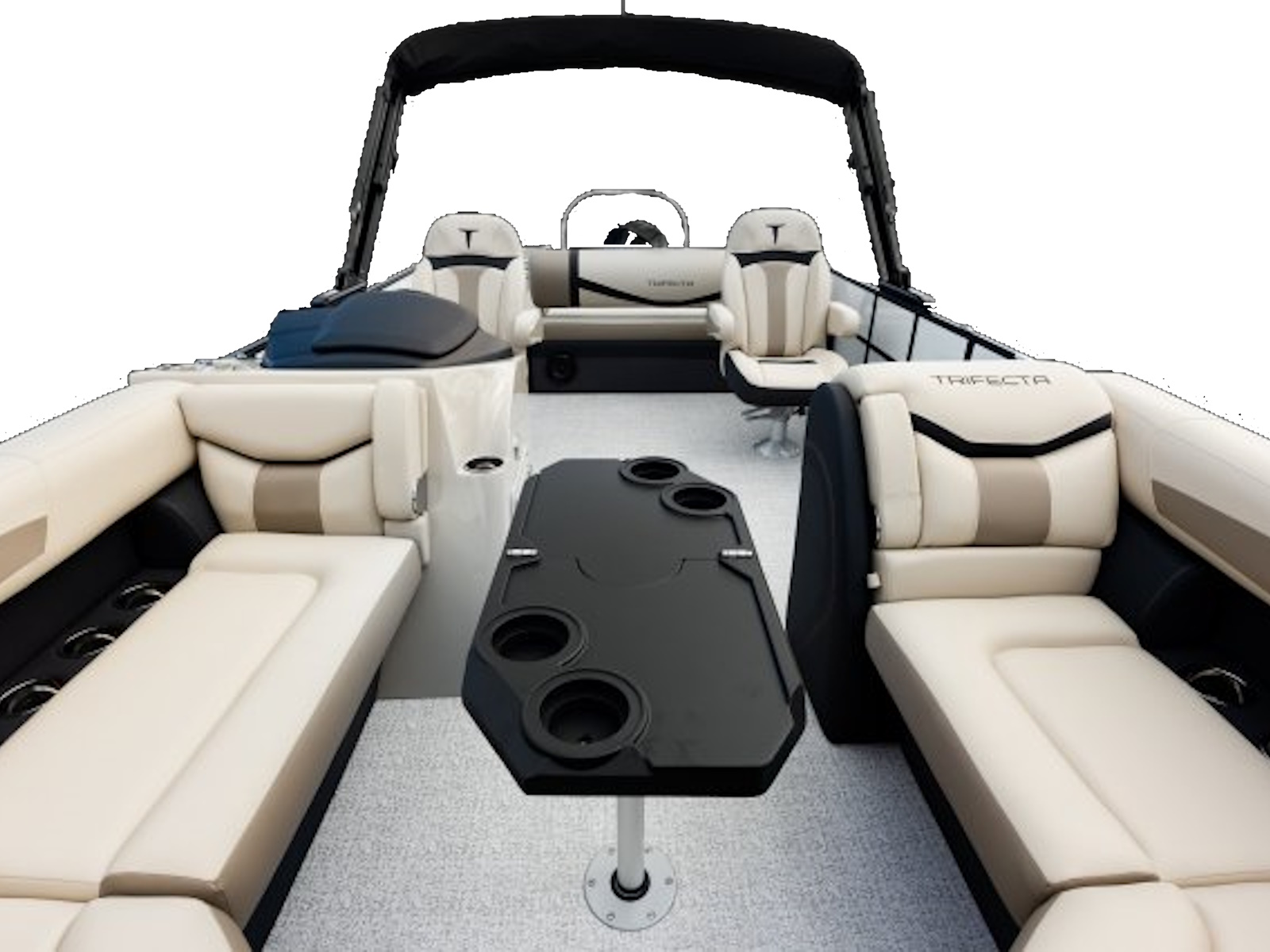 For a feature rich entry-level pontoon that isn't entry-level, check out the Trifecta C-Series. Compare to anyone else's pontoon & you will find the yardstick we use is ours exclusively. Quality construction incorporating many of the same applications and materials found in our top of the line models are utilized in this series. Spacious 10 foot bimini tops, 16" on-center cross members, Bluetooth compatible stereo and many more items you may find in the options column on other brands are all standard on our C-Series boats.