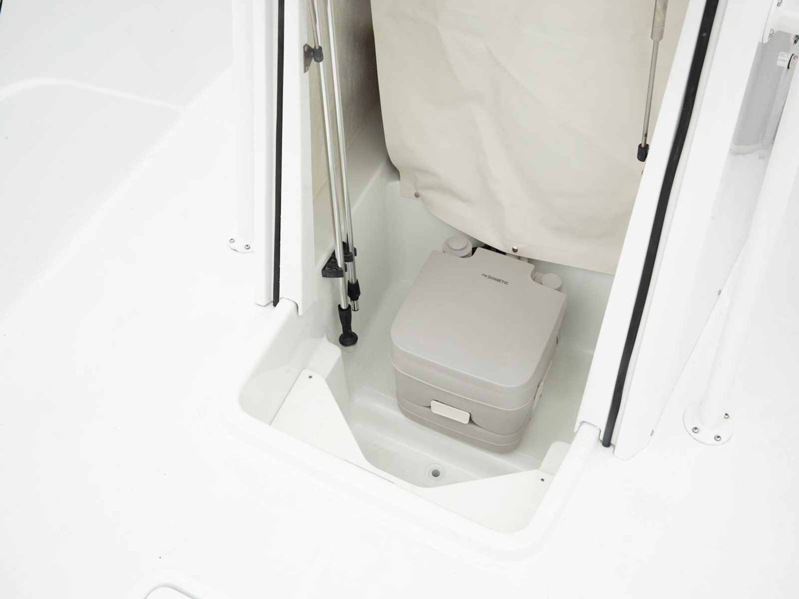 Our oversized changing room with optional porta pottie room offers plenty of space to switch attire or stow bulky equipment without obstructing cockpit maneuverability.