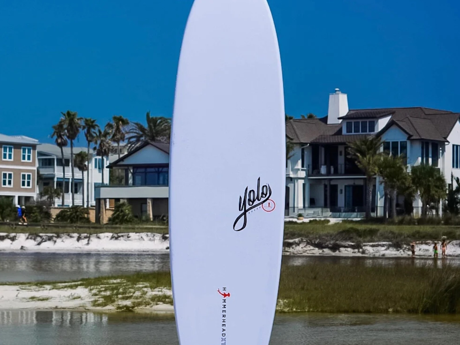 Lightweight + durable + great price = the YOLO Hammerhead! The Hammerhead is a traditional fiberglass Stand Up Paddleboard with an EPS foam core wrapped in an ABS thermo-formed plastic. A tough band covers the rail seams and serves as extra protection to prevent damage from the paddle blade. These YOLO Board SUPs are built to last at a great price! Includes easy-to-carry LiftSUP handle. The YOLO Board Hammerhead is a game-changer in the industry, perfect for the rental market or anyone tough on their equipment.