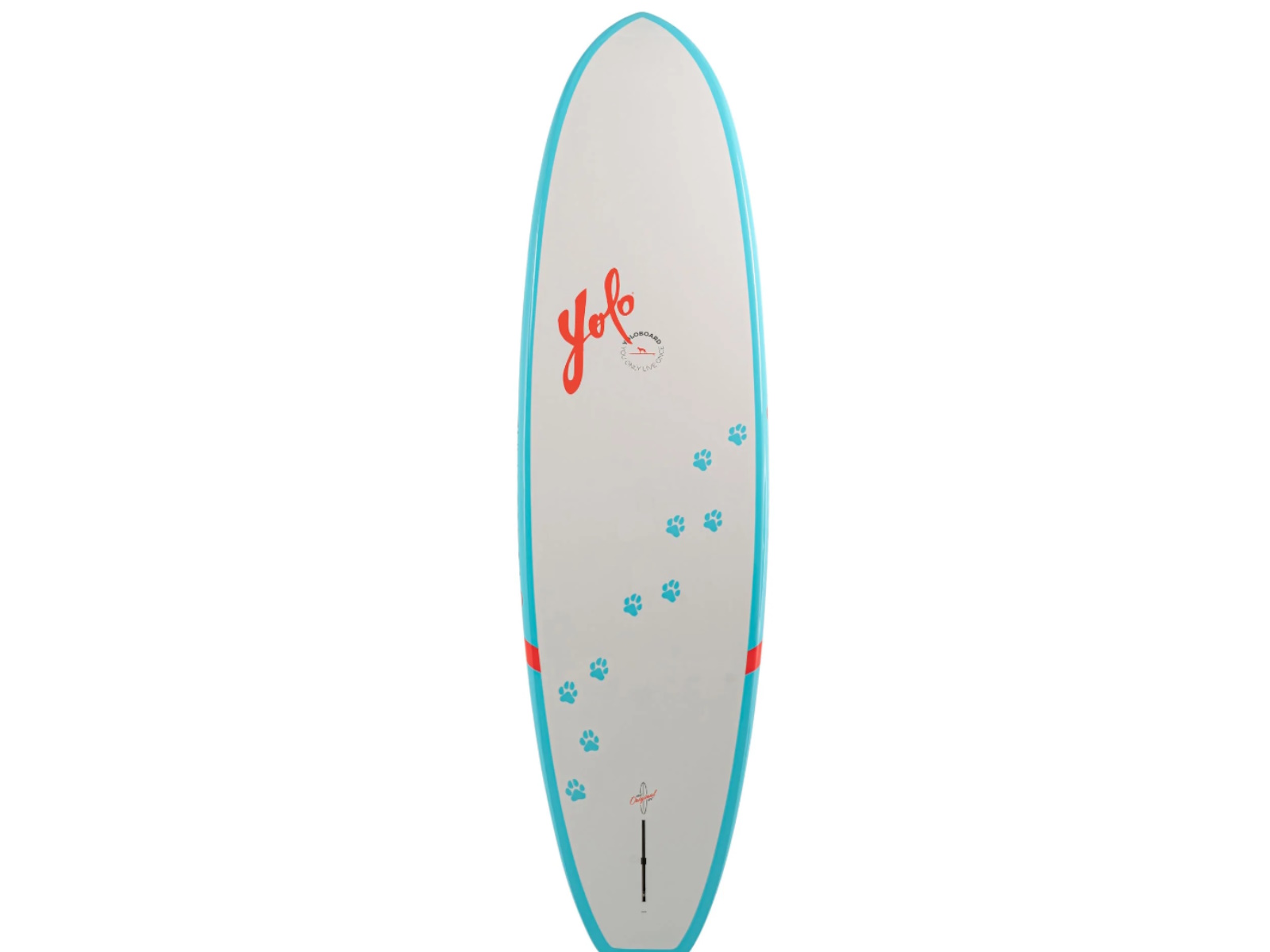 You Only Live Once... Why settle for less than the best? YOLO Board is renowned for making the highest-quality and most stunning Stand Up Paddleboards in the industry. The 10'6 Original is the perfect combination of beauty, light weight and performance. This handcrafted epoxy/fiberglass board features limited edition custom artwork from Jake Meyer. All of the high-end features are included: dual bungee cargo system, integrated cooler tie-downs and GoPro mount, easy-to-carry LiftSUP pop out handle, custom fiberglass fin, and super comfy EVA non-slip deck pad. A wide, flat deck and ample volume to provide an easy, stable ride. The YOLO Original is a great all-around SUP for any paddler, regardless of skill level.