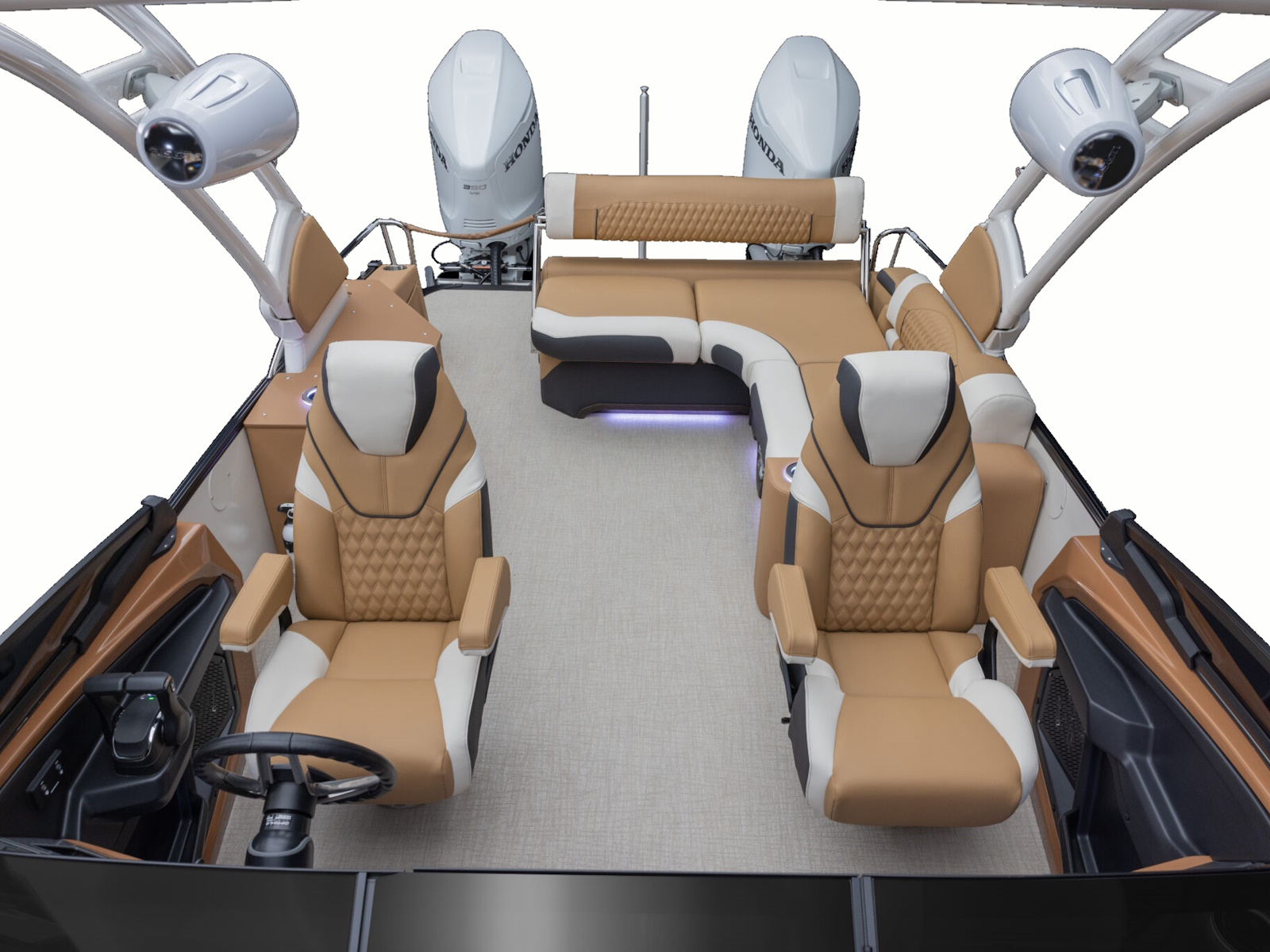 - Upper deck furniture – includes backs, arms, sun pads, rear console with (2) speakers on the upper deck (CRFS, ENTFS)