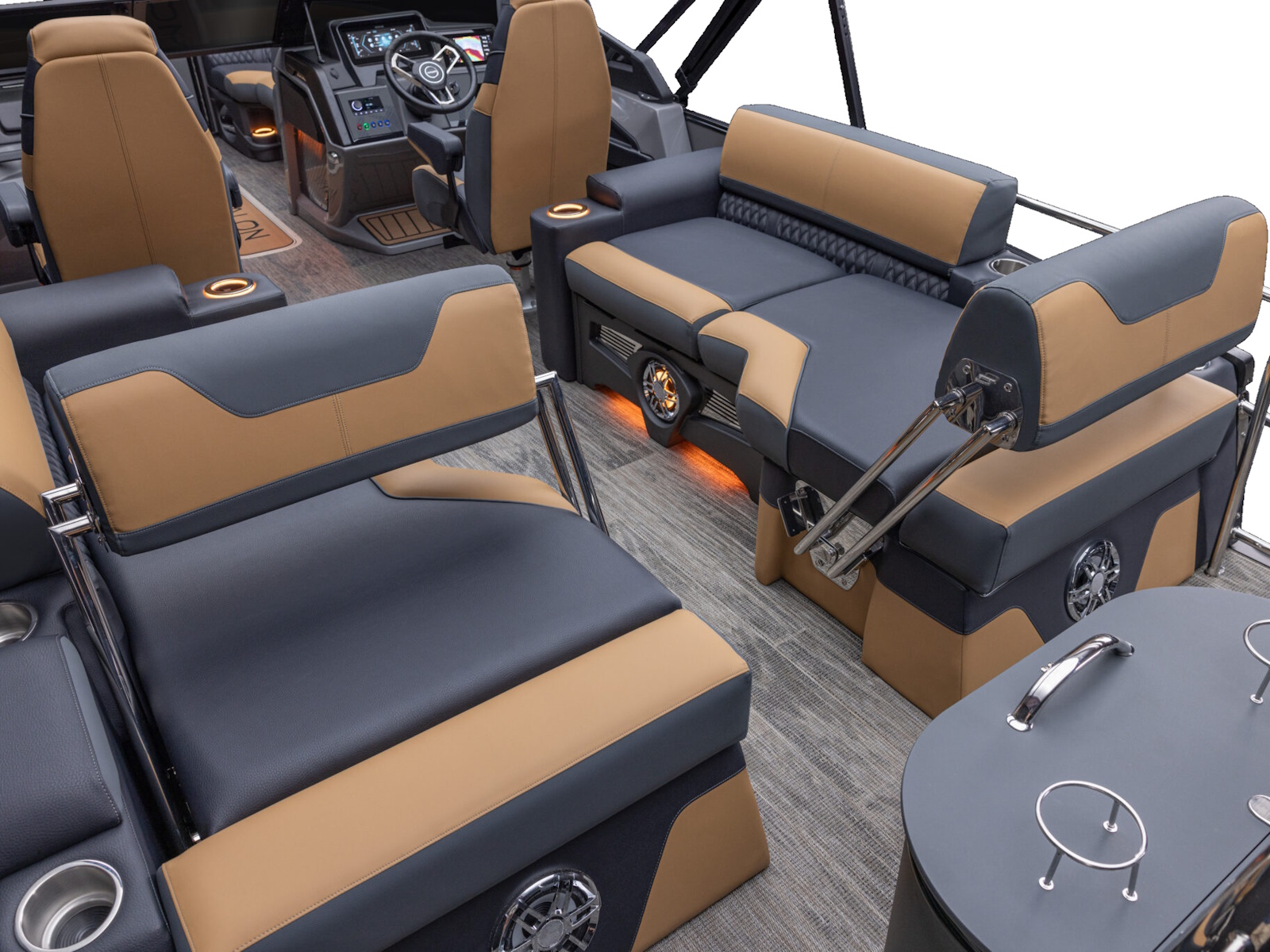 - Upper deck furniture – includes backs, arms, sun pads, rear console with (2) speakers on the upper deck (CRFS, ENTFS)