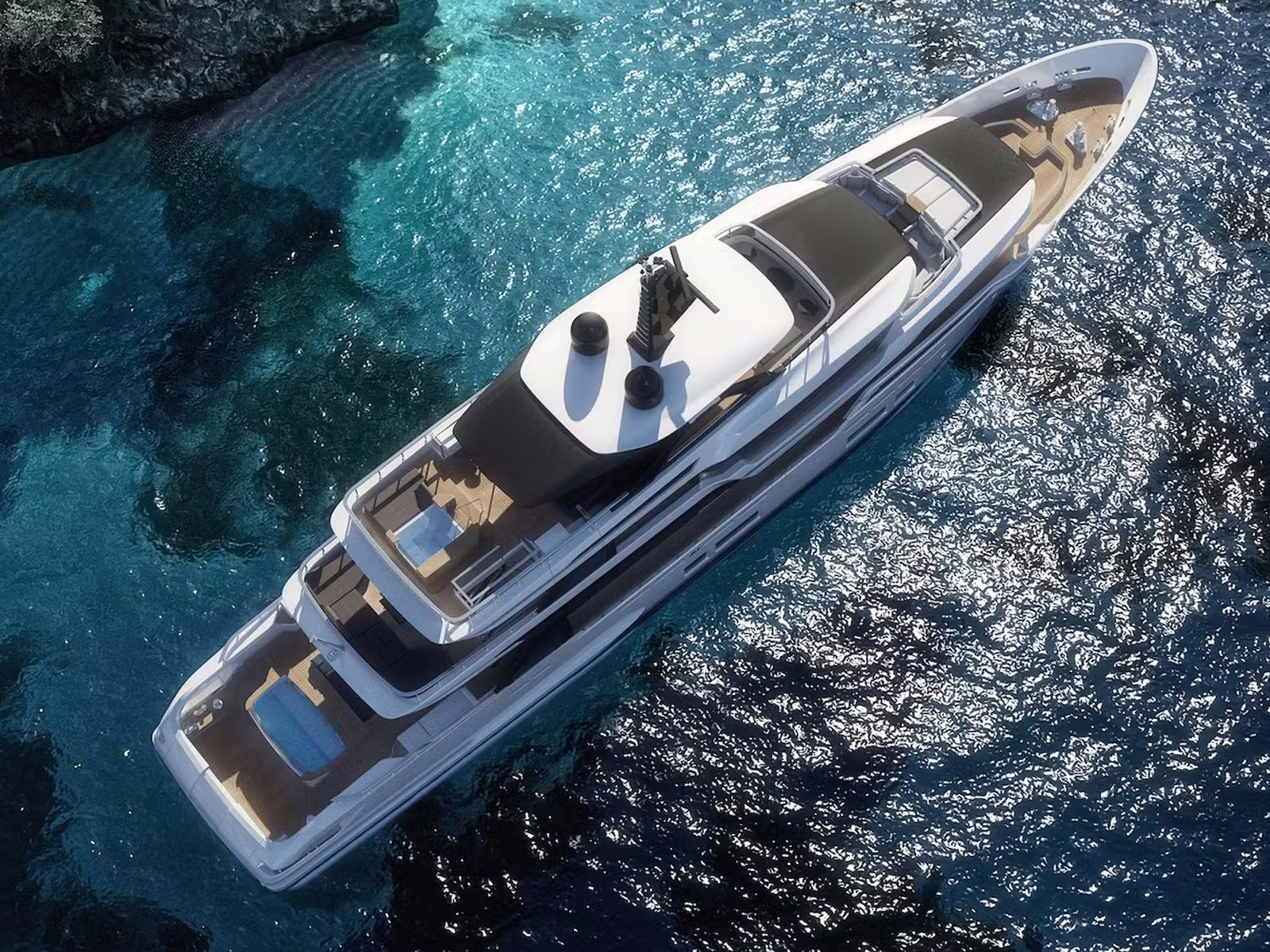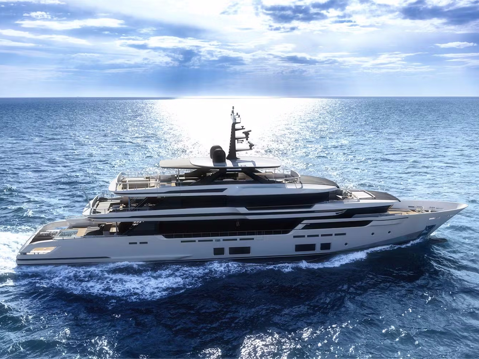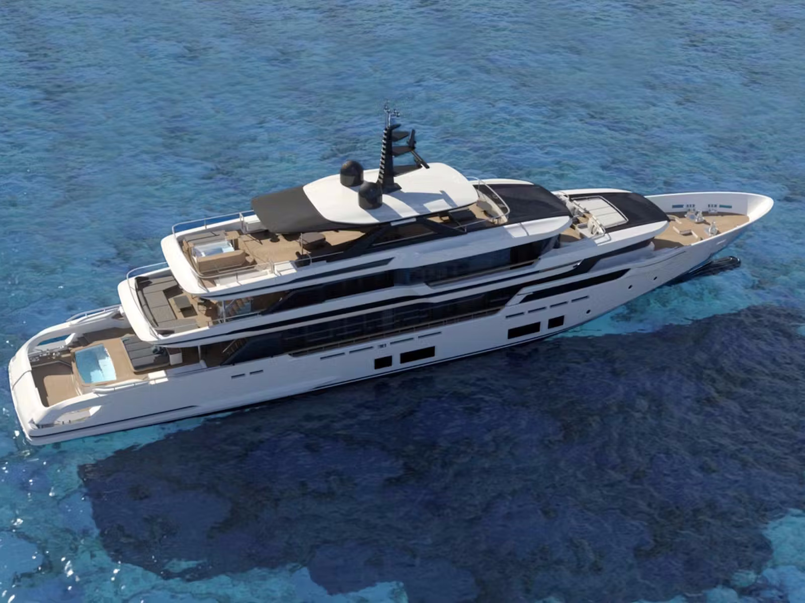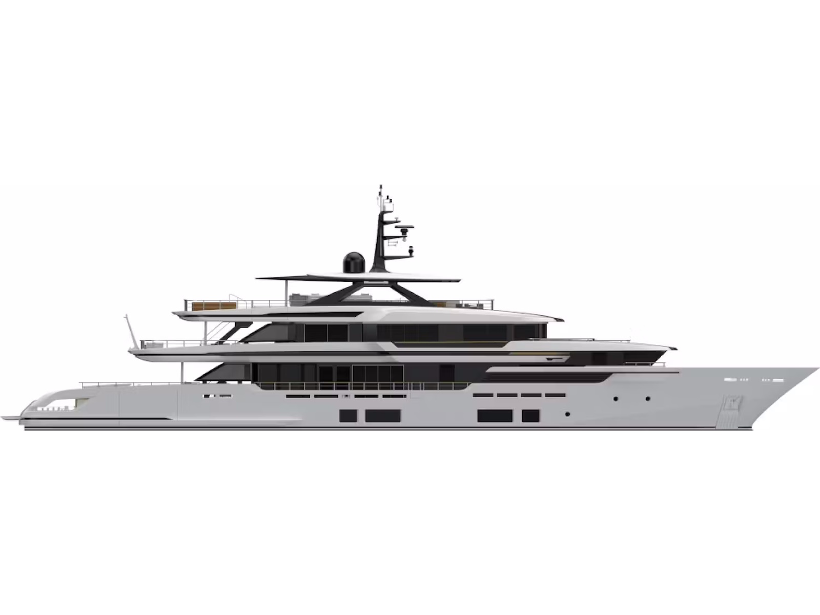 The debut of the new flagship introduces some highly appealing features: designed for the first time entirely in aluminum, a master suite on the upper deck, interconnection between interiors and exteriors, glazed surfaces, and refined, sophisticated interior architecture.