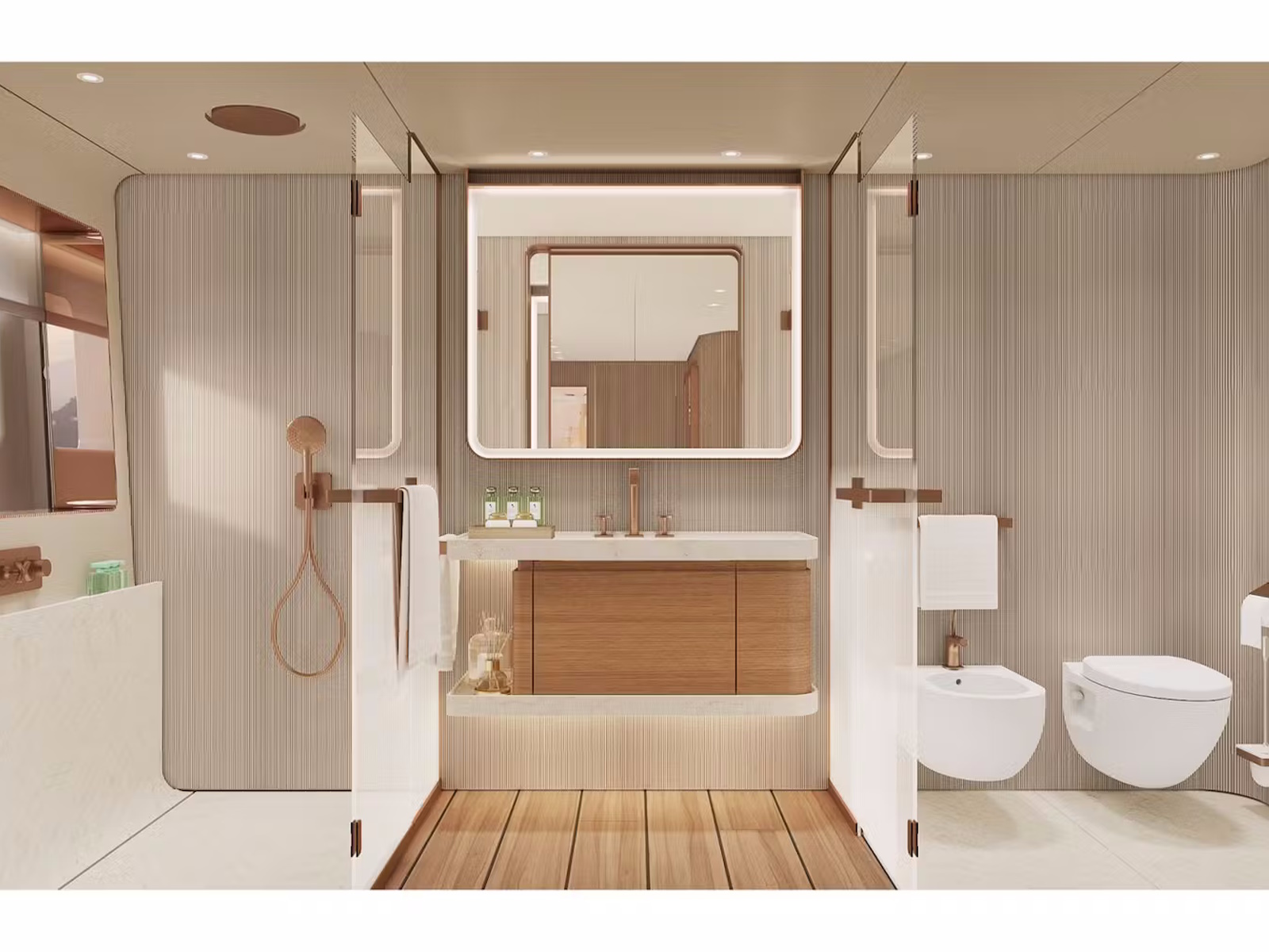 The interior design is based on the concept of sophisticated detailing and the skillful use of fine, sustainable materials by the yard’s expert craftsmen.