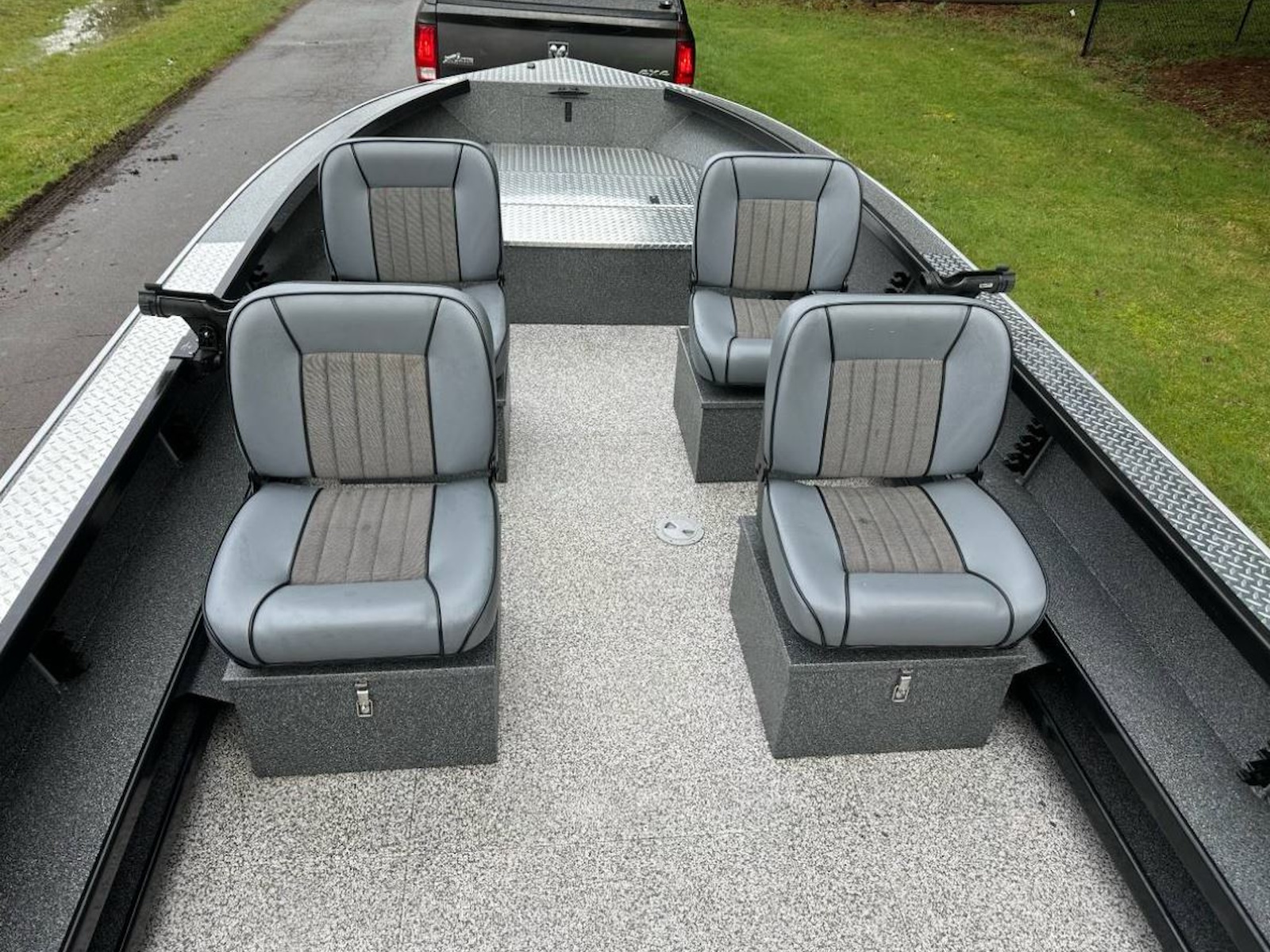 - Four deluxe comfort seats on adjustable aluminum storage boxes