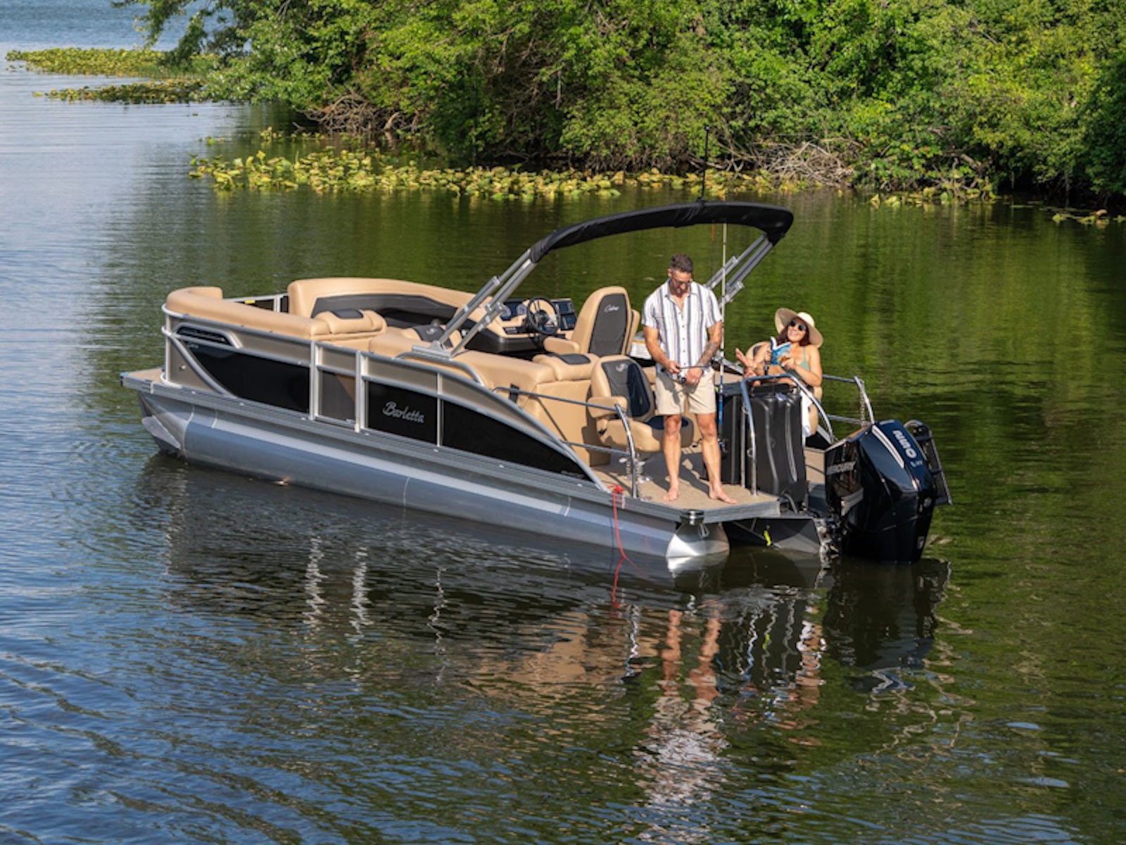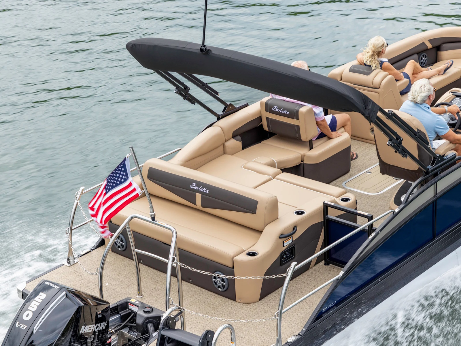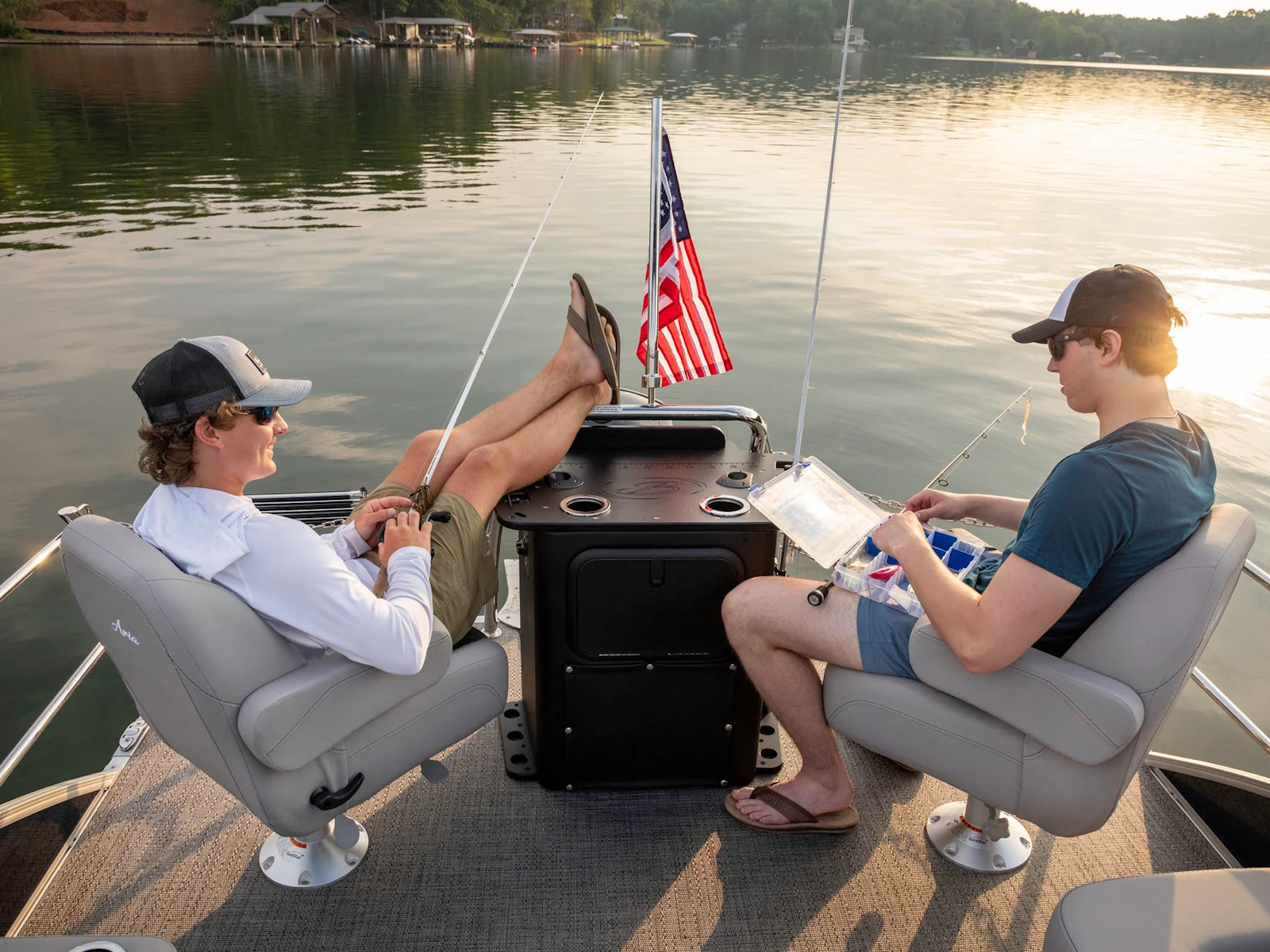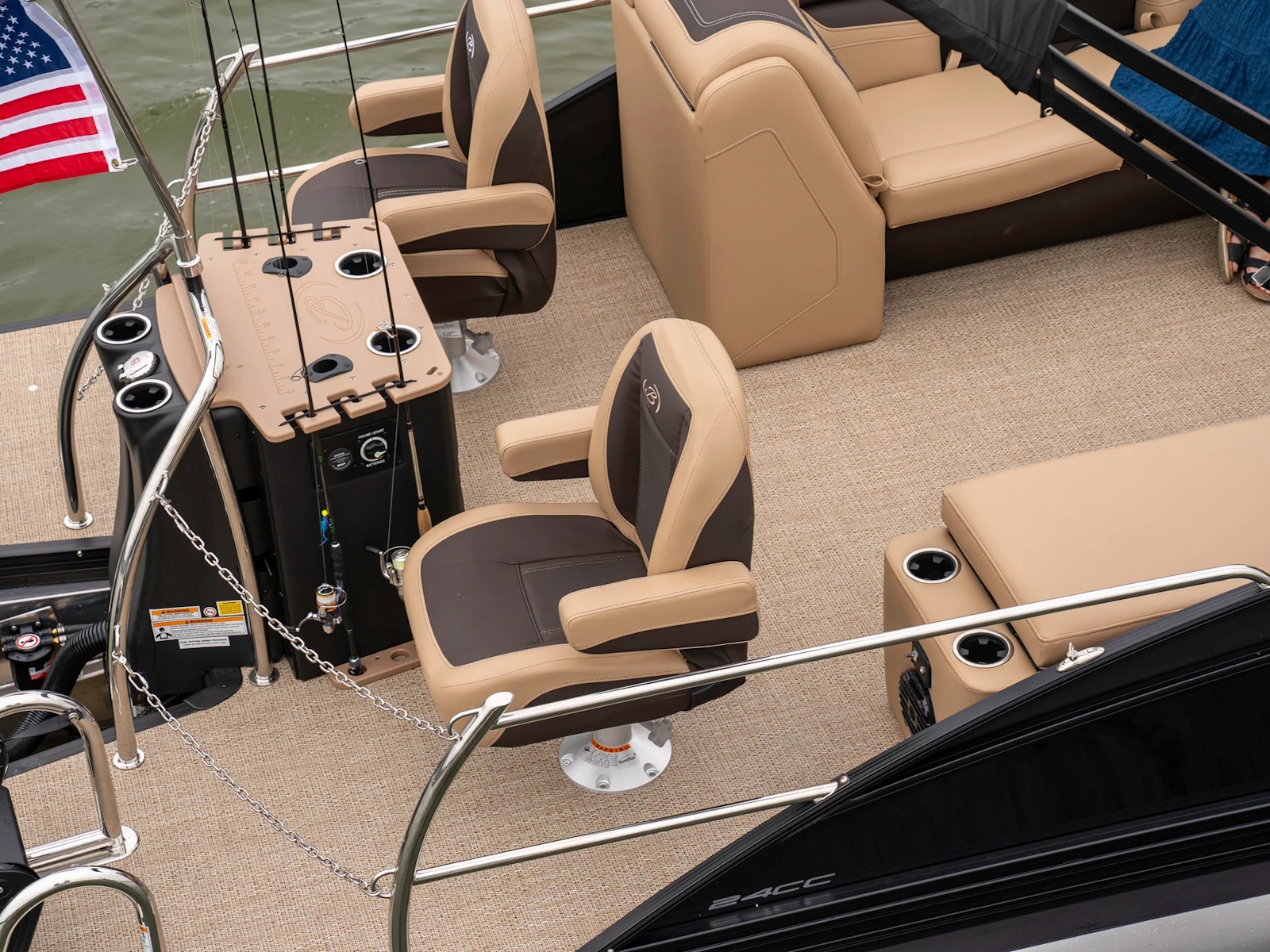 Fishing Center, with Rod Holders, Rod Storage, Stow-Away Tackle Trays and Yeti-Ready Cupholders | Triple Toon Package w/ Midship Storage - Cabrio | Stow-Away Table and Storage in Port Chaise