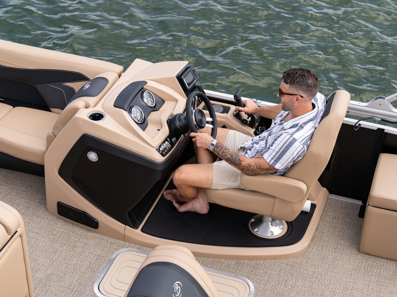 - Raised Helm Platform w/Marine Mat and "Yeti-Ready" Cupholder(s)