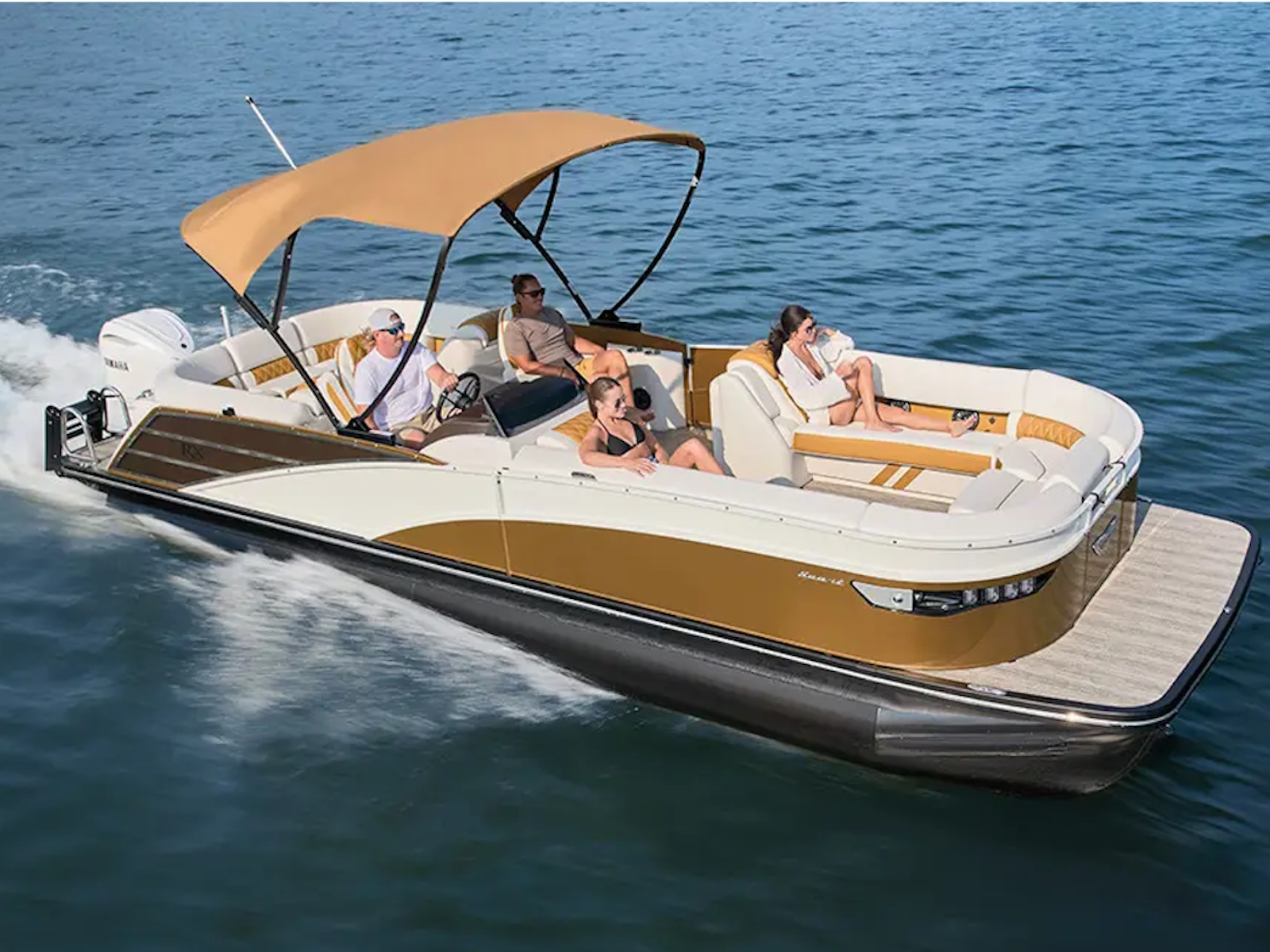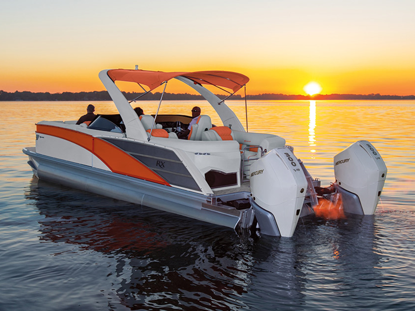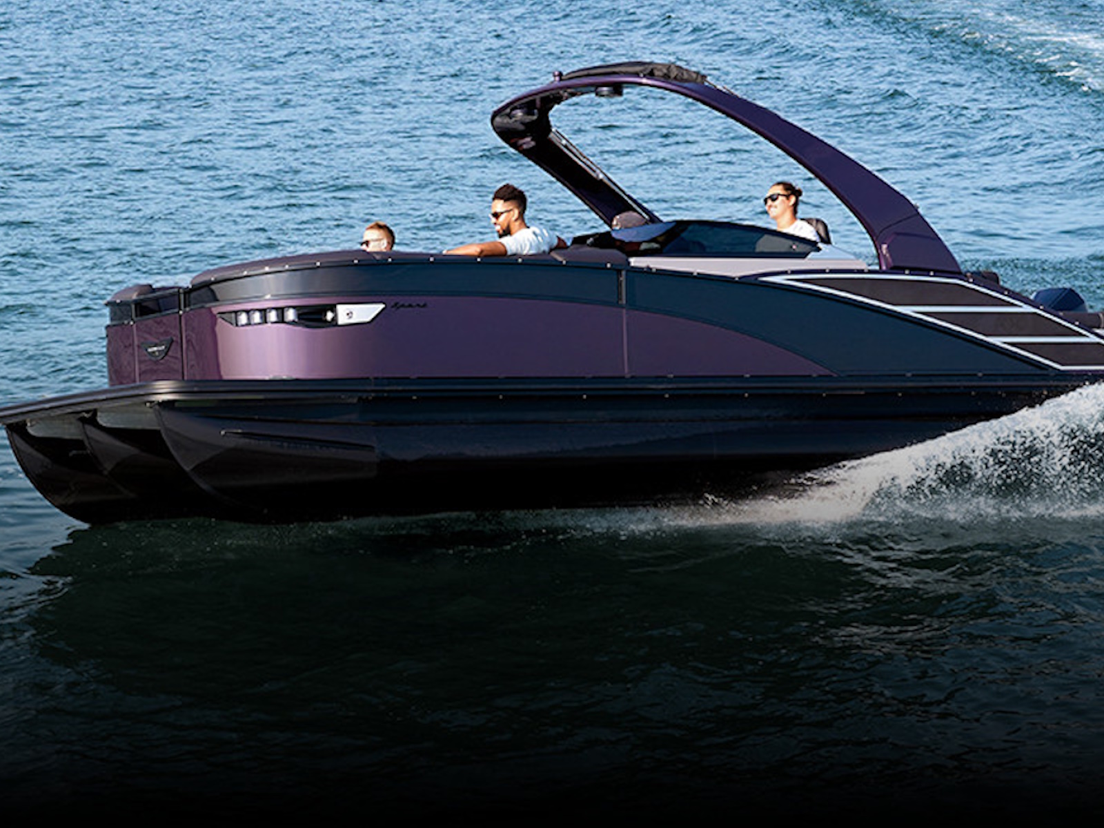 The RX Sport features an automotive-painted exterior that offers a modern design and exceptional quality, embodying the essence of high-end pontoon design.