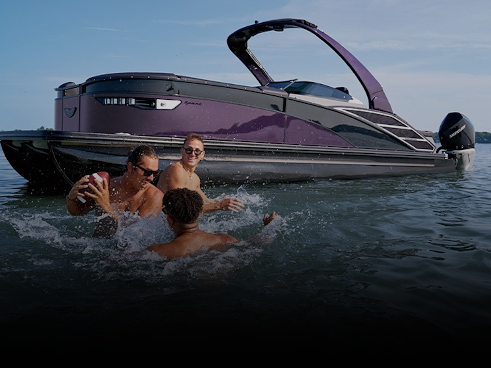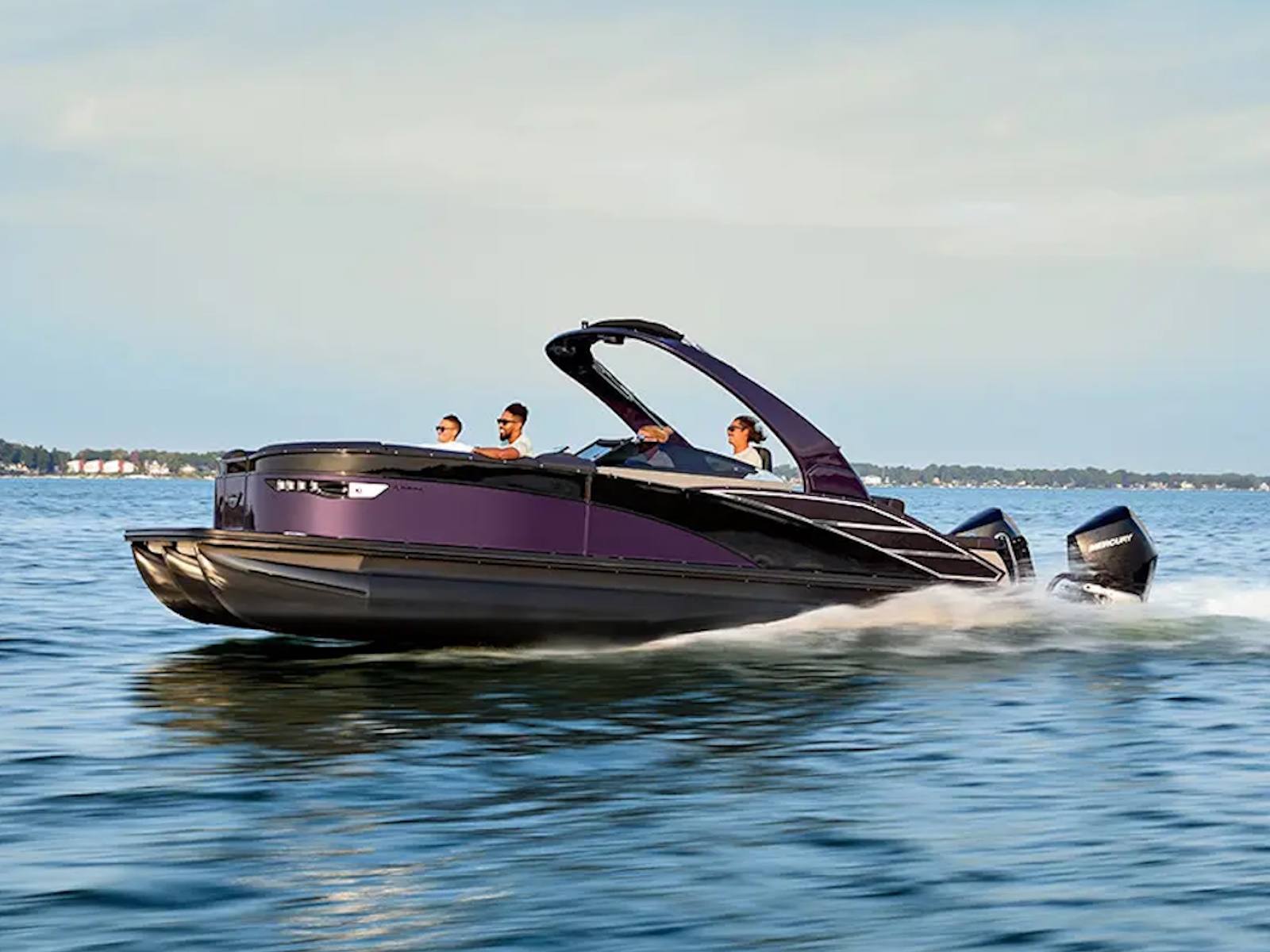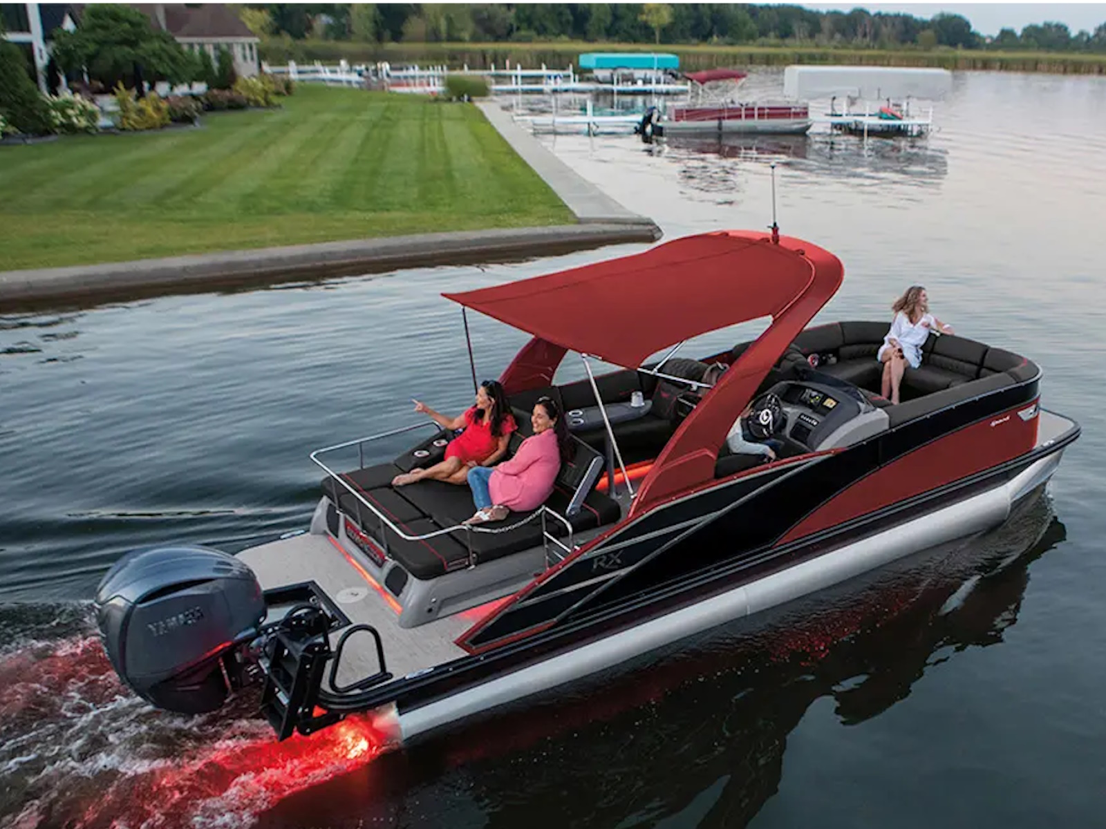 The RX Sport features an automotive-painted exterior that offers a modern design and exceptional quality, embodying the essence of high-end pontoon design.
