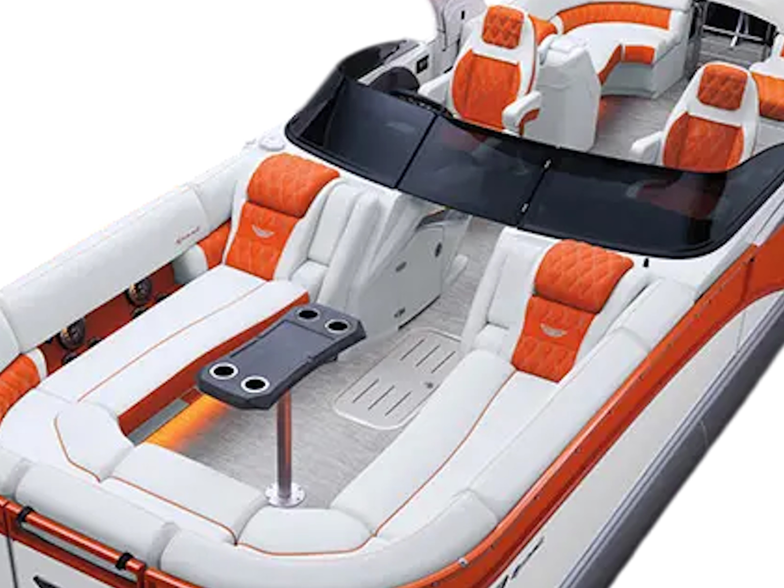 Turn heads with a premium, electronically controlled cladded arch. Its sleek, sporty look stands out on the water, highlighting the boat's high performance.