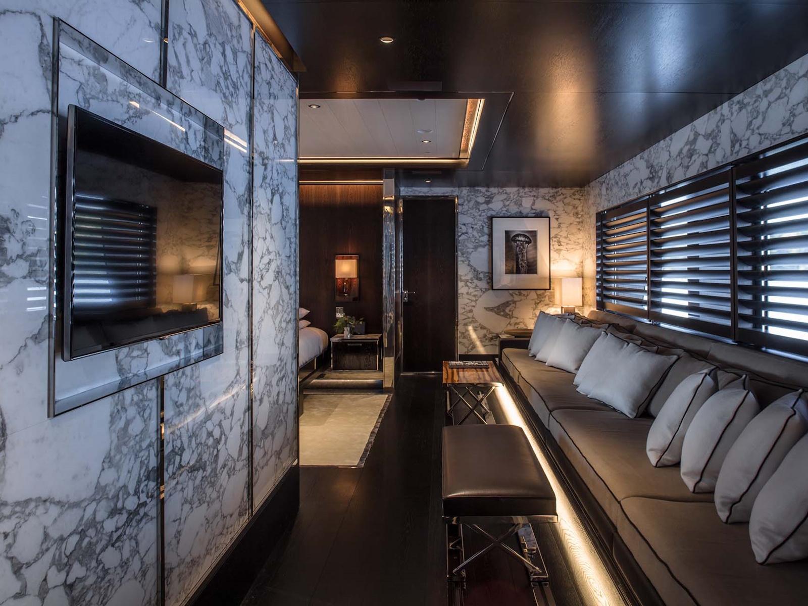 A strong visual identity enhanced by style features typical of military ships for masculine yet intimate touch, inspired by iconic classic sports car.