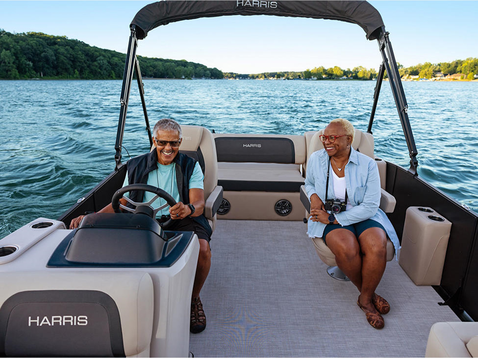 Take to the water on a craft built with value in mind that also includes more than you might expect, including a new 190 (19-foot) length, ultra-soft yet extremely durably vinyl upholstery, a reclining helm chair, and standard charging station. Personalizing your pontoon for watersports or fishing is simple—and optional performance packages give you better control on rough water.