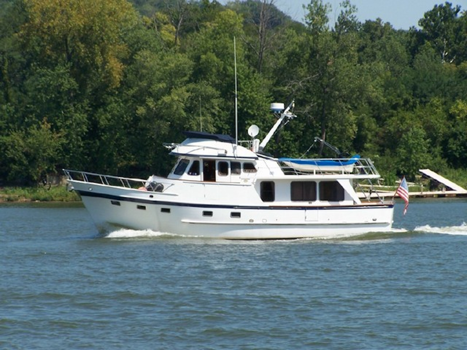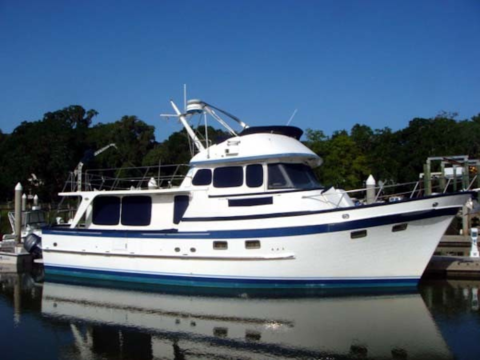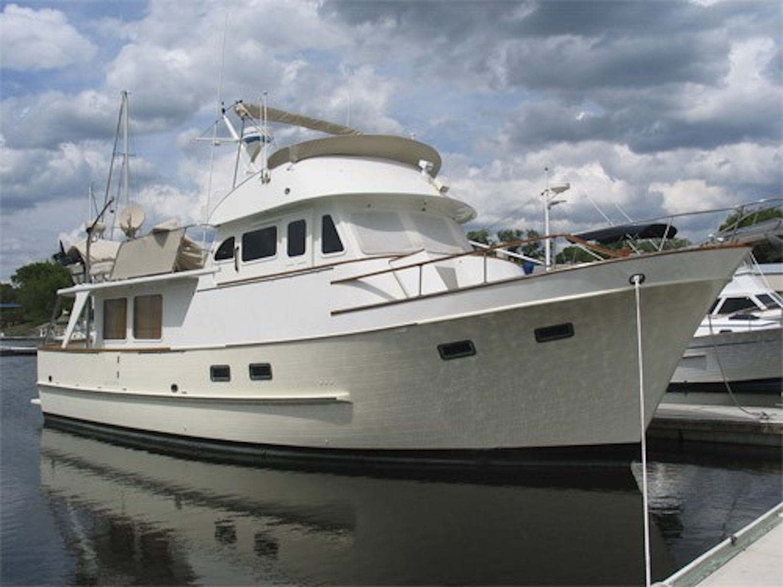 One of the great cruising boats patterned after the “Alaskan” that Art DeFever designed in wood for American Marine (Grand Banks.) The Alaskan touched off the popular design style known as a “raised pilothouse” cruiser that has been copied by everyone else over the years. This is another great cruiser for a couple and occasional guests in the second stateroom. The pilothouse is perfect for long passages and cold or rainy weather. She has a range of over 1000 miles. Her long boat deck will easily accommodate a 12-foot tender. The original design was built in the Sen Koh yard in Taiwan from 1977 thru 1990. A later version, built in the POCTA yard, placed the bridge behind the raised pilothouse to yield a lower profile. Read an excellent article in Passagemaker Magazine about the original 49 RPH here. https://www.passagemaker.com/cruiser-reviews/cult-classic-the-enduring-and-ever-popular-defever-49-2