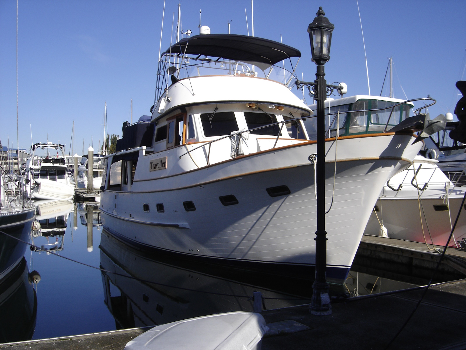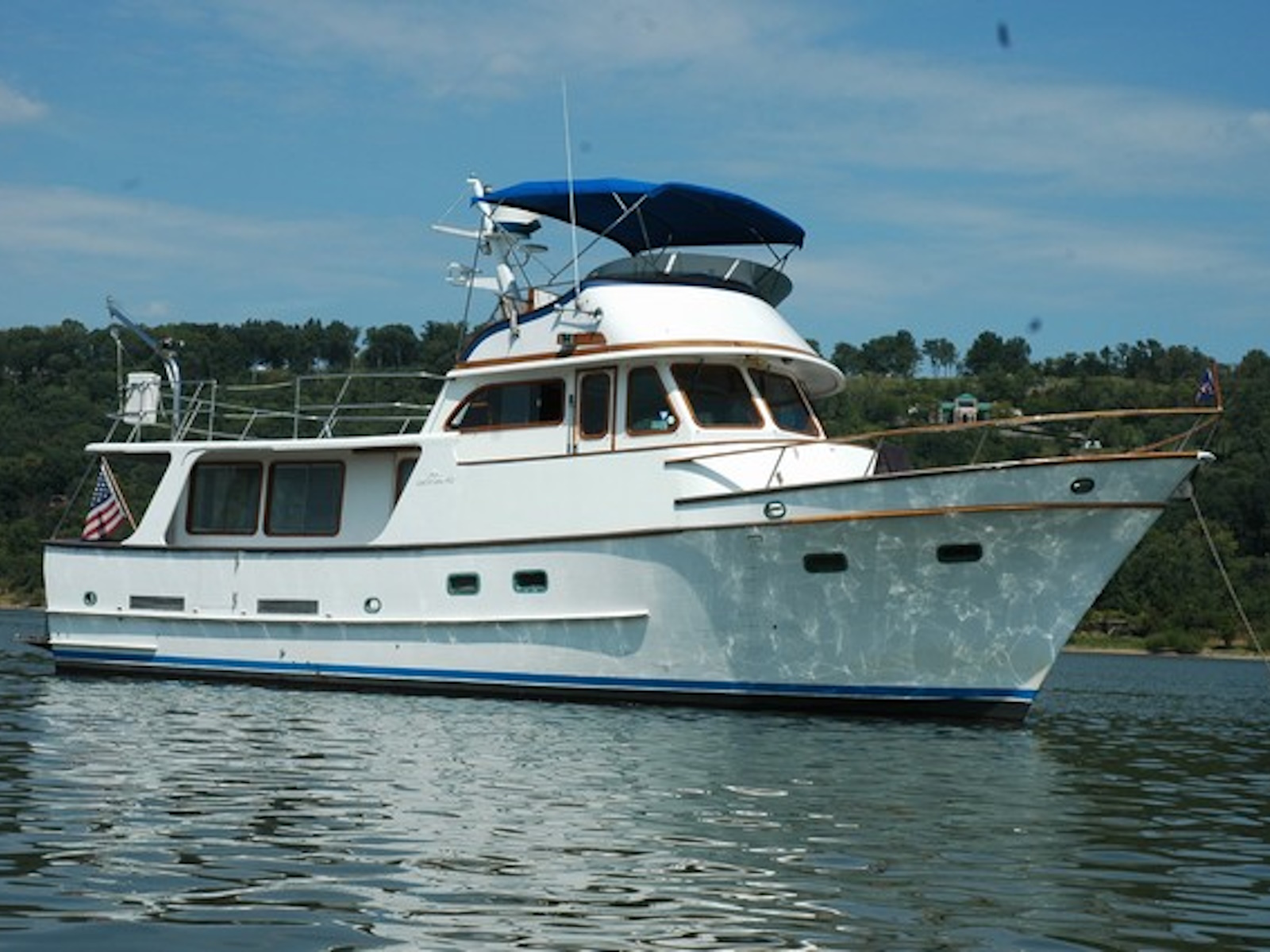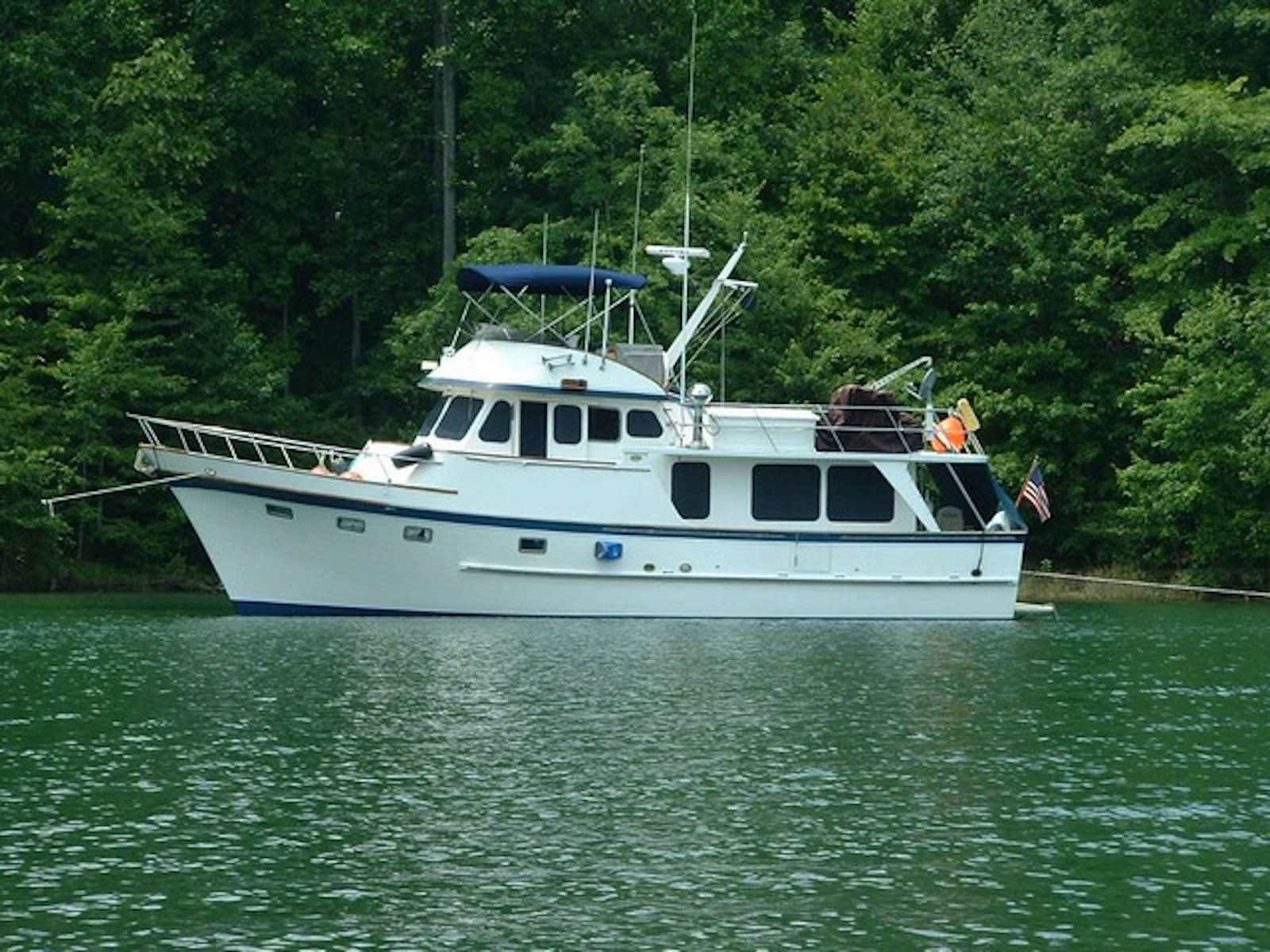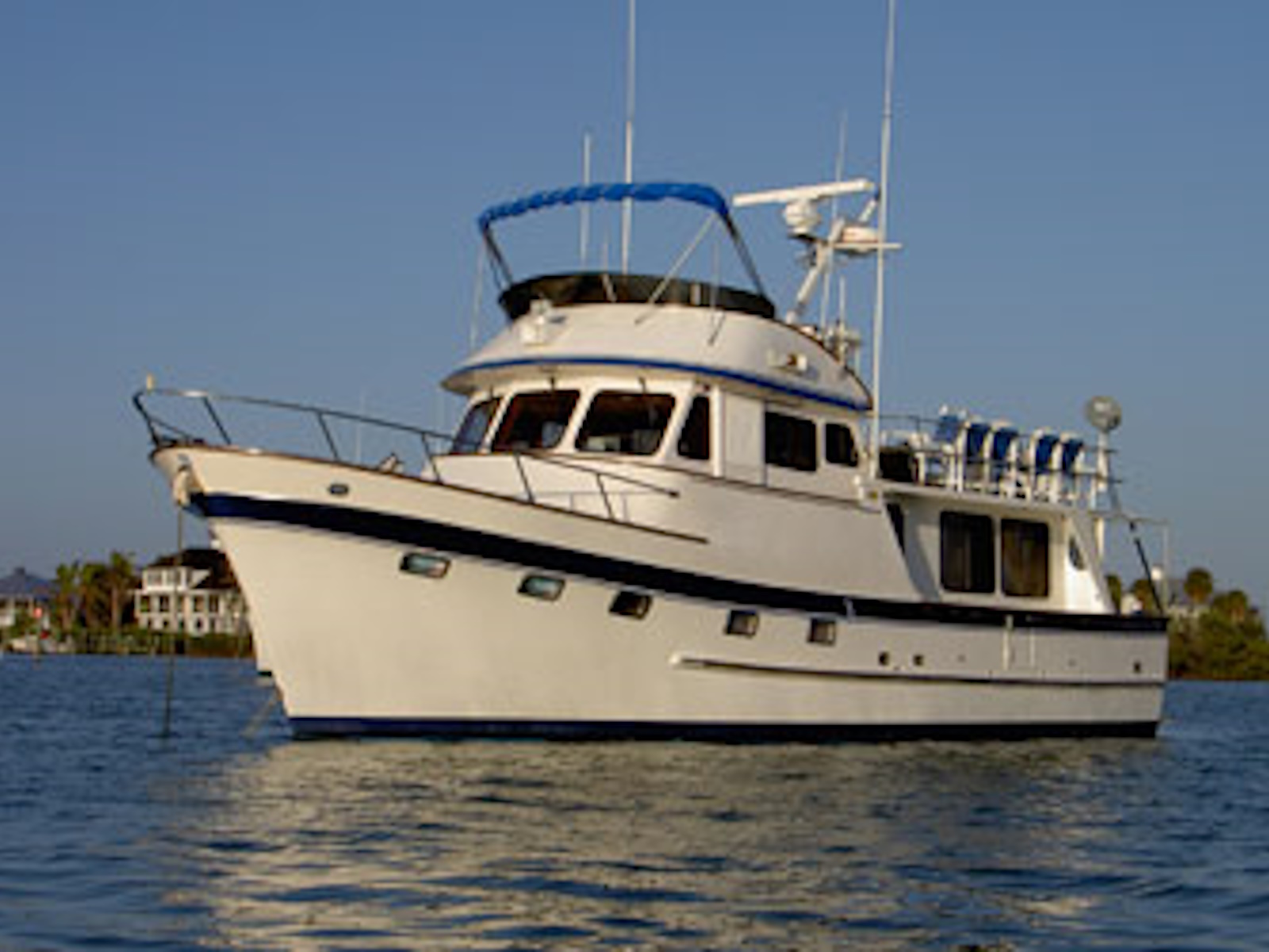 One of the great cruising boats patterned after the “Alaskan” that Art DeFever designed in wood for American Marine (Grand Banks.) The Alaskan touched off the popular design style known as a “raised pilothouse” cruiser that has been copied by everyone else over the years. This is another great cruiser for a couple and occasional guests in the second stateroom. The pilothouse is perfect for long passages and cold or rainy weather. She has a range of over 1000 miles. Her long boat deck will easily accommodate a 12-foot tender. The original design was built in the Sen Koh yard in Taiwan from 1977 thru 1990. A later version, built in the POCTA yard, placed the bridge behind the raised pilothouse to yield a lower profile. Read an excellent article in Passagemaker Magazine about the original 49 RPH here. https://www.passagemaker.com/cruiser-reviews/cult-classic-the-enduring-and-ever-popular-defever-49-2