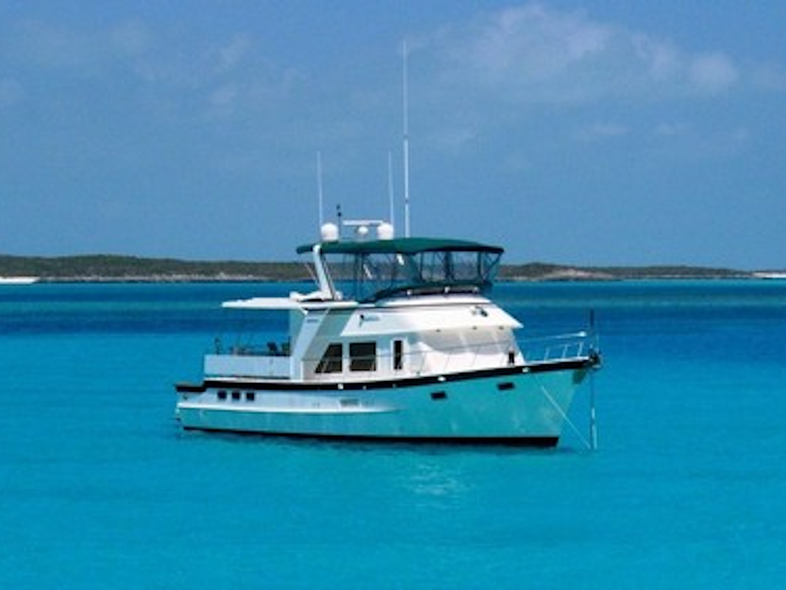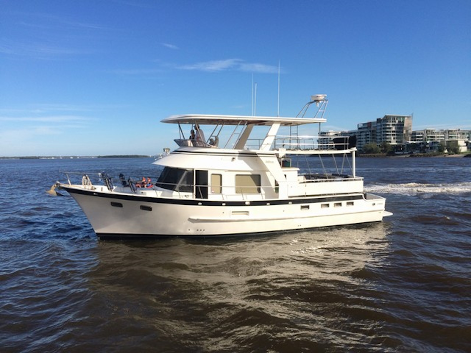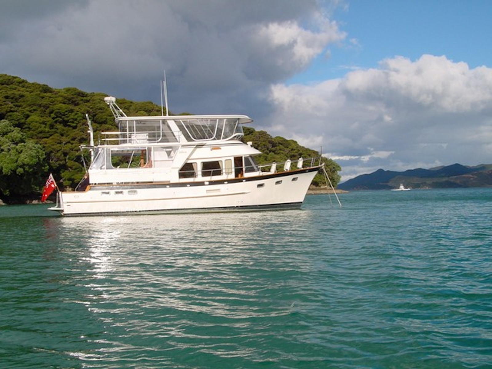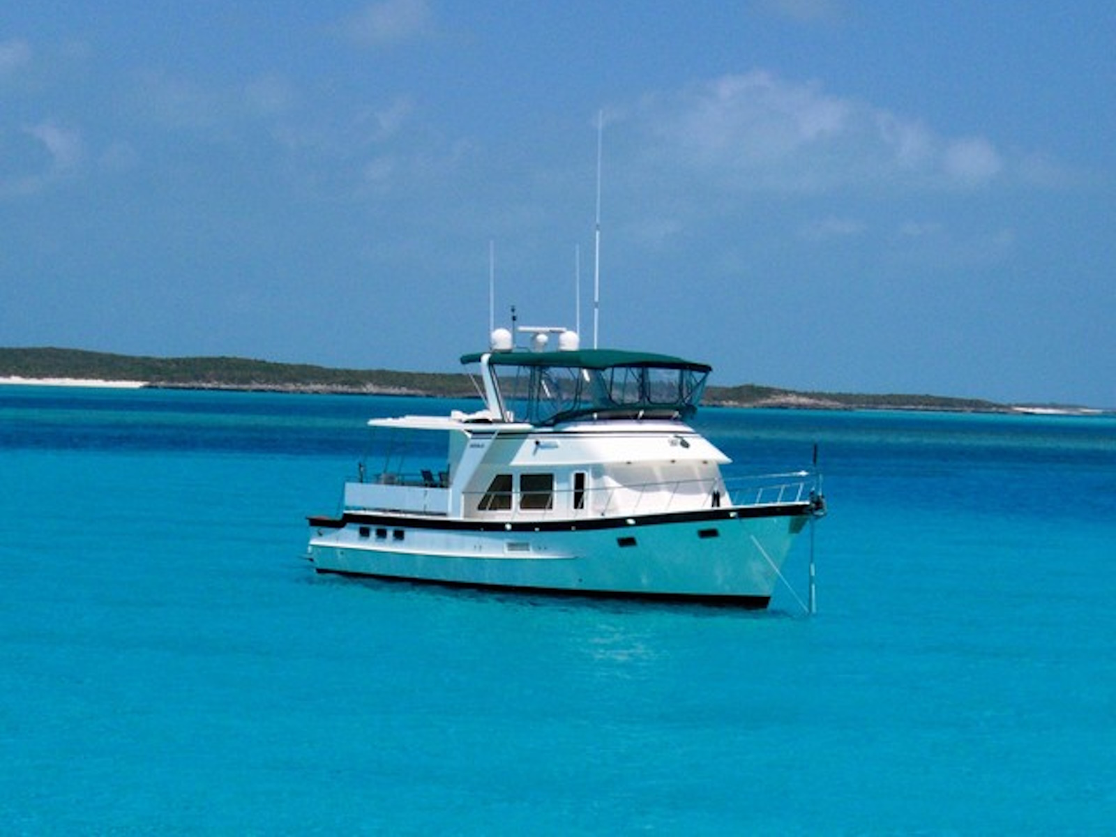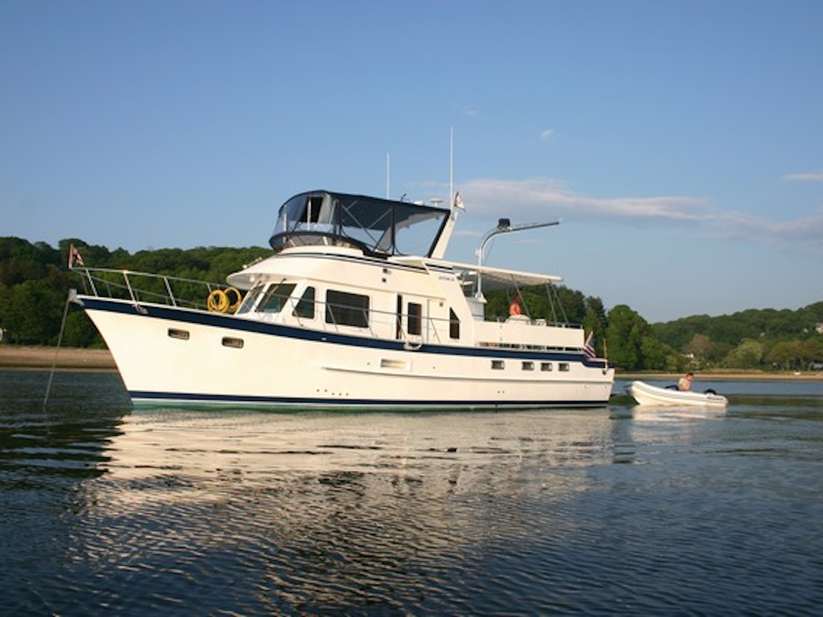 The 49 CMY is sometimes referred to as a 44 + 5 because she is the same as a 44 but with a 5-foot cockpit. The 49 carries more fuel, usually 1,100 gallons and is a little faster than the 44, due to her longer waterline length. Very popular now. An excellent cruiser for a couple with occasional guests. This is an excellent boat for the tropics because of the large shaded area under the usual Bimini top. Most people enclose the bridge with full canvas and run the boat from the bridge. Some models have a steering station in the saloon that is rarely used because of the comfort and visibility from the bridge. Not in production in 2019.