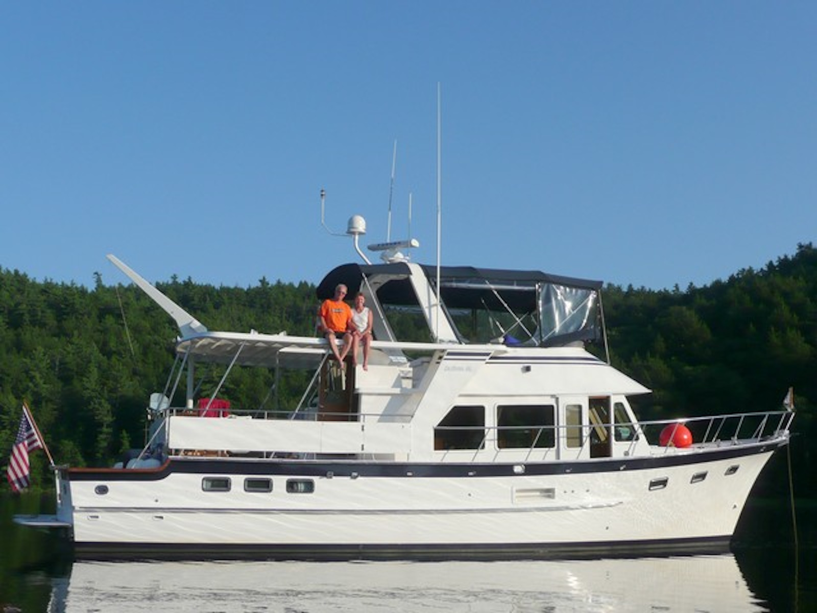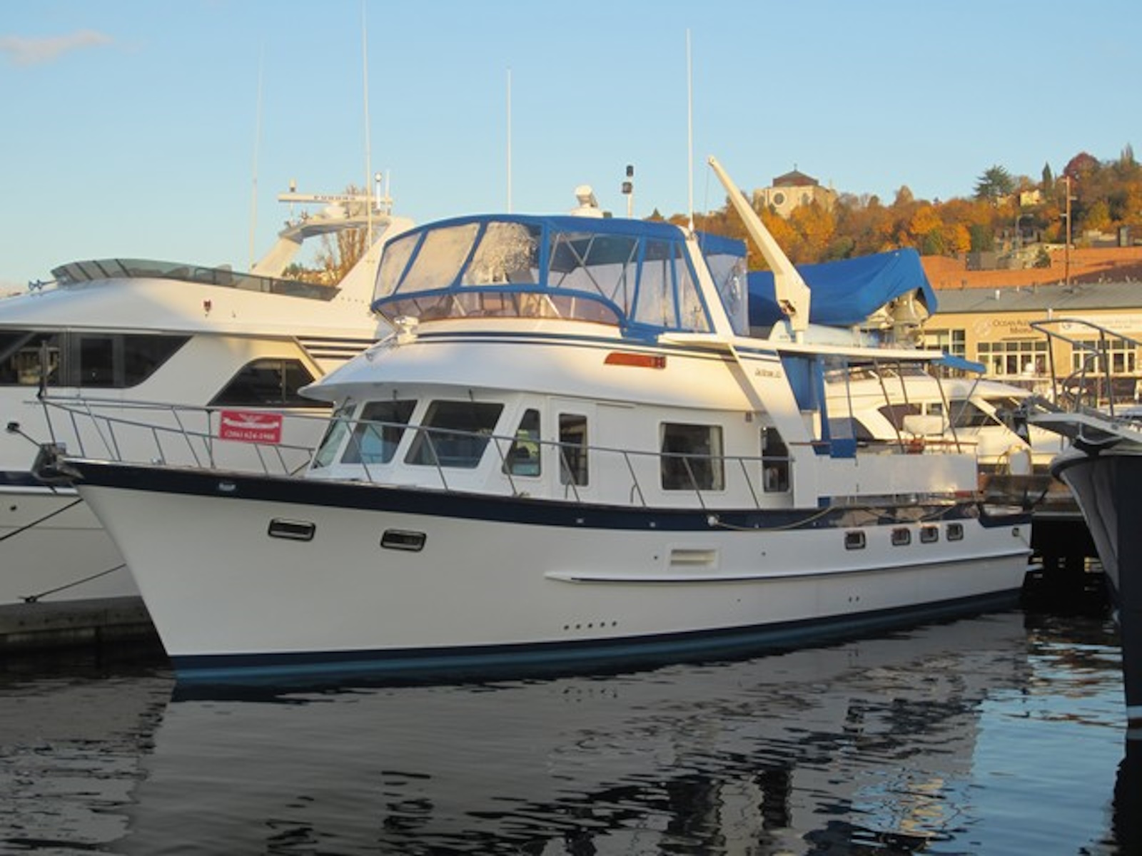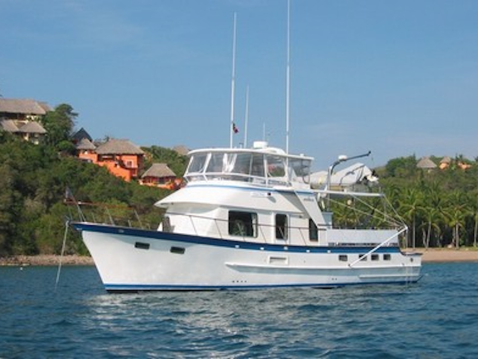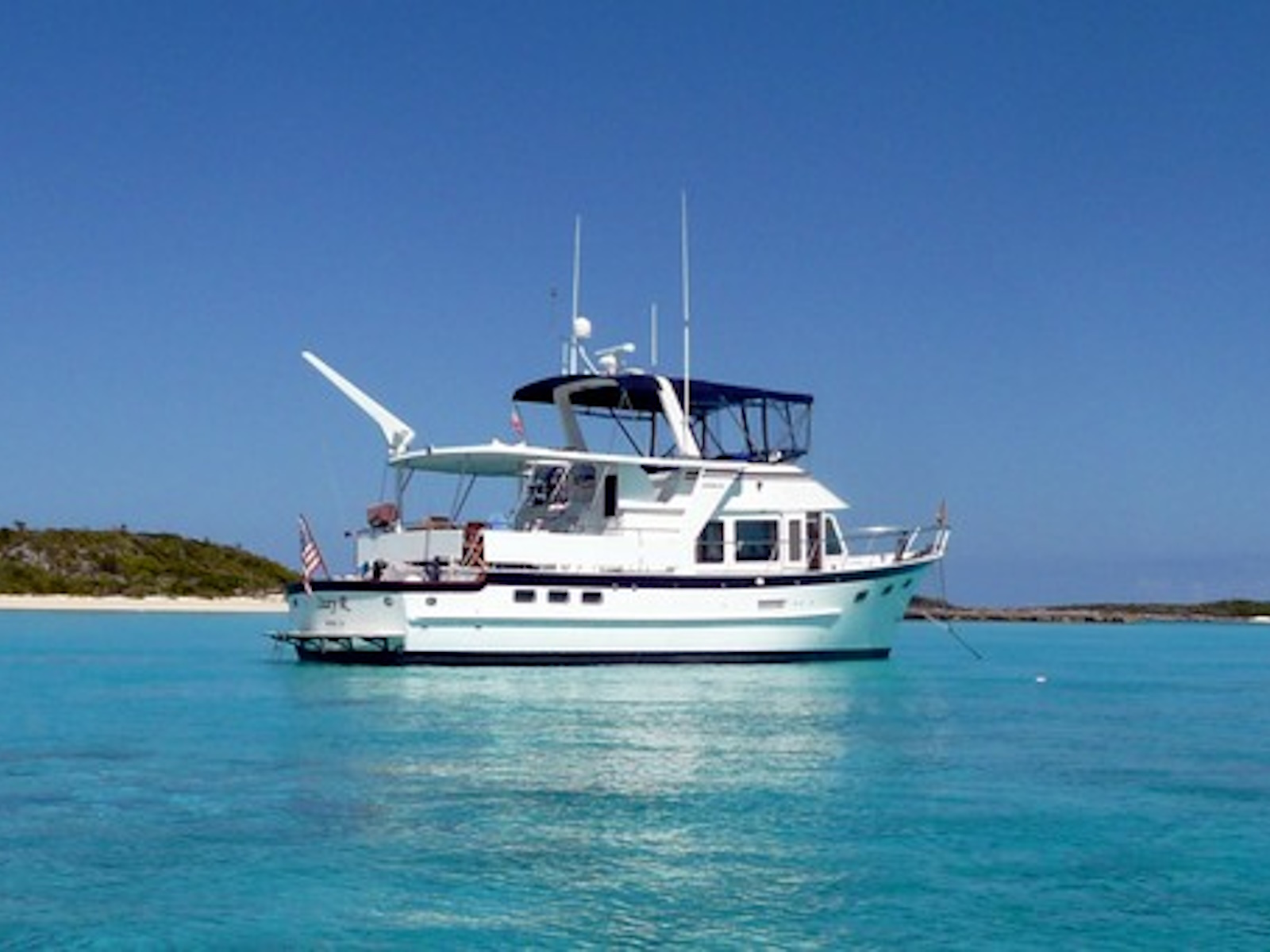 The 49 CMY is sometimes referred to as a 44 + 5 because she is the same as a 44 but with a 5-foot cockpit. The 49 carries more fuel, usually 1,100 gallons and is a little faster than the 44, due to her longer waterline length. Very popular now. An excellent cruiser for a couple with occasional guests. This is an excellent boat for the tropics because of the large shaded area under the usual Bimini top. Most people enclose the bridge with full canvas and run the boat from the bridge. Some models have a steering station in the saloon that is rarely used because of the comfort and visibility from the bridge. Not in production in 2019.