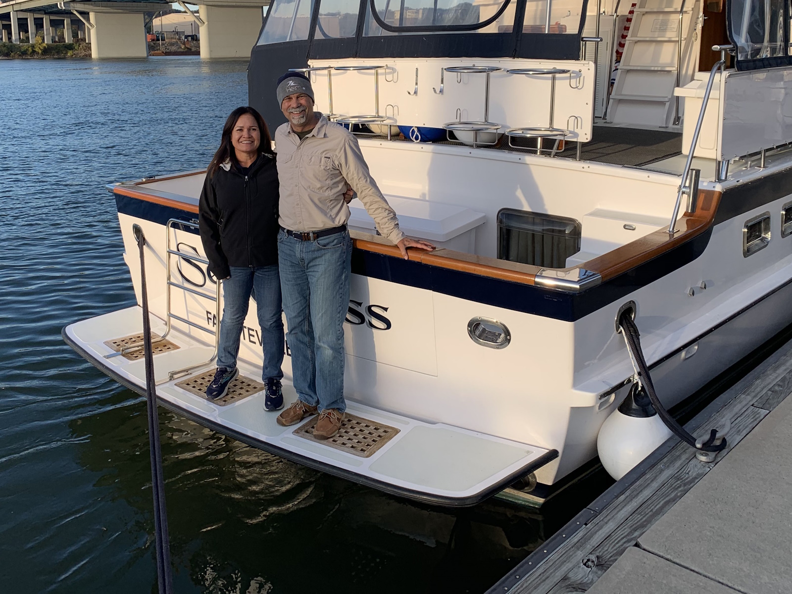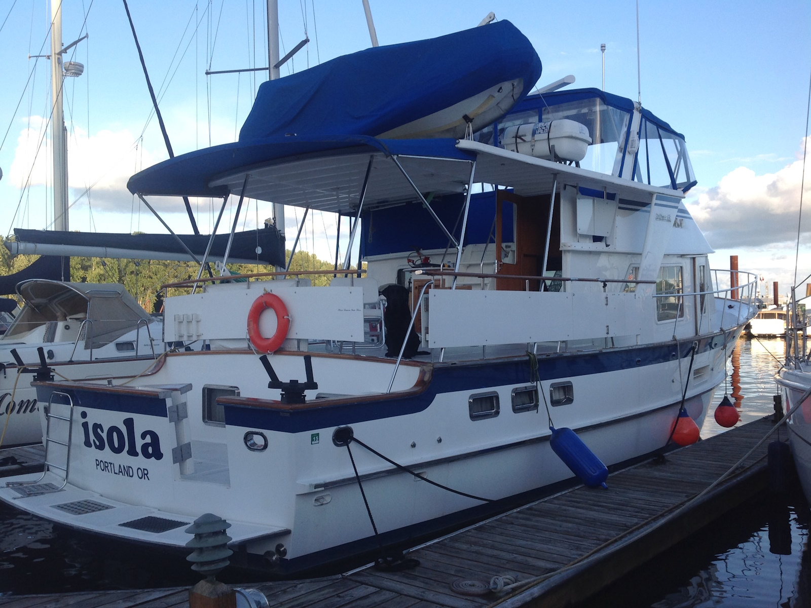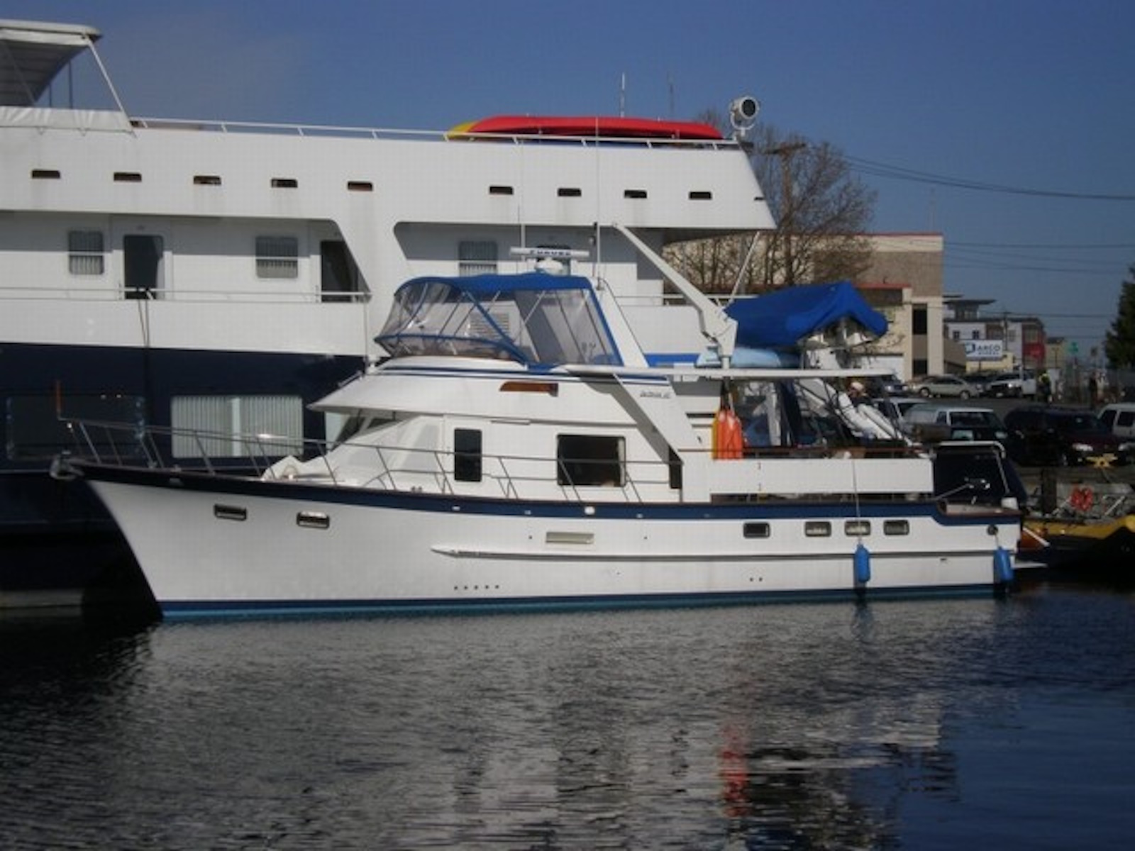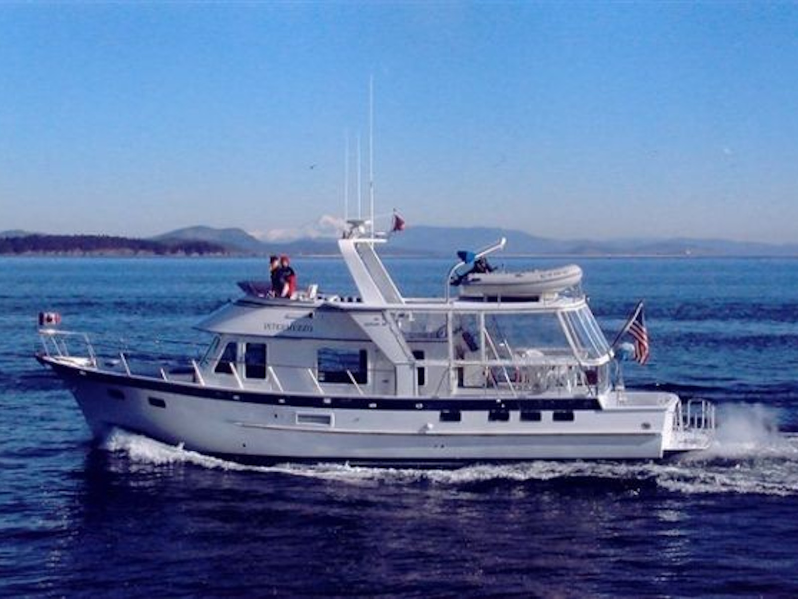 The 49 CMY is sometimes referred to as a 44 + 5 because she is the same as a 44 but with a 5-foot cockpit. The 49 carries more fuel, usually 1,100 gallons and is a little faster than the 44, due to her longer waterline length. Very popular now. An excellent cruiser for a couple with occasional guests. This is an excellent boat for the tropics because of the large shaded area under the usual Bimini top. Most people enclose the bridge with full canvas and run the boat from the bridge. Some models have a steering station in the saloon that is rarely used because of the comfort and visibility from the bridge. Not in production in 2019.