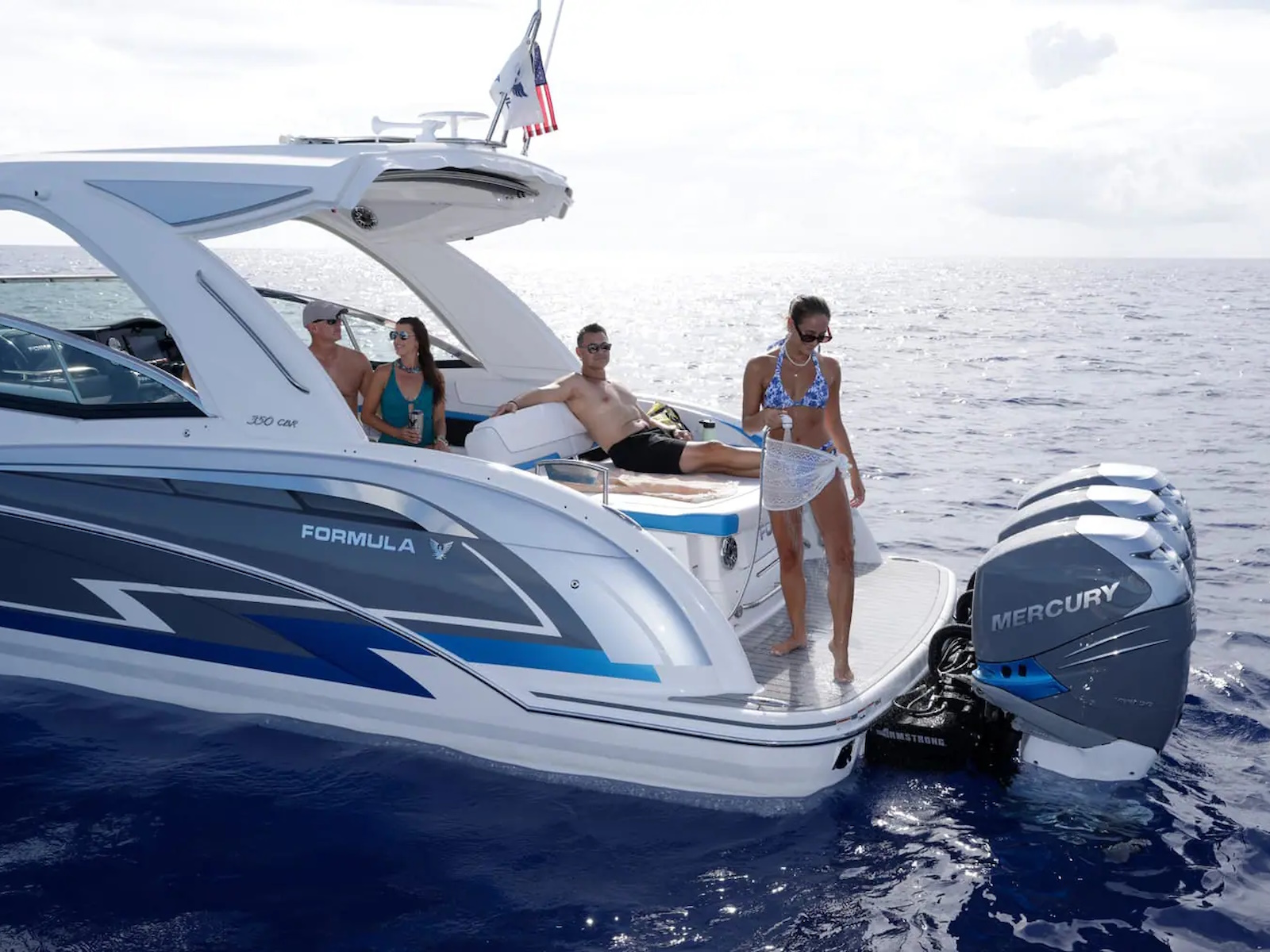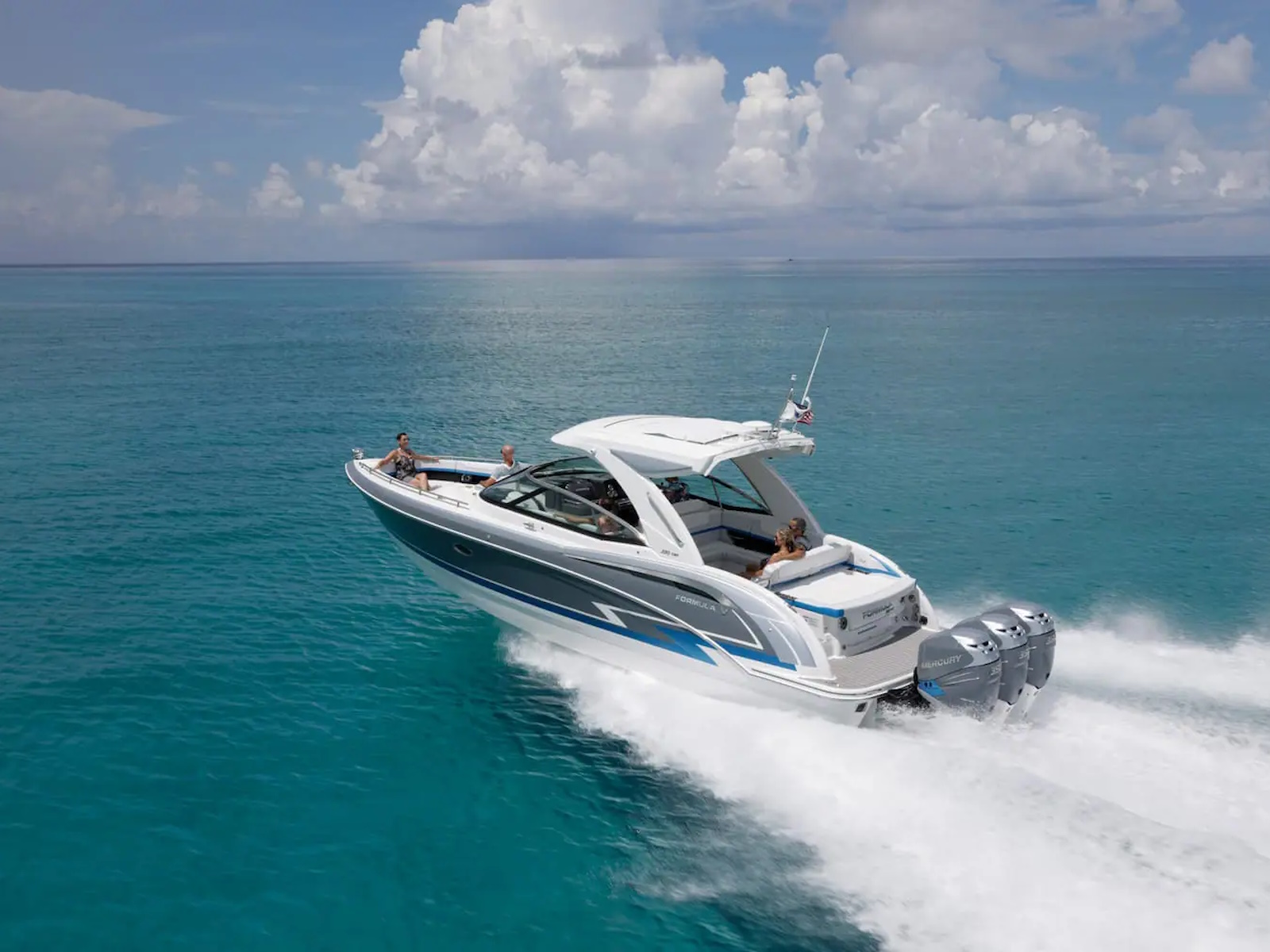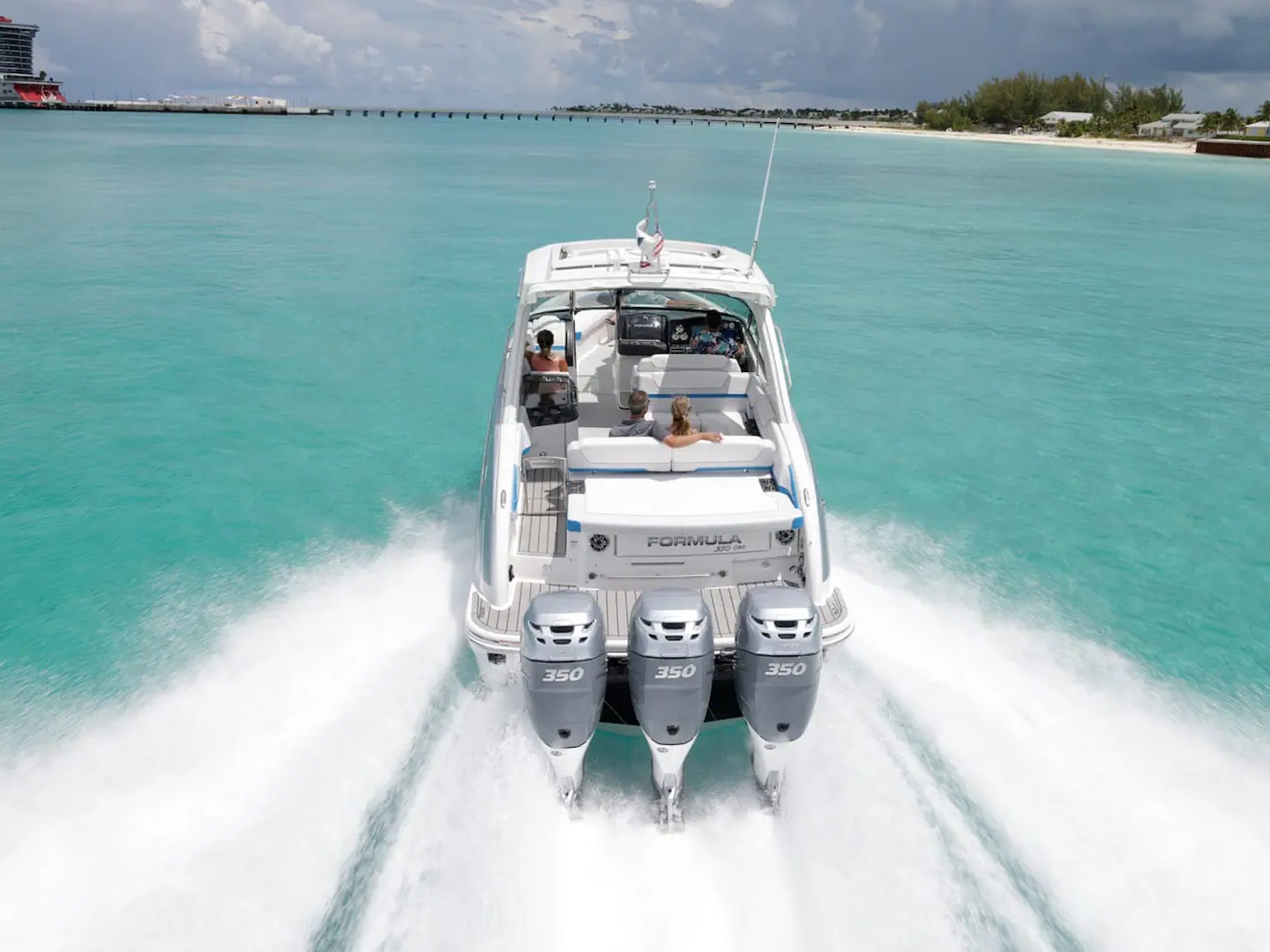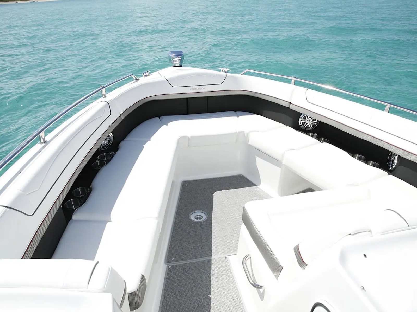 From stem to stern, everything about the Formula Crossover Bowrider series is designed to meet the needs of those looking for a large, luxurious bowrider with comfortable overnight capabilities. This is where excellence meets sophistication, and superiority meets authenticity. The Formula 350 Crossover Bowrider is the pinnacle of this innovative combination, and is every bit the upscale sport boat in combination with Formula prestige and your personal touch. The 350 Crossover Bowrider is now available in twin sterndrive and triple outboard power.