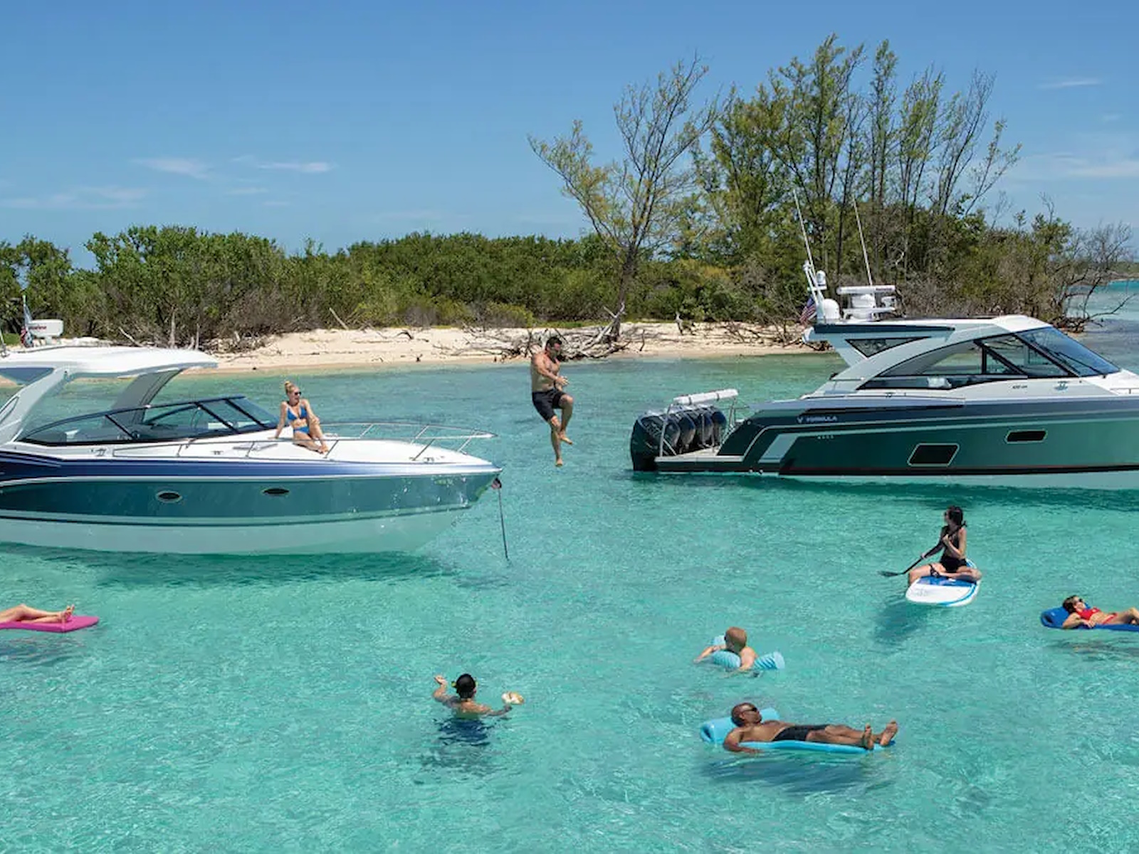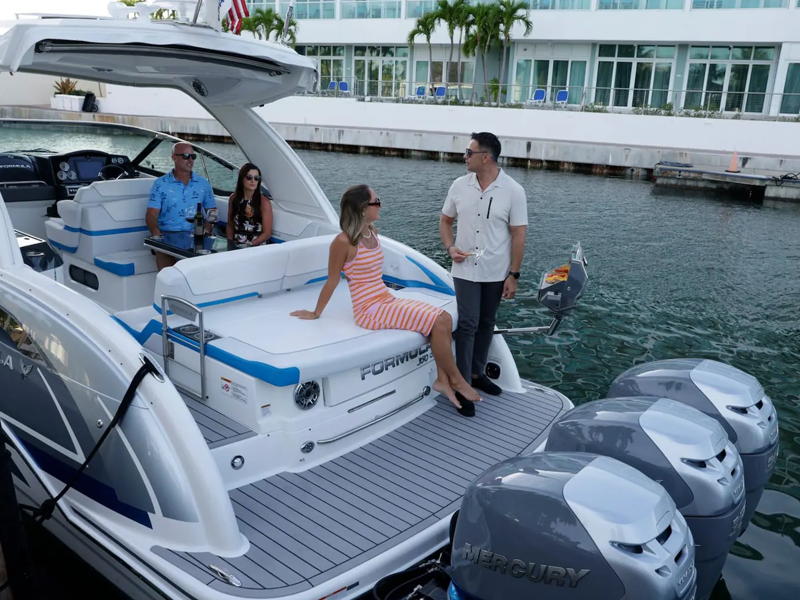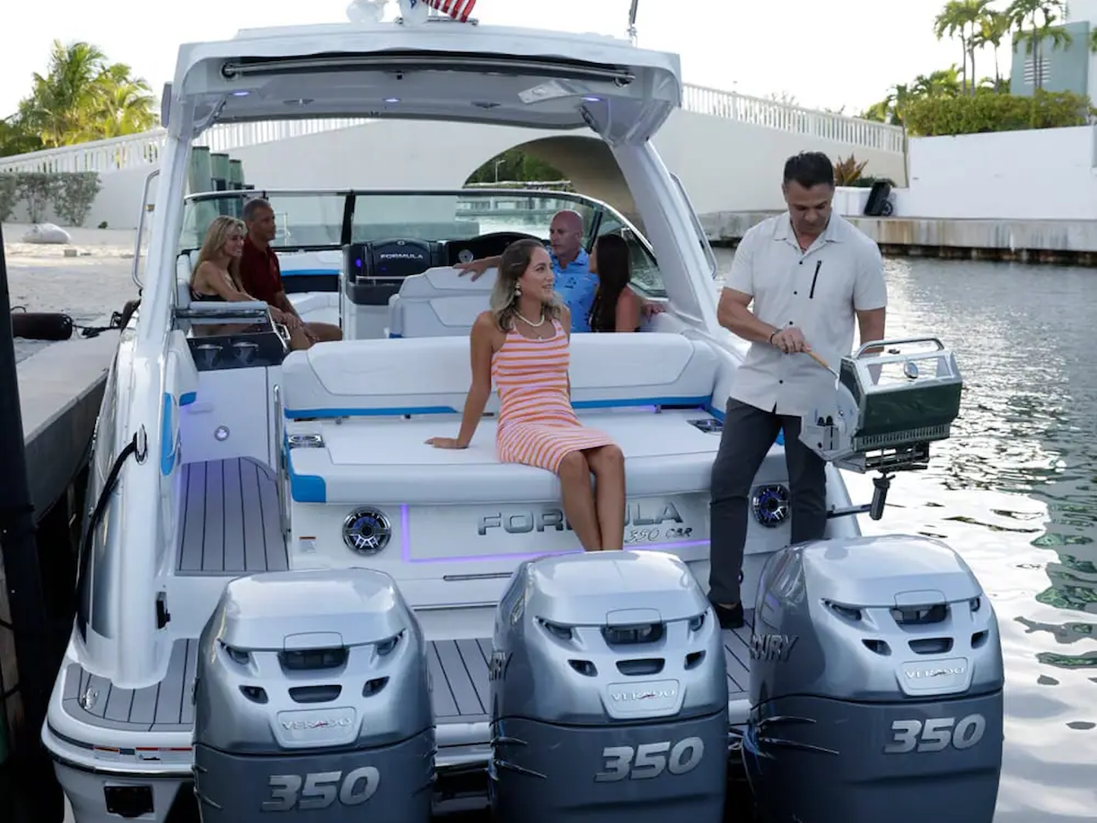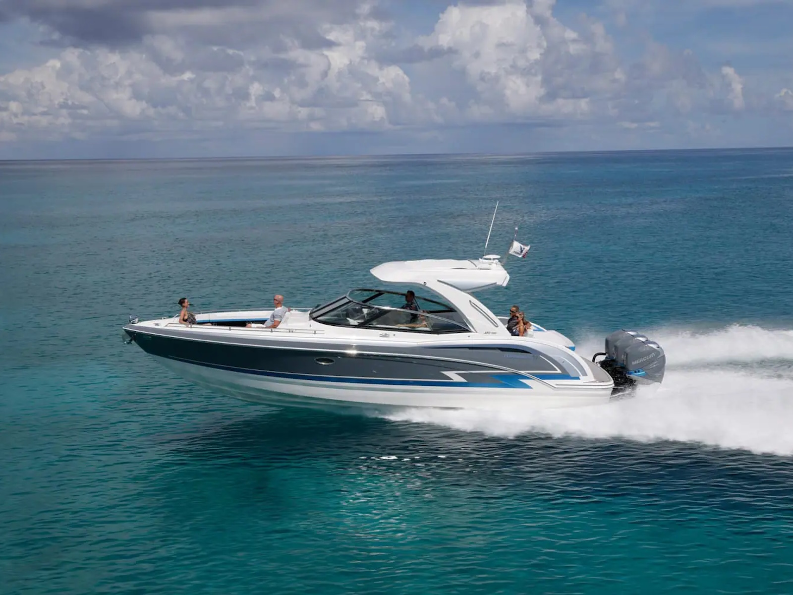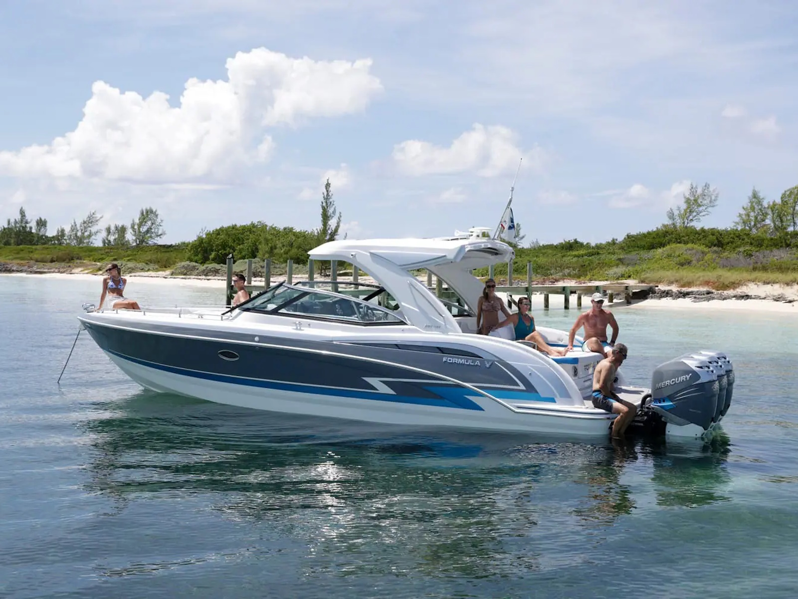 From stem to stern, everything about the Formula Crossover Bowrider series is designed to meet the needs of those looking for a large, luxurious bowrider with comfortable overnight capabilities. This is where excellence meets sophistication, and superiority meets authenticity. The Formula 350 Crossover Bowrider is the pinnacle of this innovative combination, and is every bit the upscale sport boat in combination with Formula prestige and your personal touch. The 350 Crossover Bowrider is now available in twin sterndrive and triple outboard power.
