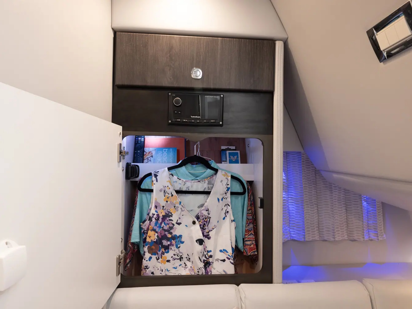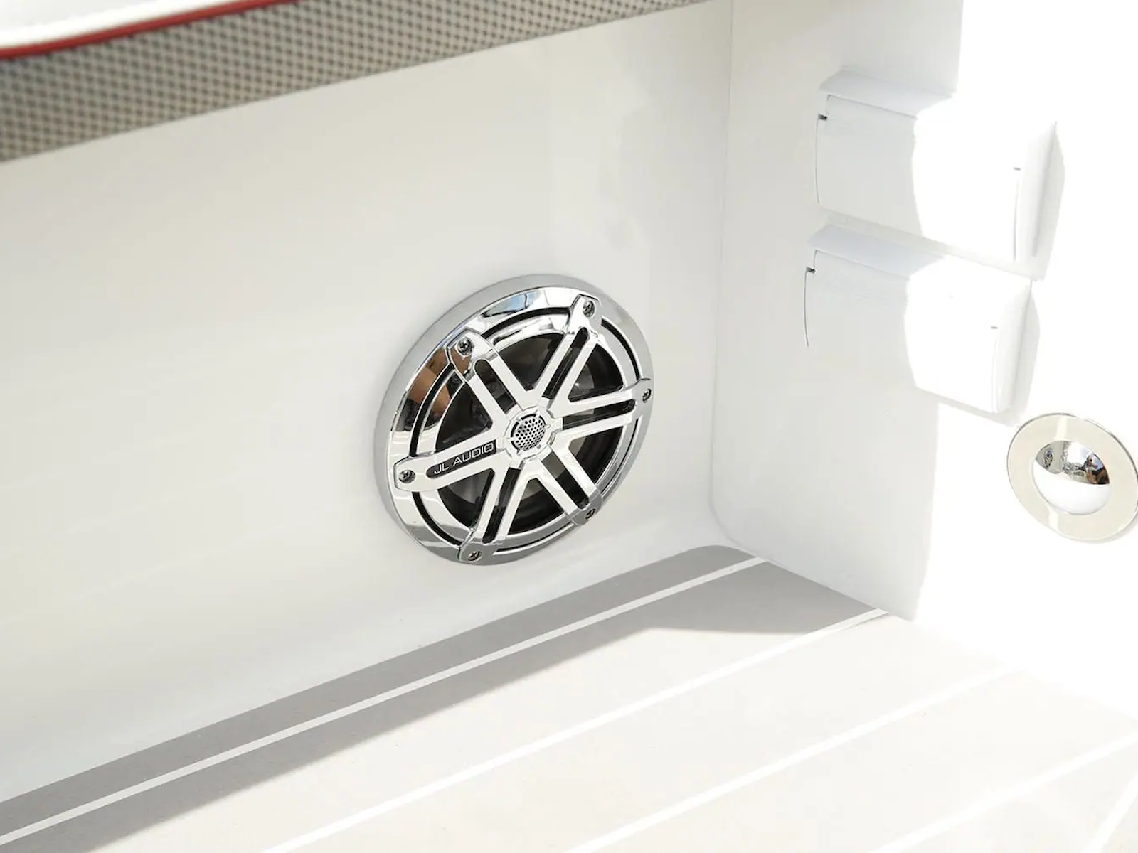 - STEREO SYSTEM: No matter where you are onboard your 350 Crossover Bowrider, you’ll have no trouble enjoying the crisp, clear audio coming from the dash-mounted stereo system and integrated marine-grade speakers found throughout the cockpit and cabin. You can even control the radio with a remote from the comfort of your seat.