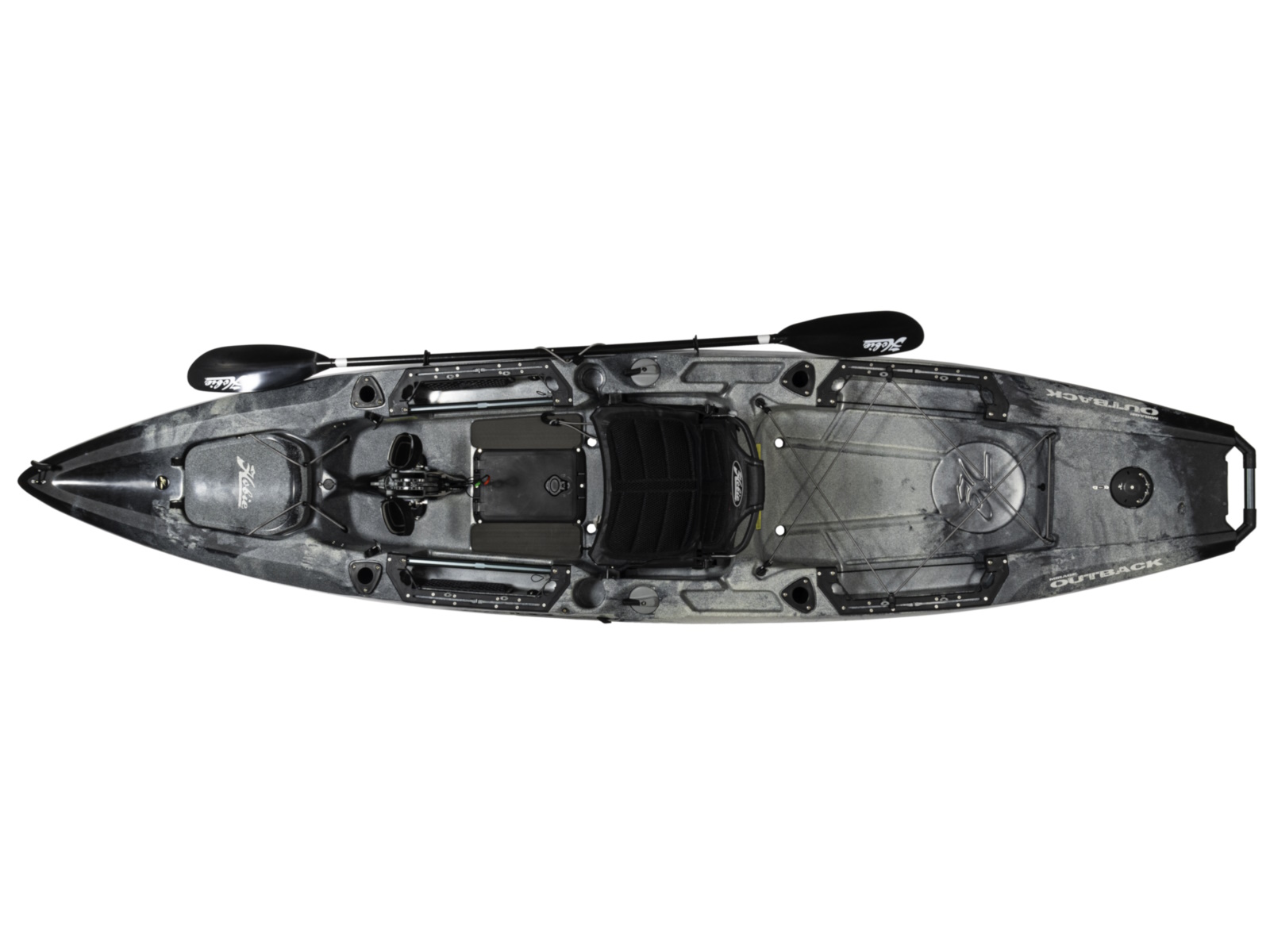 Hobie has advanced the sport of kayak fishing with Kick-Up Fins that automatically retract upon impact. The extra-wide standing deck offers an improved casting platform and convenient vantage point for sight fishing, allowing for superior vision from above while the revolutionary Guardian Transducer Shield gives you multidimensional vision below. The adjustable Vantage CTW seat provides 1.5" of extra width and lumbar support for unmatched room and comfort for long days on the water. The Hobie H-Rail with integrated patented RAM® Hand-Track™ and numerous high-capacity storage compartments deliver the ultimate customization and organization in accessory mounting, ensuring that all of your gear is at your fingertips. Powered by the MirageDrive 180 with Kick-Up Turbo Fins, this fine-tuned angling vessel is highly versatile, fast, quiet, and exceedingly nimble.